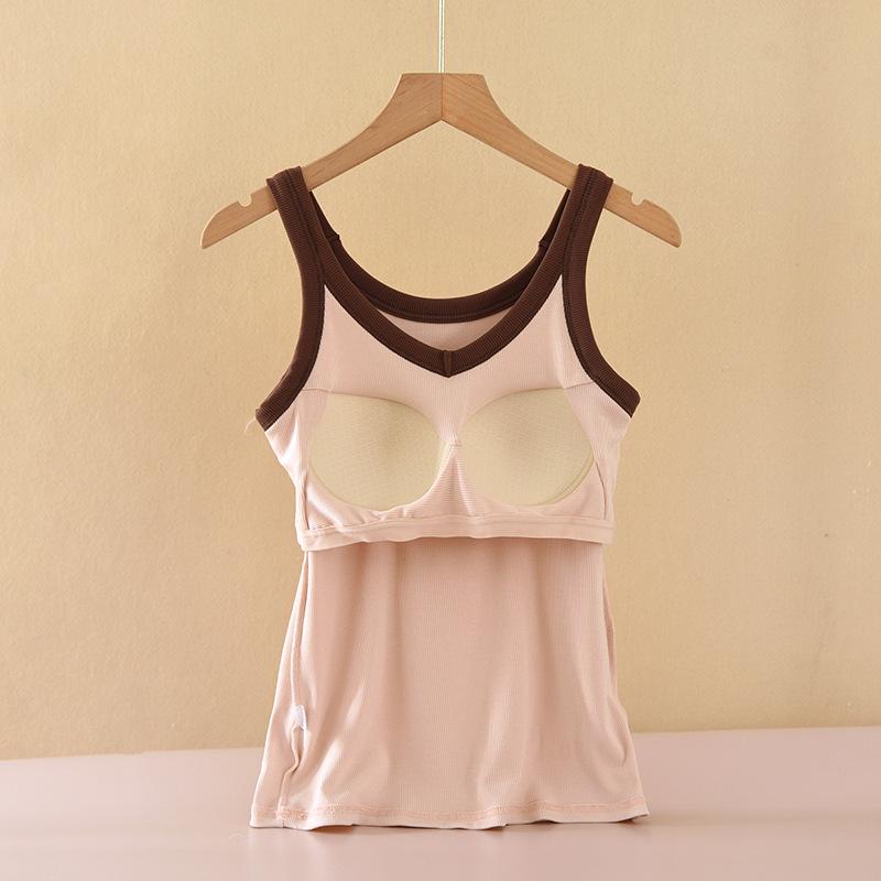 Camisola con almohadilla para el pecho para mujer, de verano, de hilo fino, sexy, informal, para adelgazar la espalda, ropa exterior, parte superior