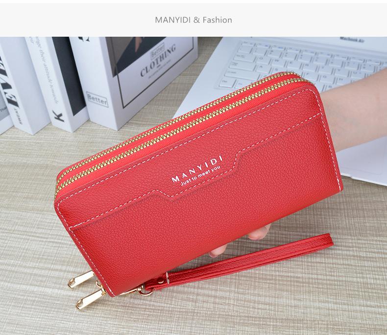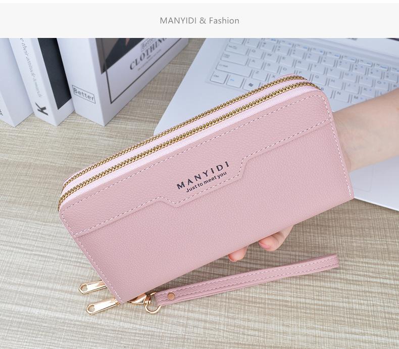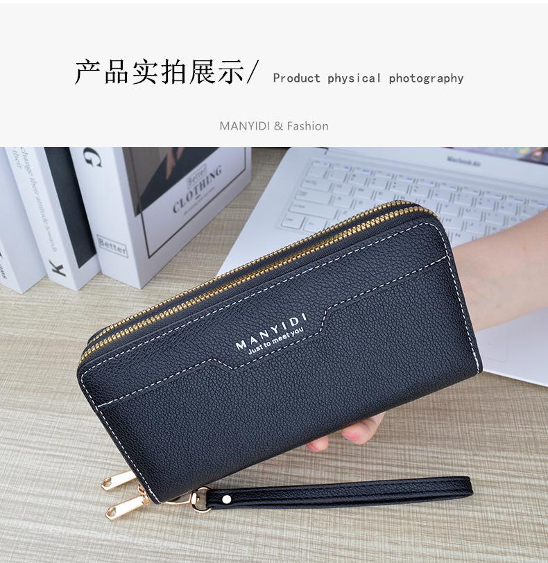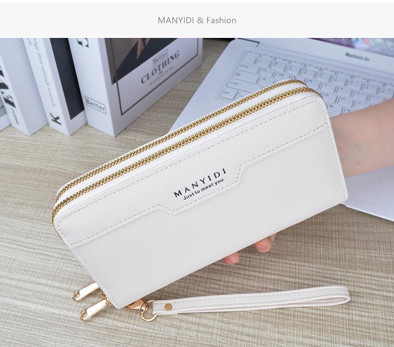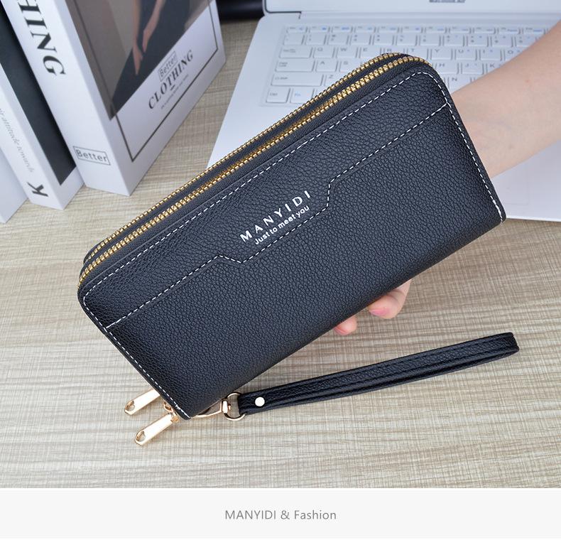 Nueva cartera larga con doble cremallera para mujer, cartera de moda para mujer, gran capacidad, doble capa, suave, bolso para teléfono móvil