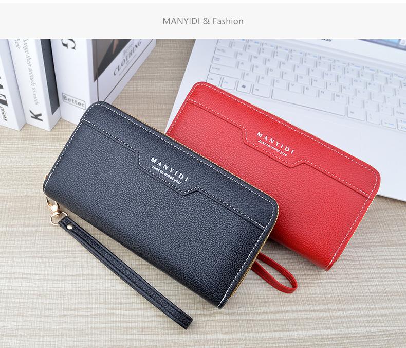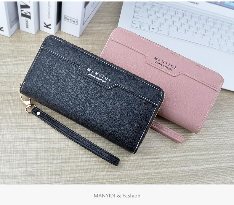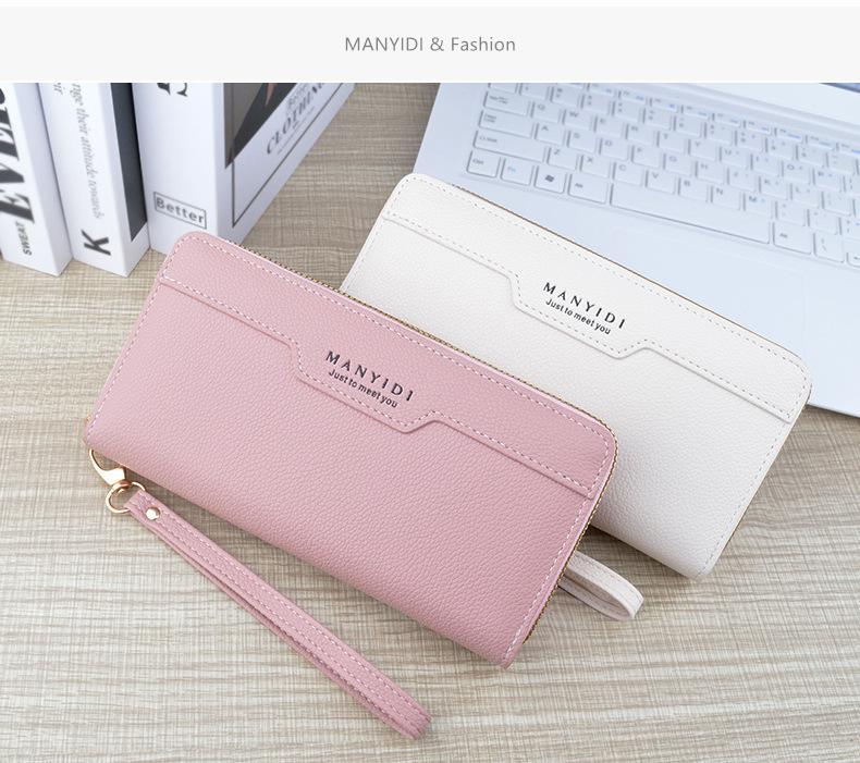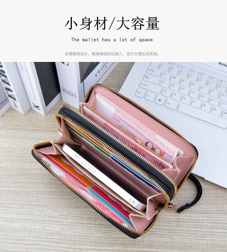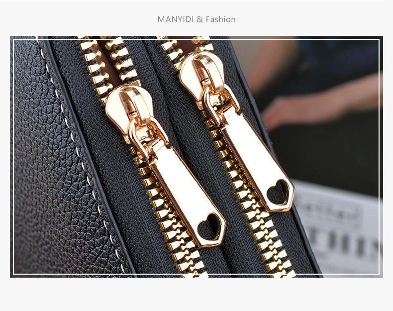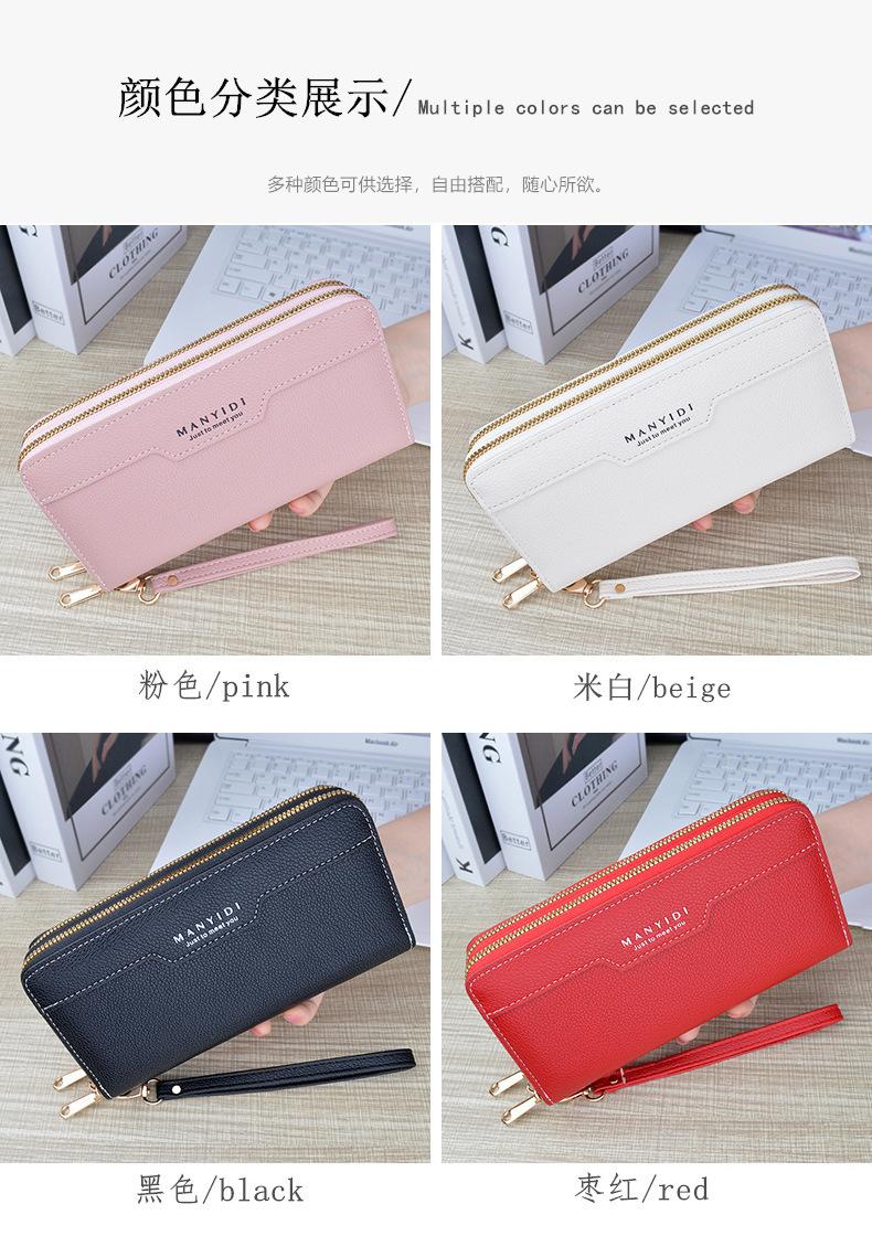 Nueva cartera larga con doble cremallera para mujer, cartera de moda para mujer, gran capacidad, doble capa, suave, bolso para teléfono móvil