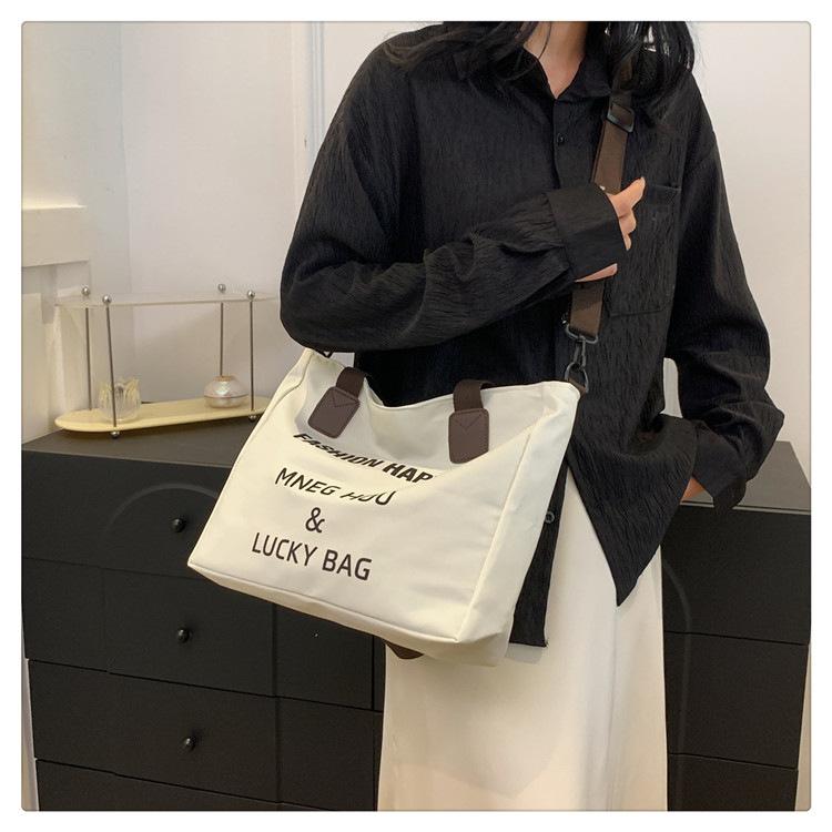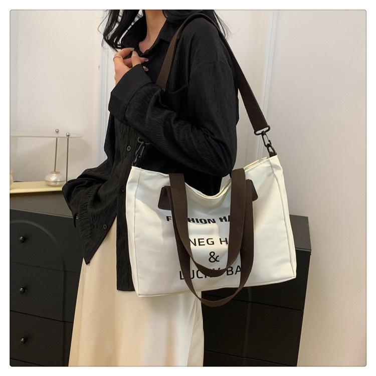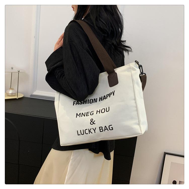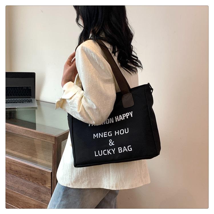 Bolso Tote Simple Estilo Coreano 2025 Nuevo Estilo Estilo Extranjero Gran Capacidad Un Solo Hombro Bandolera Bolso de Lona para Clase de Estudiante