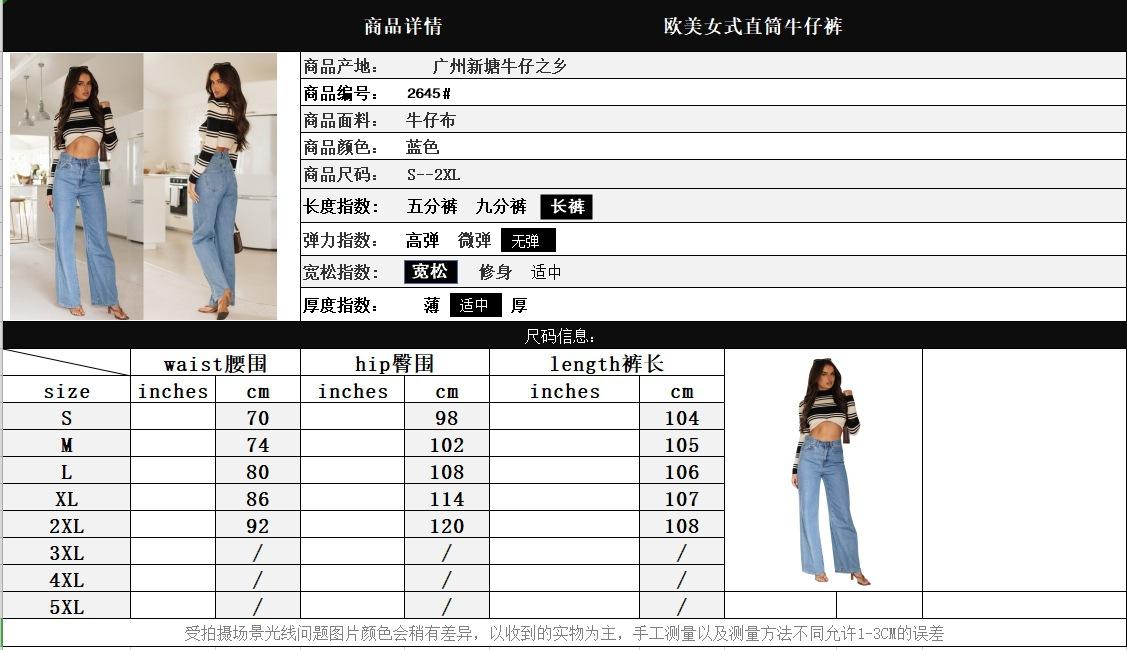 Pantalones vaqueros rectos básicos para mujer europeos y americanos de moda lavada transfronteriza de Amazon 2023