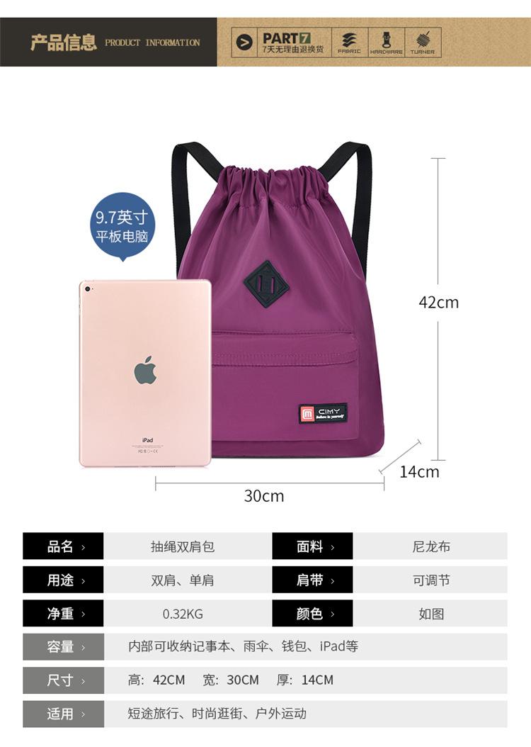 Mochila portátil impermeable con bolsillo y cordón, de gran capacidad, informal, para viajes al aire libre, tienda transfronteriza de una sola pieza