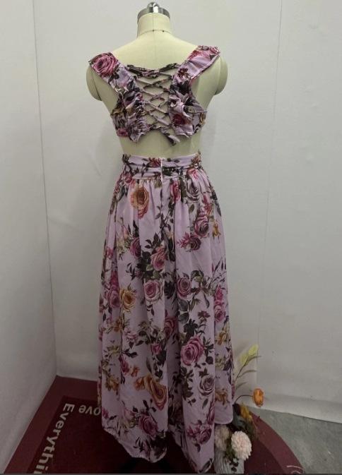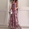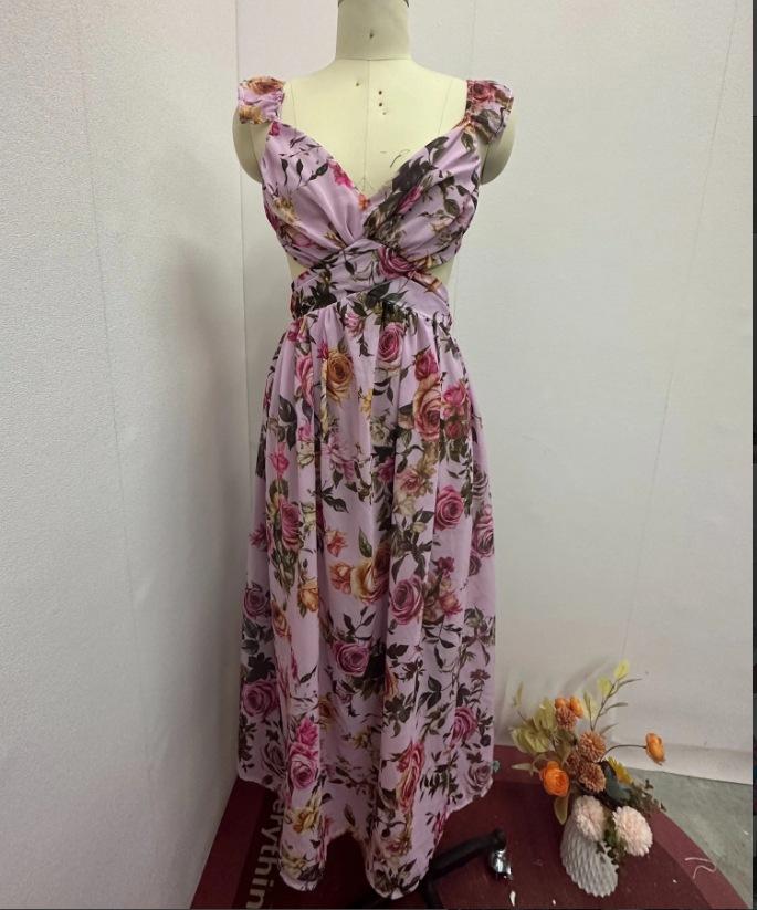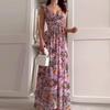 Vestido de verano 2024 con cuello en V, cintura alta y tirantes finos, estampado transfronterizo de Amazon, moda transfronteriza europea y americana