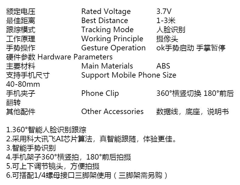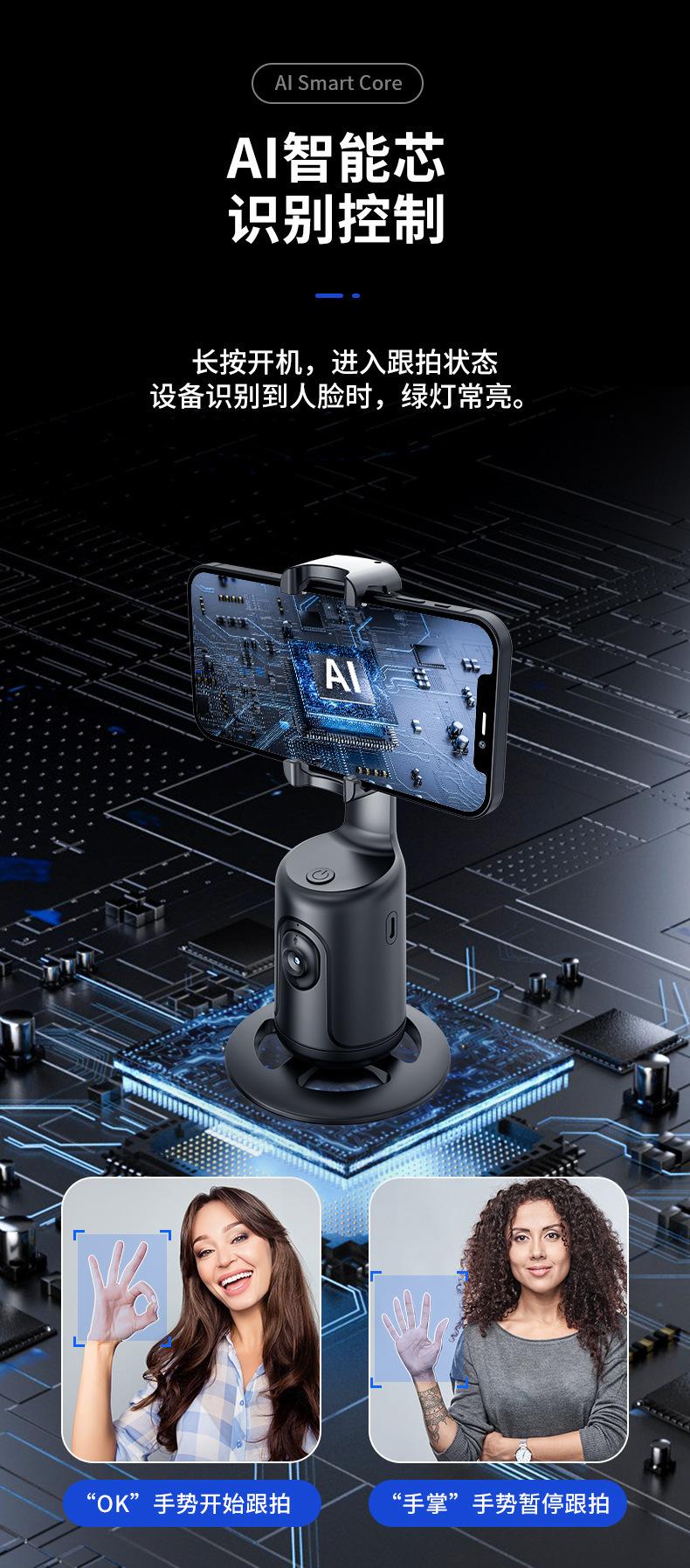 Soporte Automático Inteligente para Teléfono Móvil con Seguimiento Facial Panorámico/Inclinable para Grabación de Video en Vivo, Estabilizador de Seguimiento Giratorio de 360 Grados