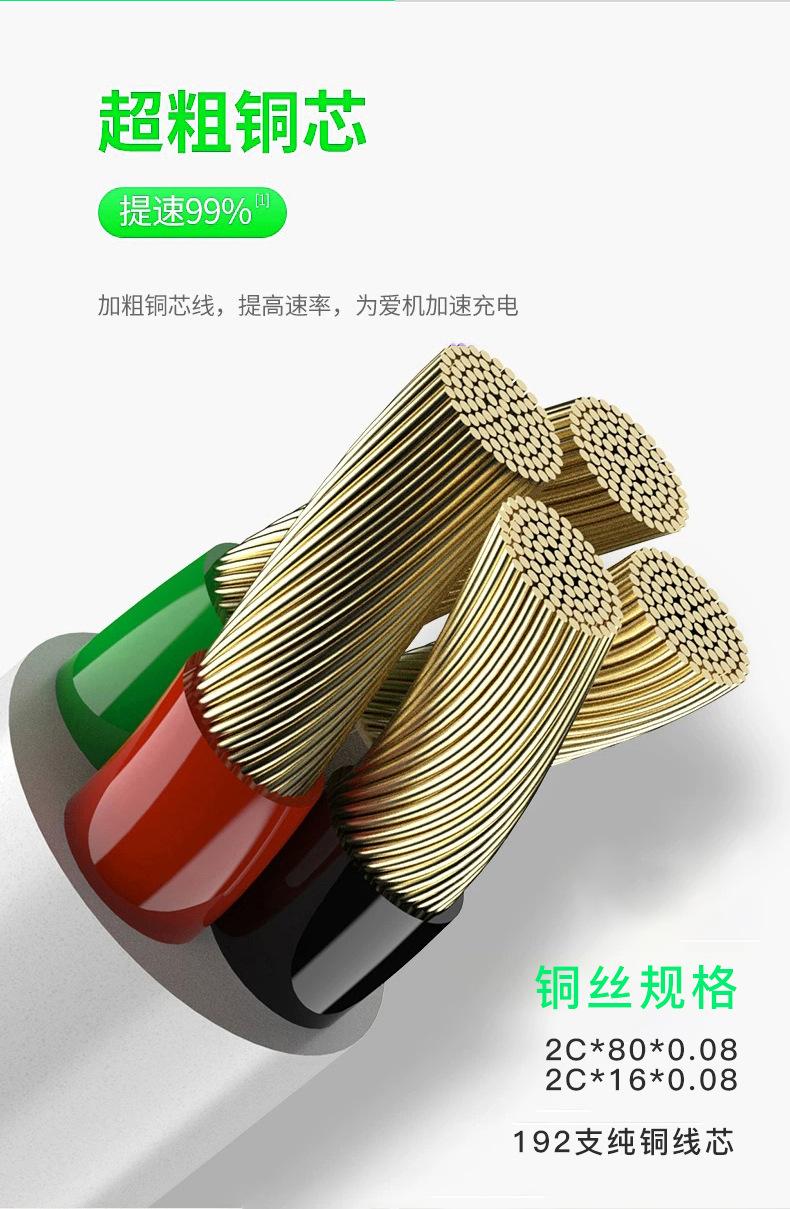 Especificaciones: Usando 80*0.08*2C+16*0.08+2C 196 cobre estañado, 2 metros de cable de cobre 256 engrosado, resueltamente no use cobre reciclado, acero revestido de cobre de 0.06 mm y otros cables basura en el mercado, ¡realmente logre una compatibilidad total con una carga súper rápida!