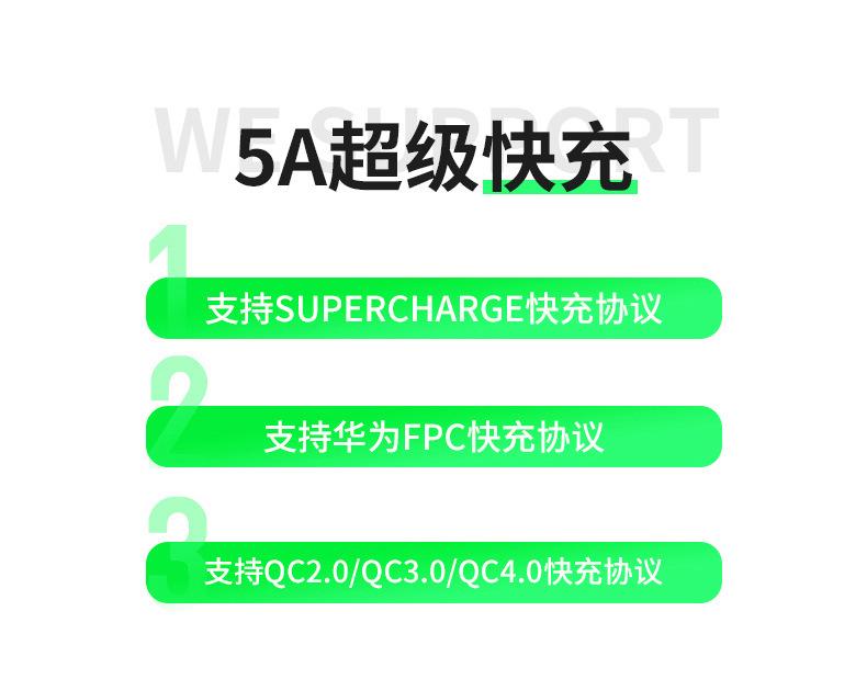 Protocolo de carga rápida: admite la carga súper rápida de Huawei, admite la carga flash VOOC de doble motor OPPO VIVO, admite la carga rápida de Xiaomi, admite la carga rápida 1+ y otros protocolos de carga rápida;