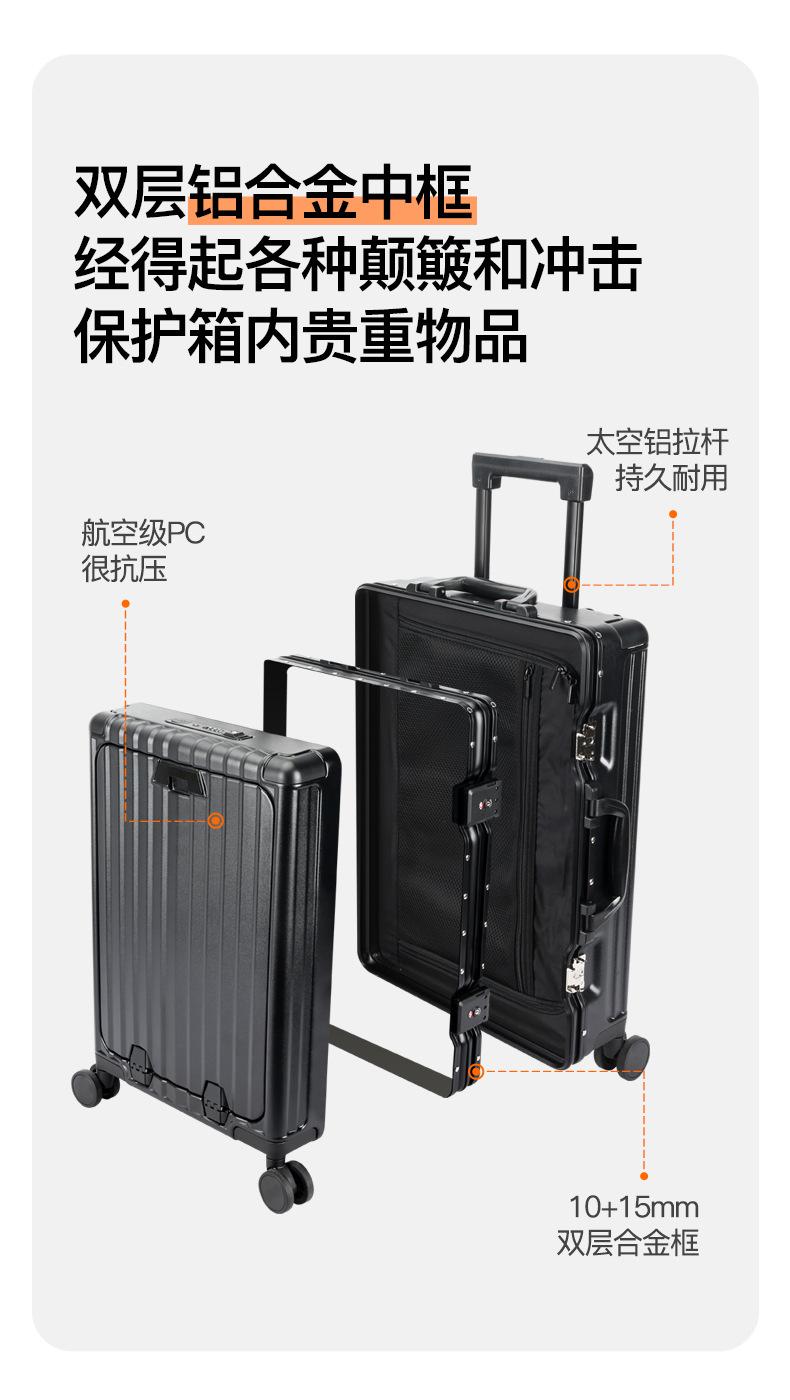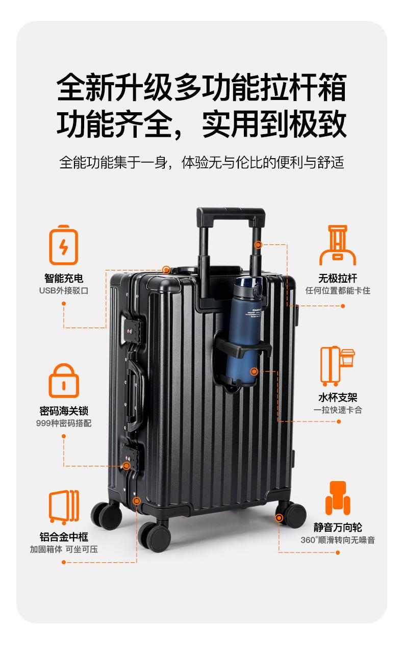 Maleta Multifuncional para PC Marco de Aluminio Maleta Rueda Universal USB Maleta Trolley Abordaje Aduanas Cerradura de Contraseña Caja con Contraseña Blog