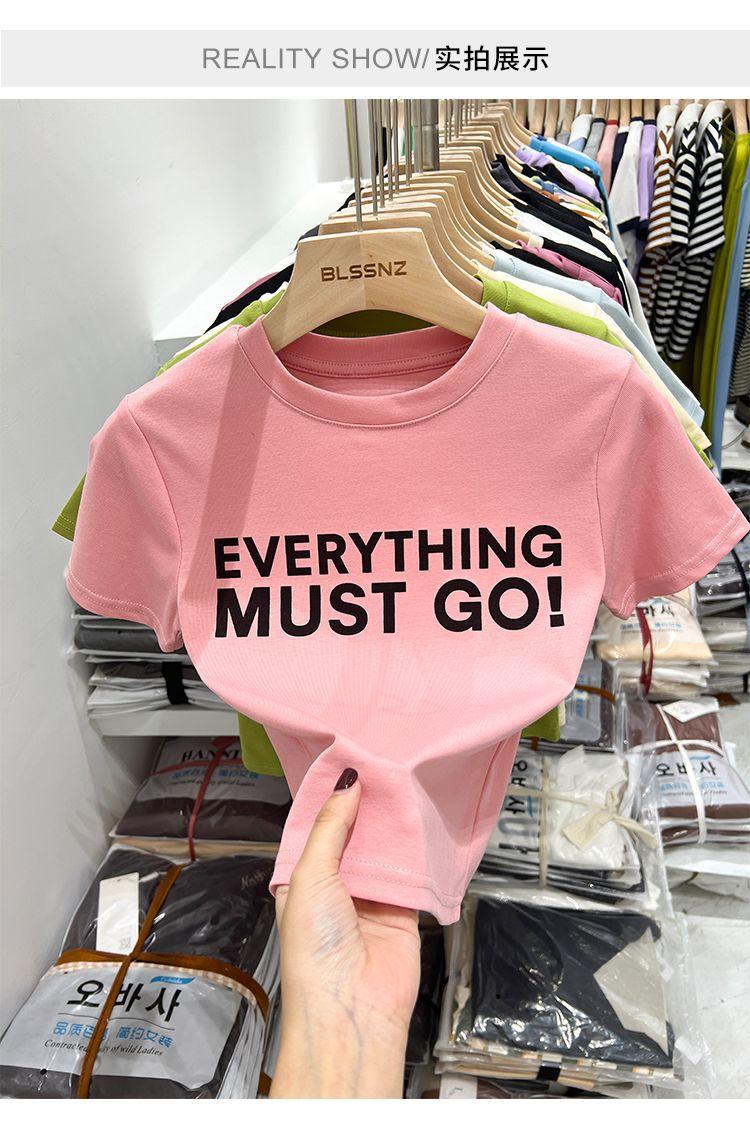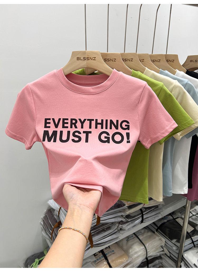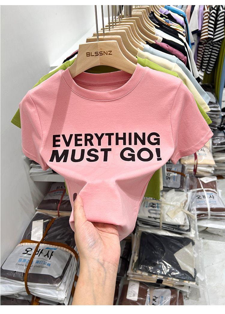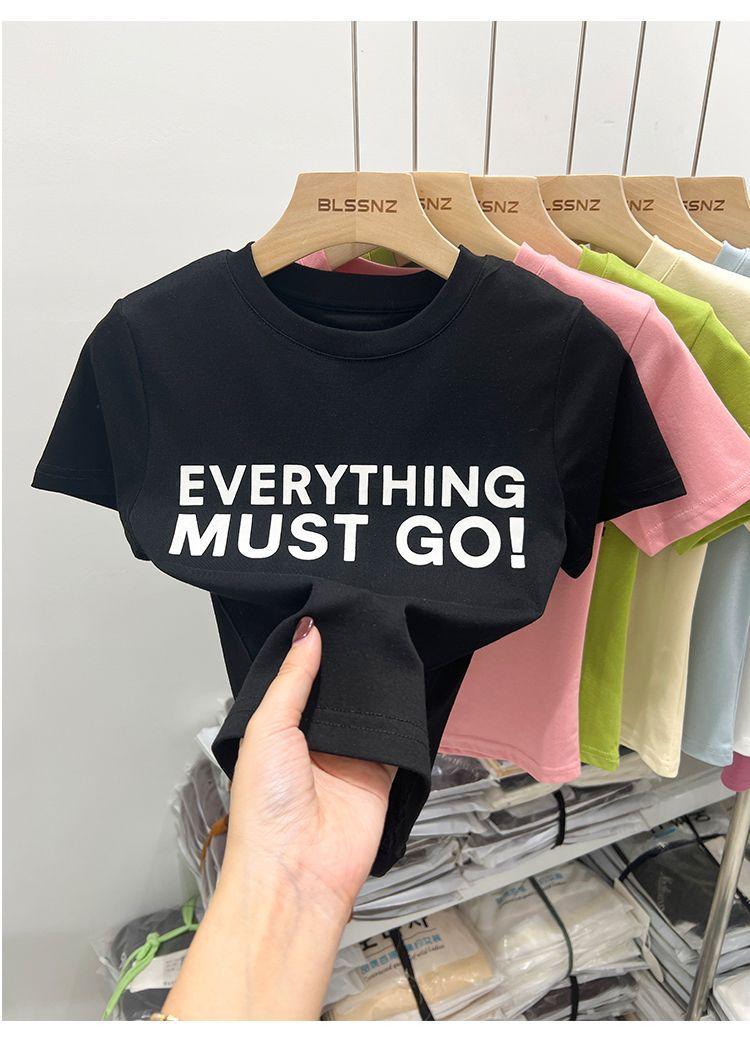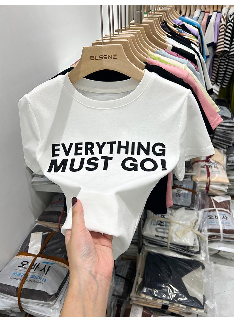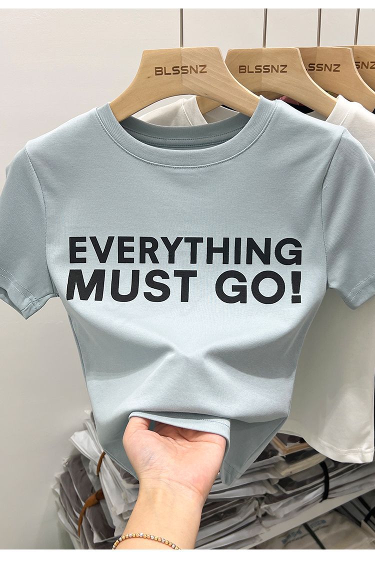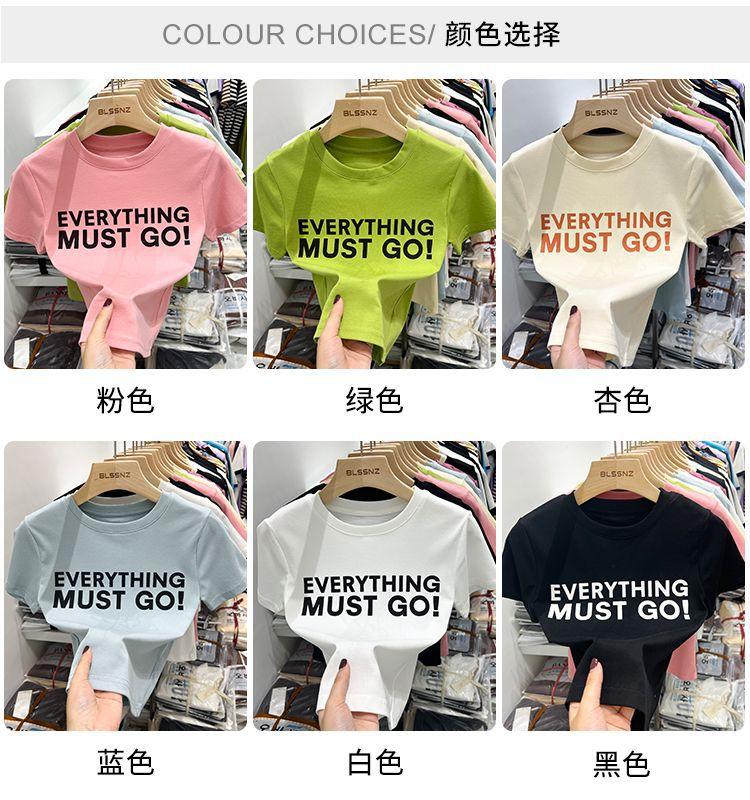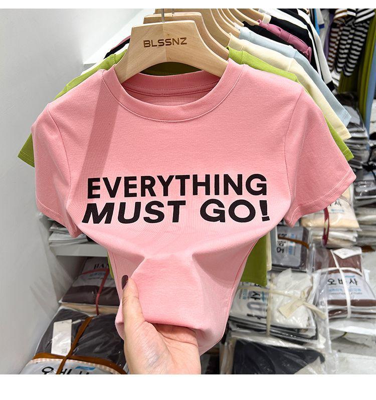 Camiseta blanca de manga corta para mujer, verano 2022, nueva camiseta de verano con estampado de letras, base fina, estilo ajustado y moderno.
