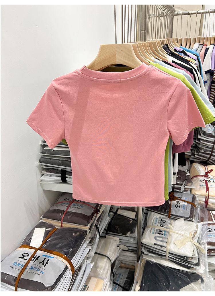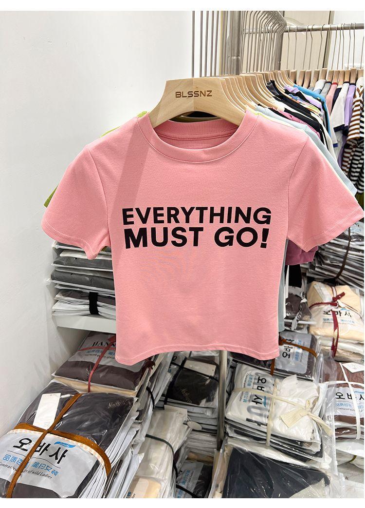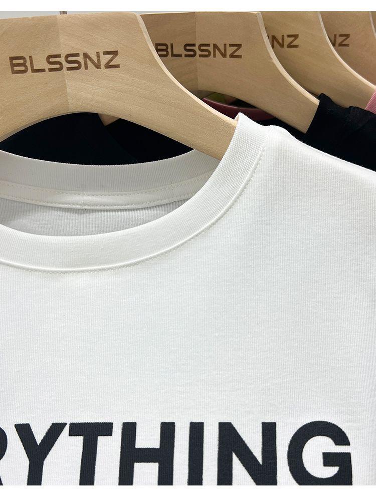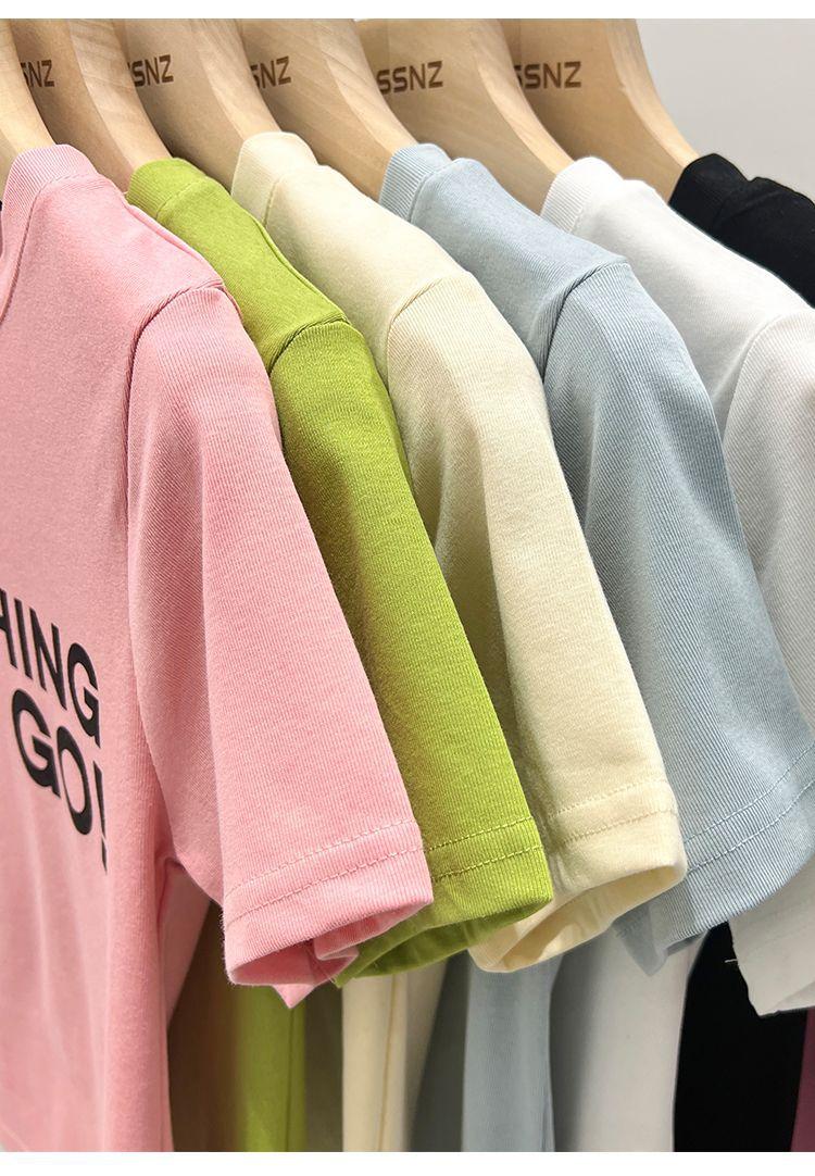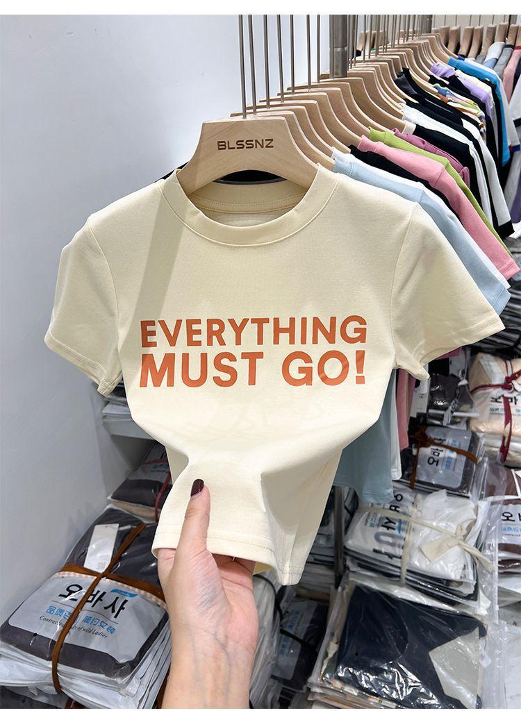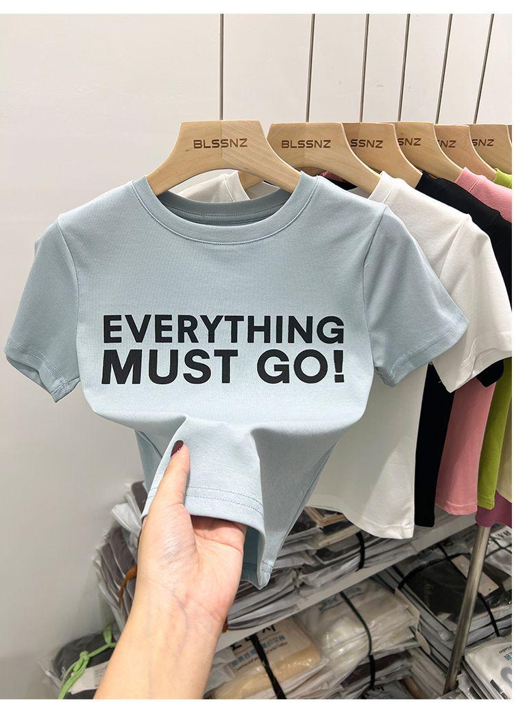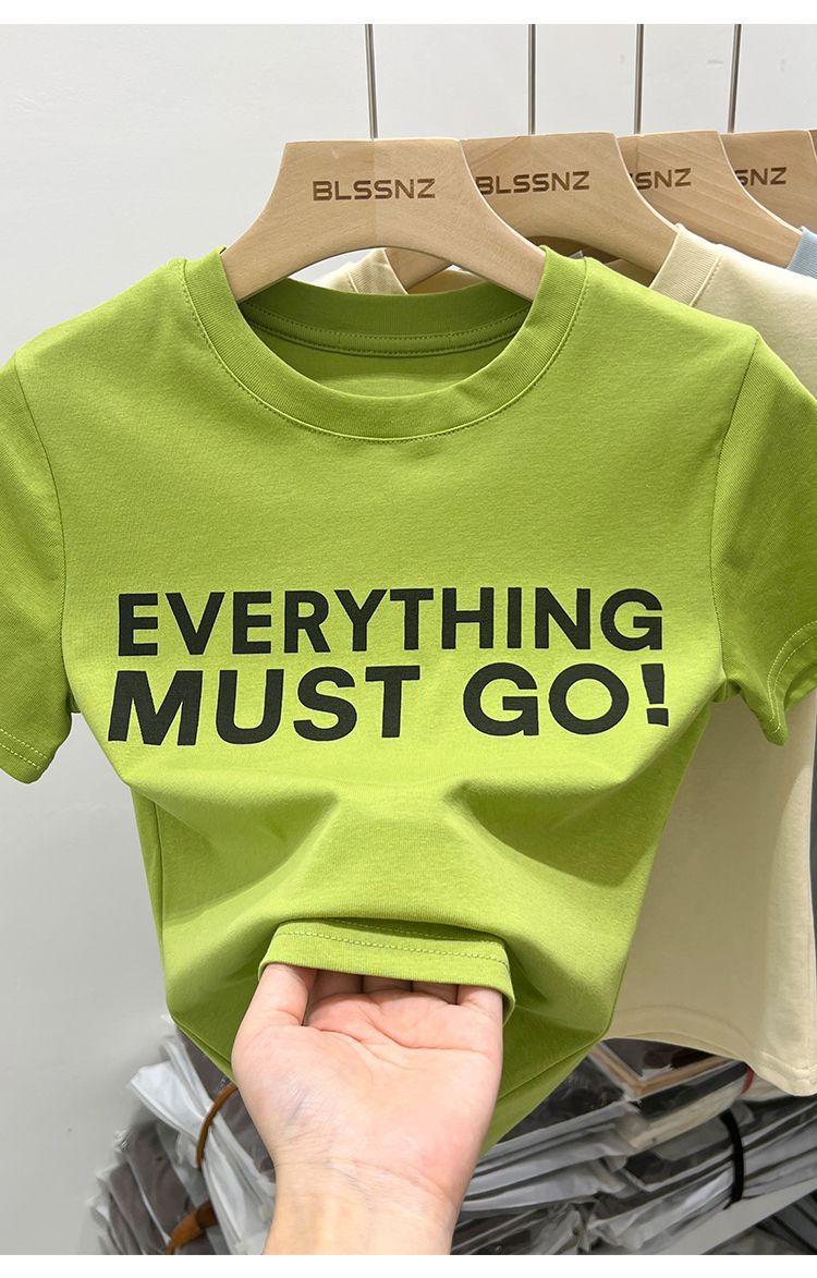 Camiseta blanca de manga corta para mujer, verano 2022, nueva camiseta de verano con estampado de letras, base fina, estilo ajustado y moderno.