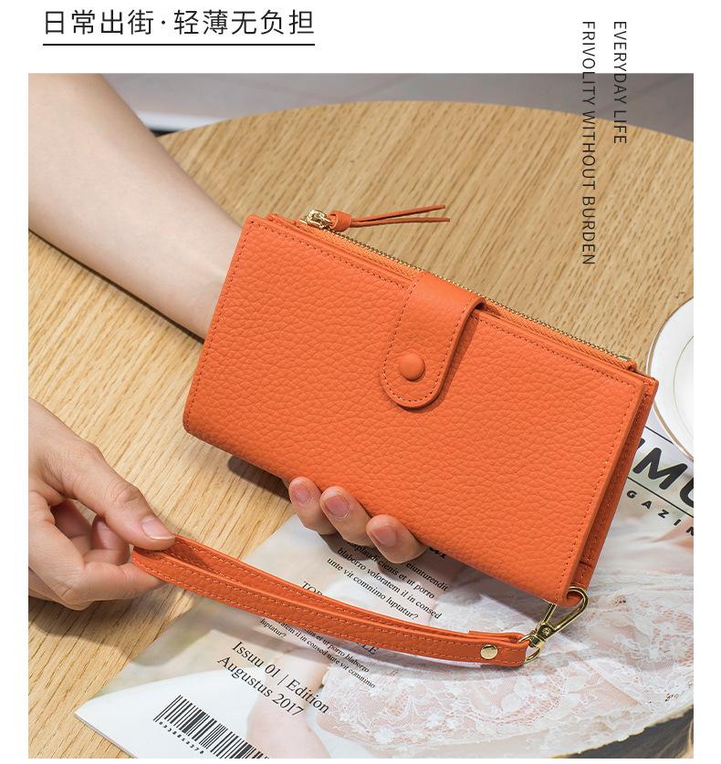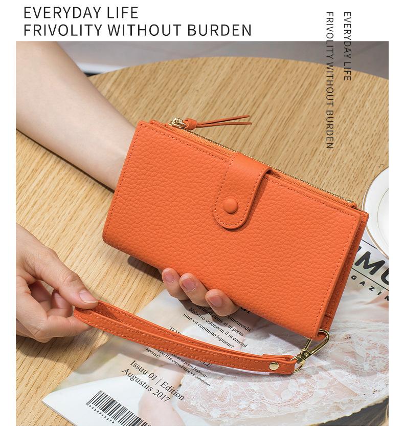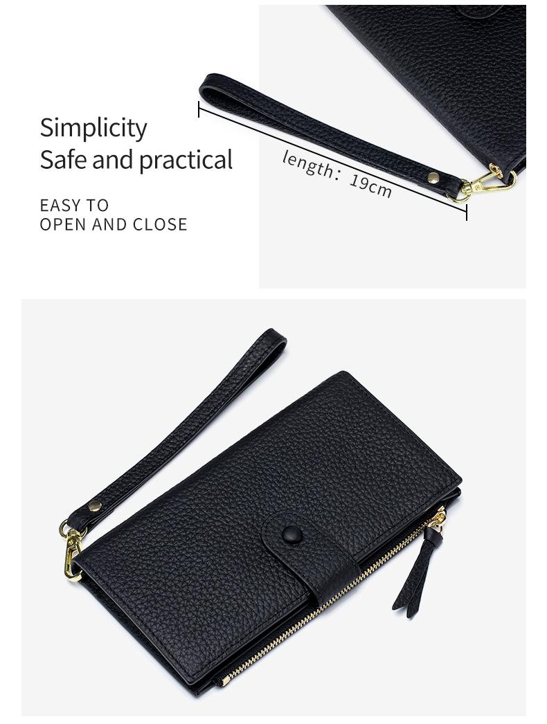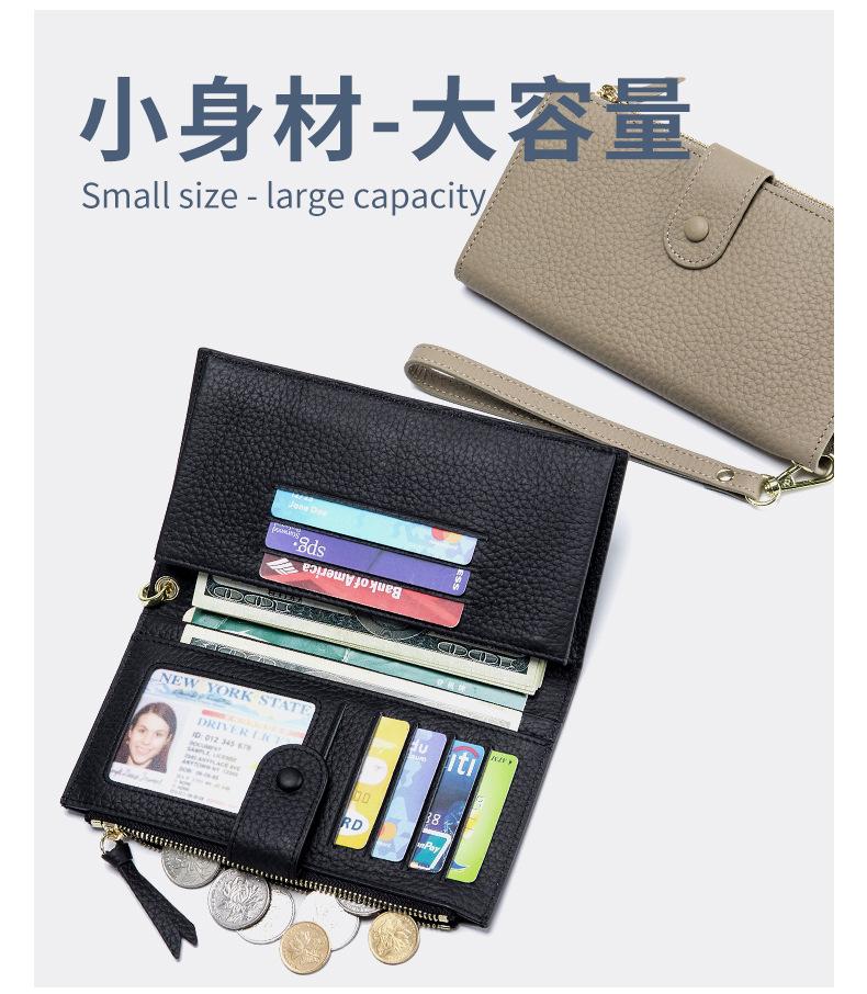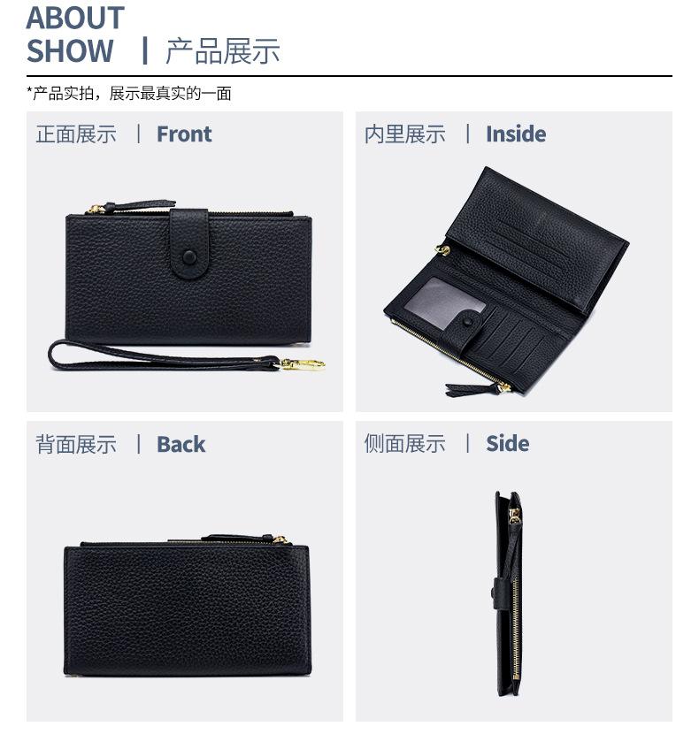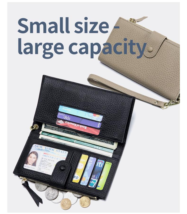 Estructura: 1 ranura para billetes/1 ranura para teléfono móvil/1 ranura para recibos/7 ranuras para tarjetas/1 ranura para espejo/1 bolsillo exterior con cremallera