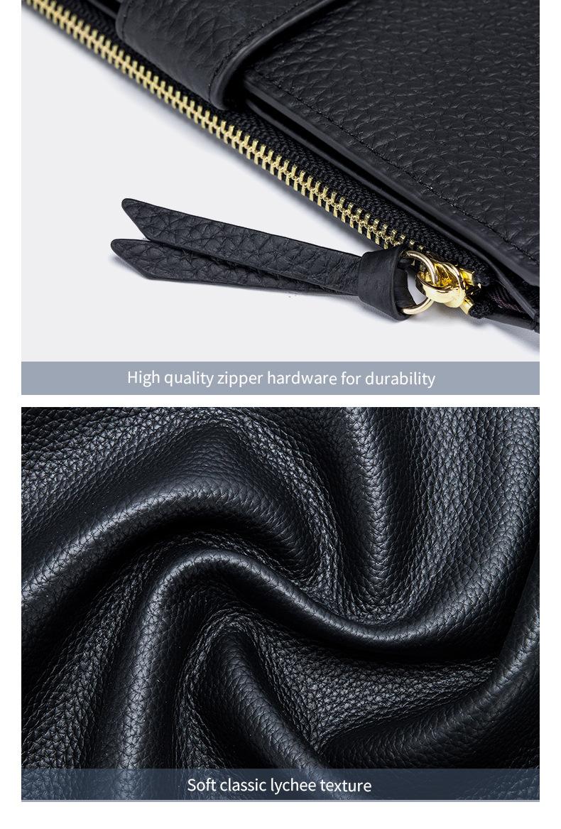 Punto de venta: Piel de vaca capa superior, cremallera suave. Diseño moderno