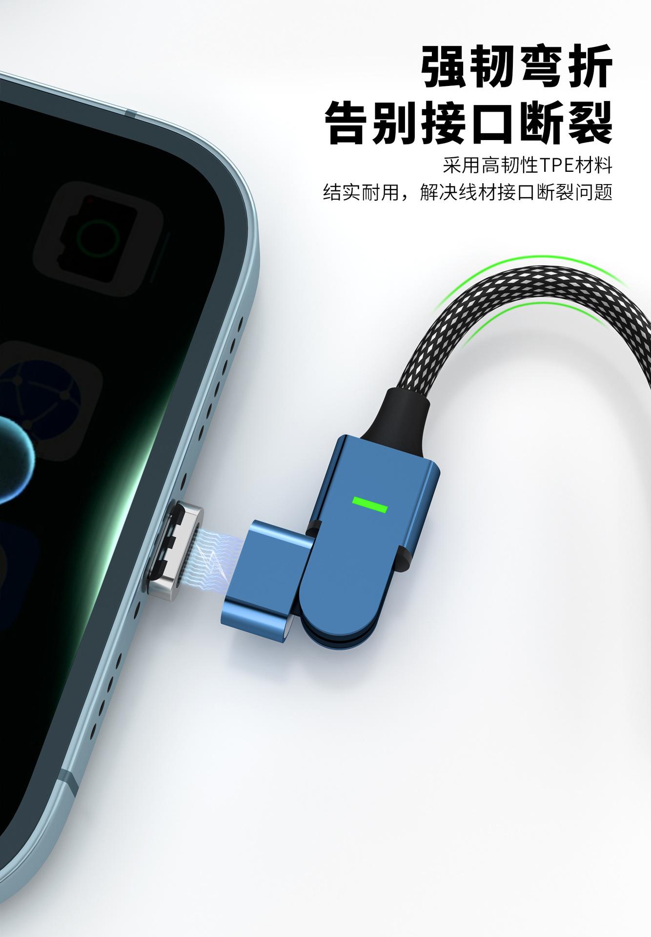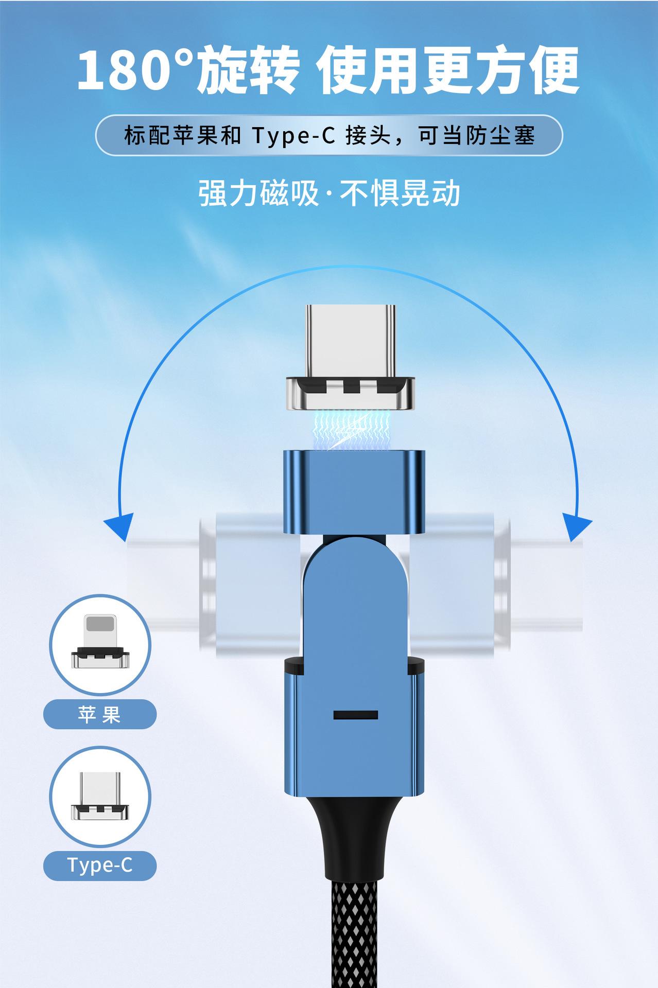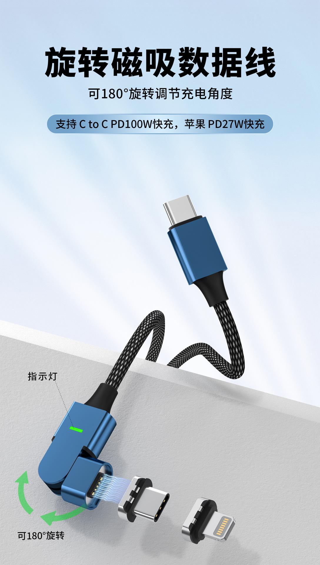 Cable de datos magnético giratorio transfronterizo doble tipo C compatible con el cable de carga del teléfono móvil portátil Apple Huawei PD100w