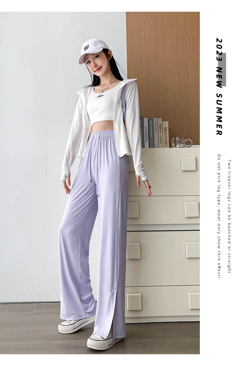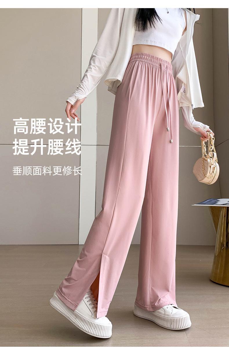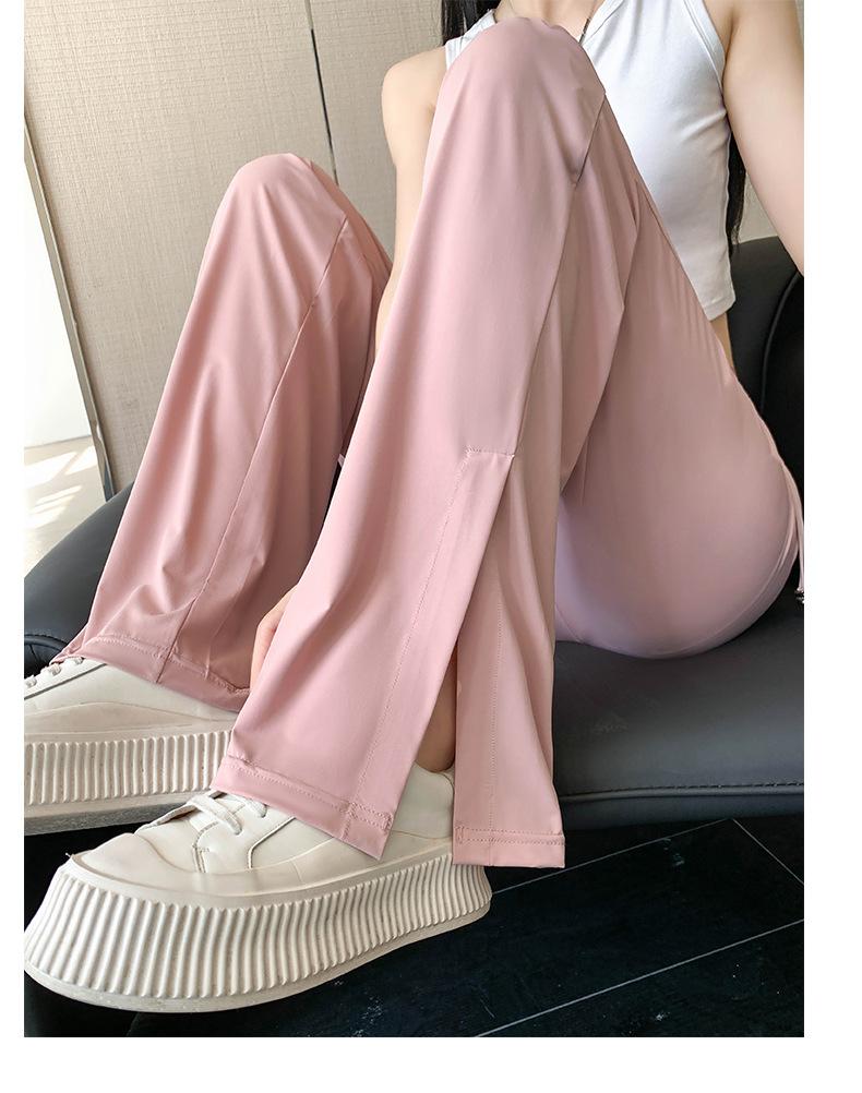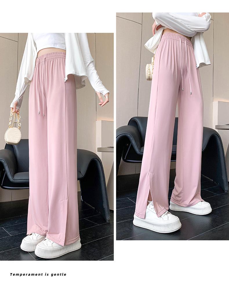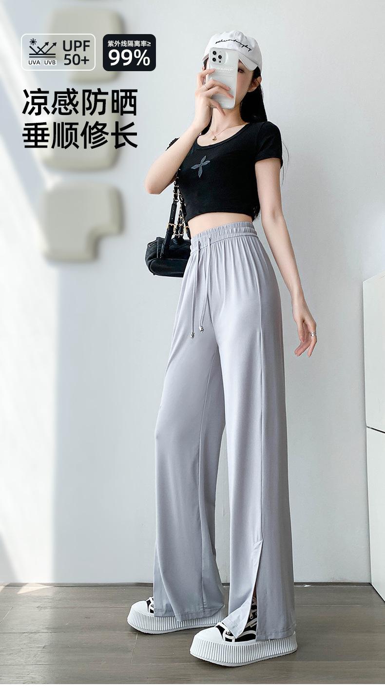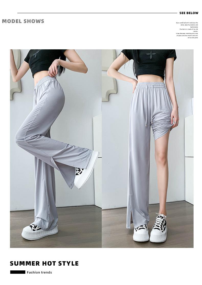 Compra Pantalones de Pierna Ancha de Seda de Hielo para Mujer Verano Delgados Abertura Profunda Pantalones Casuales Sueltos Rectos Hasta el Piso Pantalones Acondicionados Protección Solar al por mayor en Joom.pro