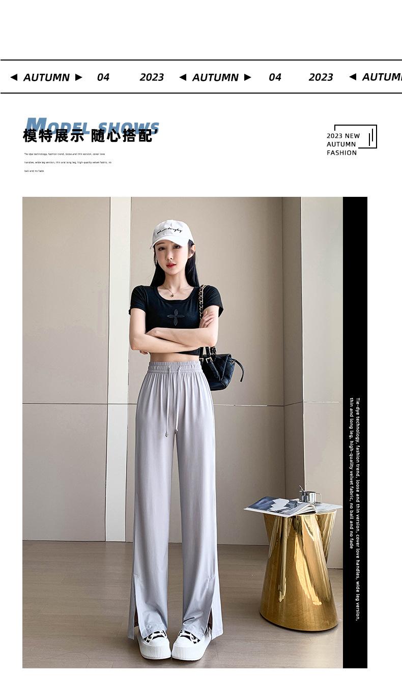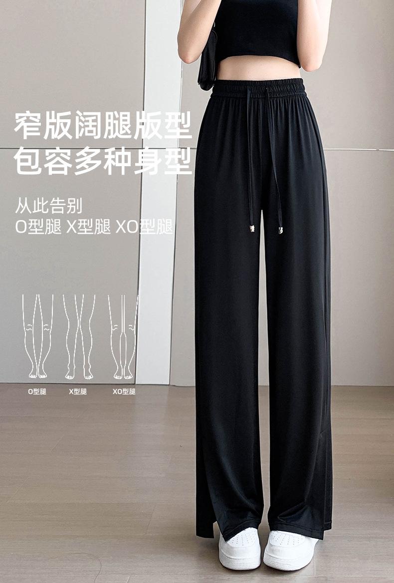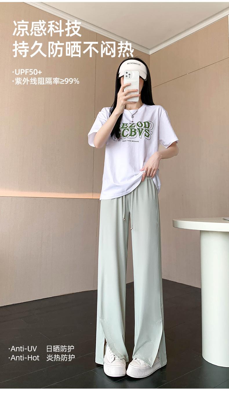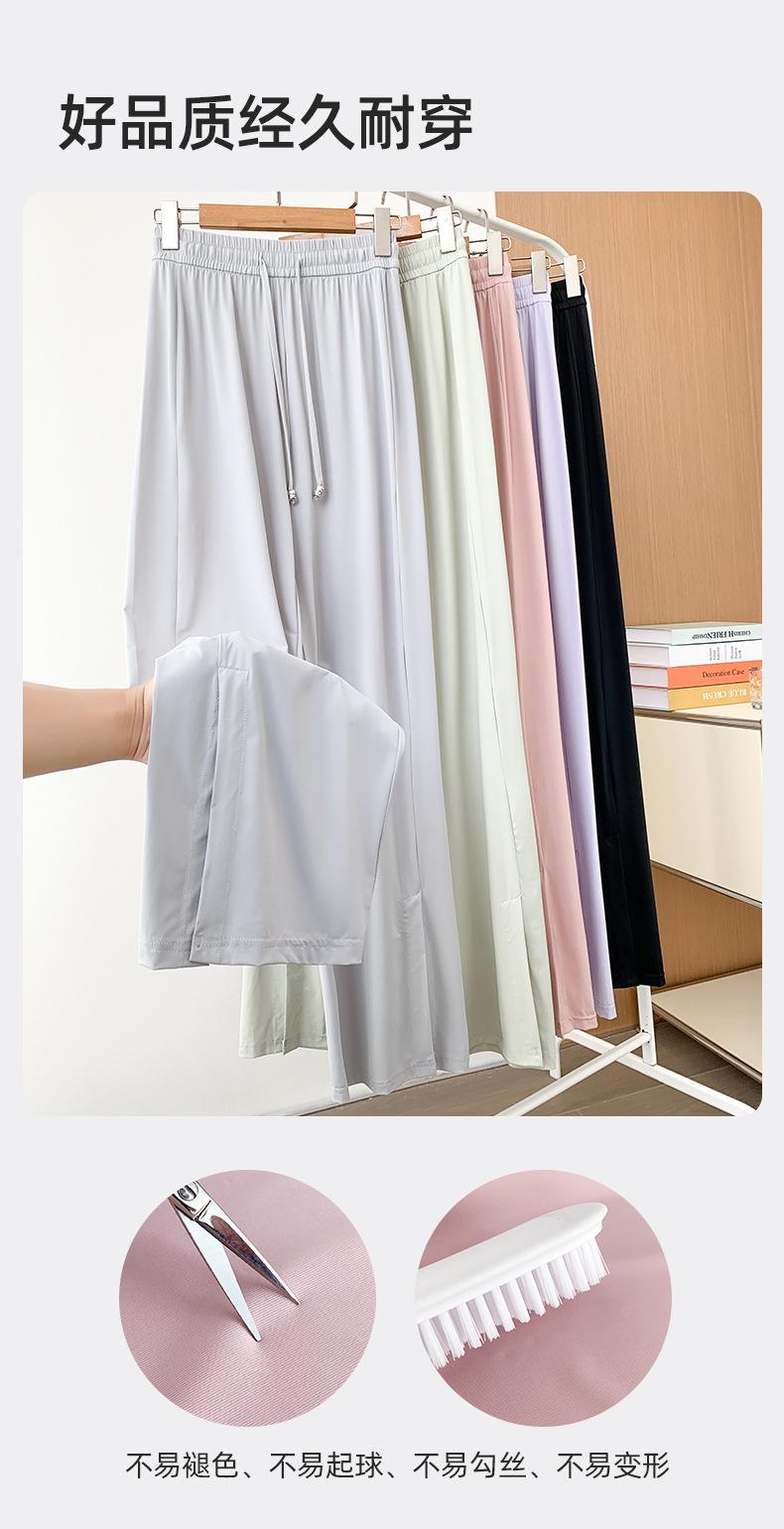 Compra Pantalones de Pierna Ancha de Seda de Hielo para Mujer Verano Delgados Abertura Profunda Pantalones Casuales Sueltos Rectos Hasta el Piso Pantalones Acondicionados Protección Solar al por mayor en Joom.pro