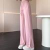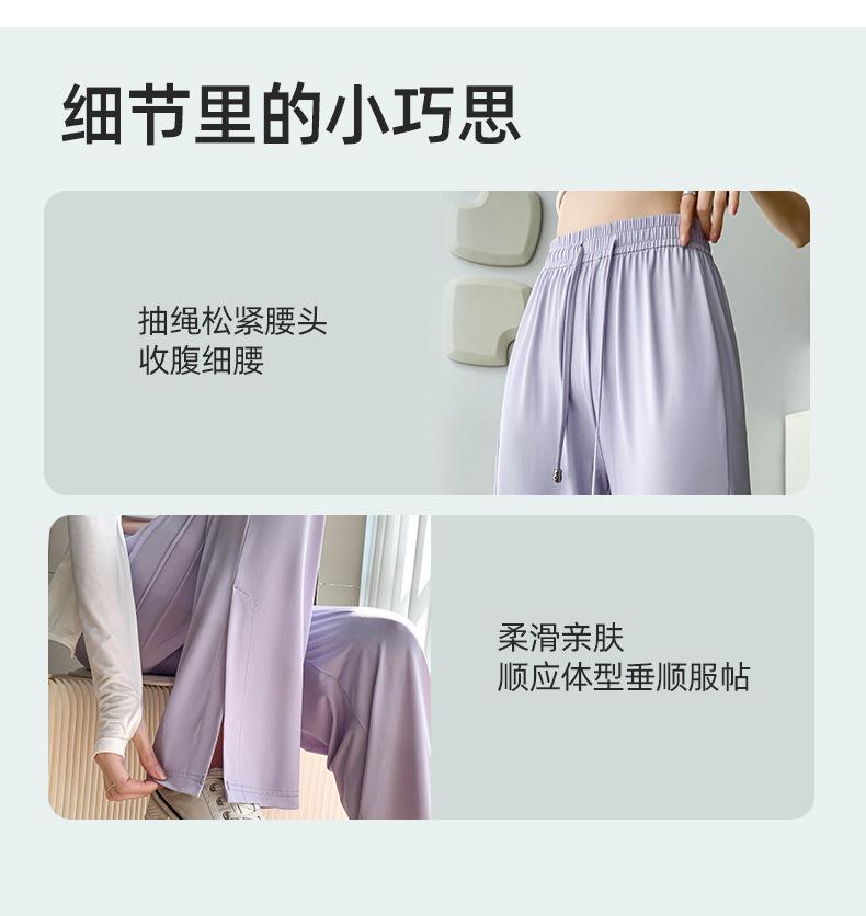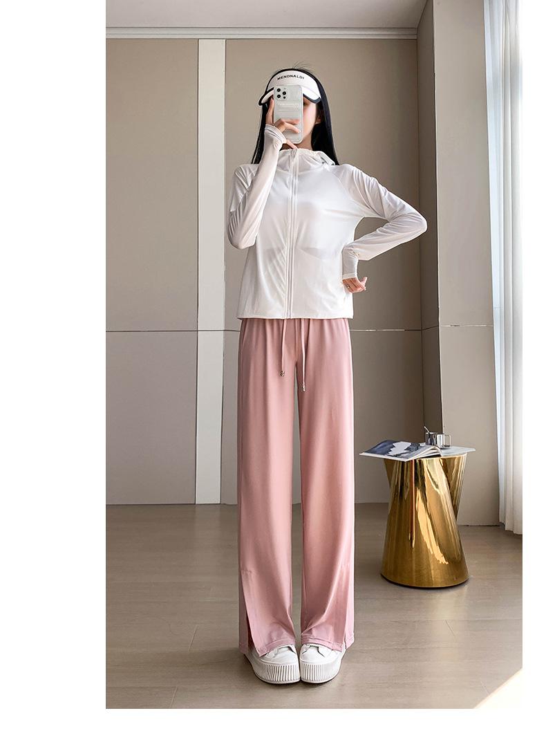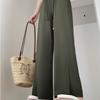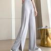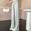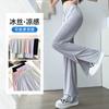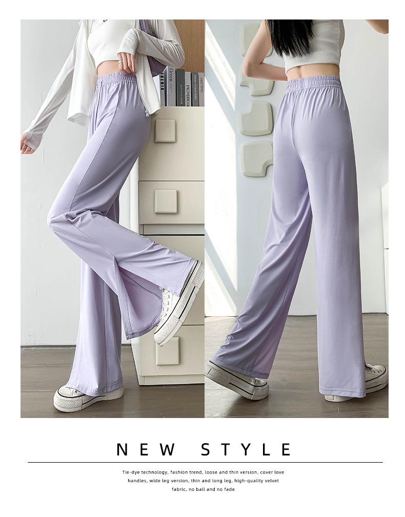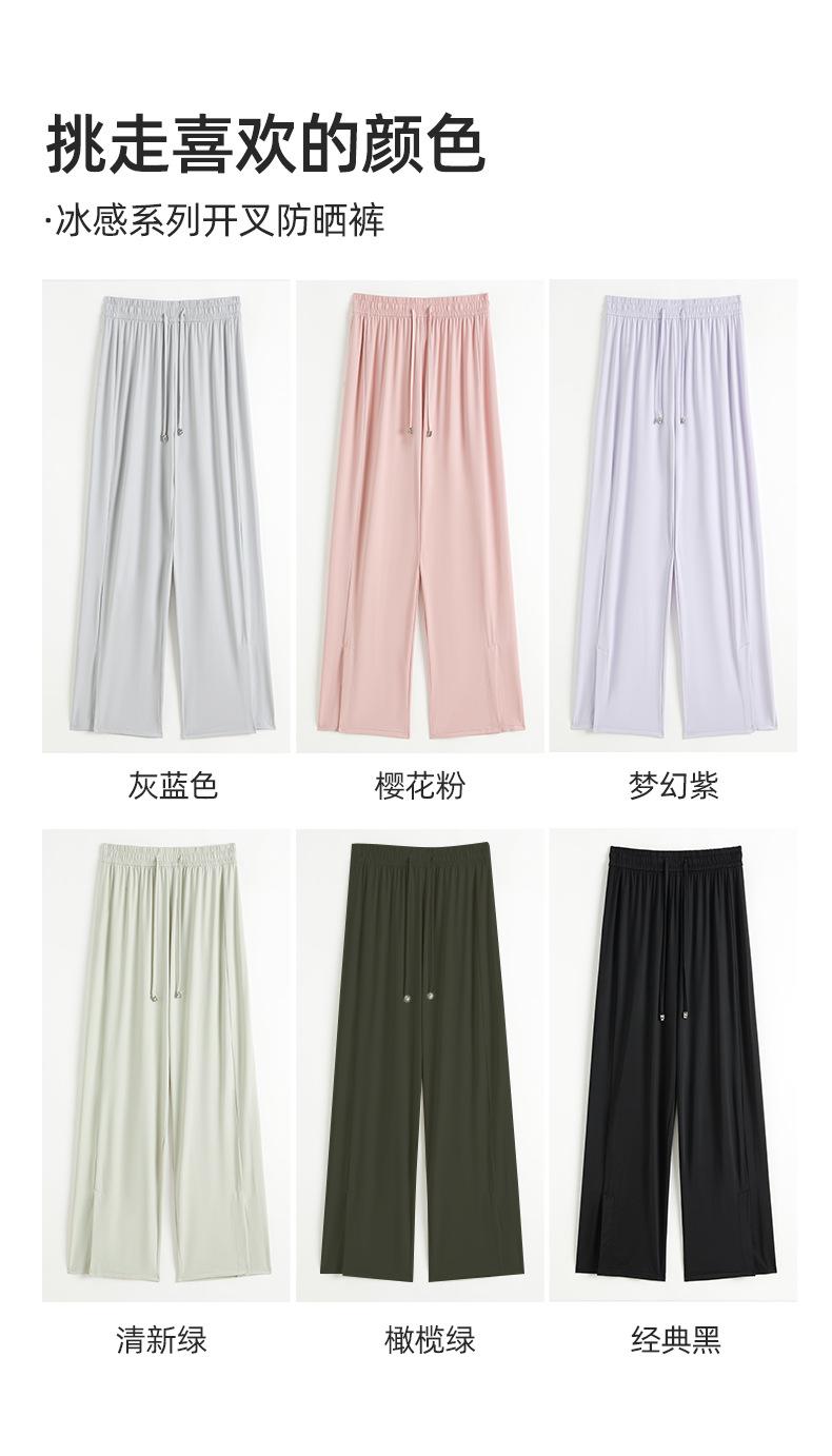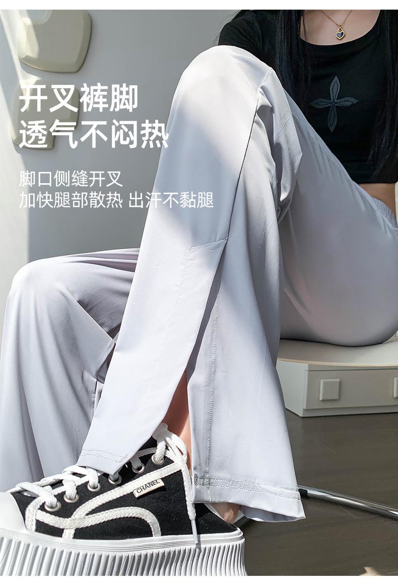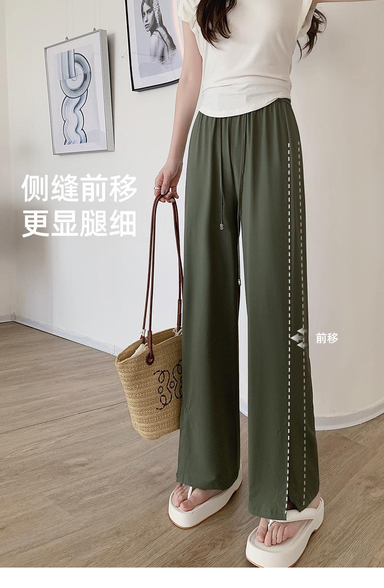 Compra Pantalones de Pierna Ancha de Seda de Hielo para Mujer Verano Delgados Abertura Profunda Pantalones Casuales Sueltos Rectos Hasta el Piso Pantalones Acondicionados Protección Solar al por mayor en Joom.pro