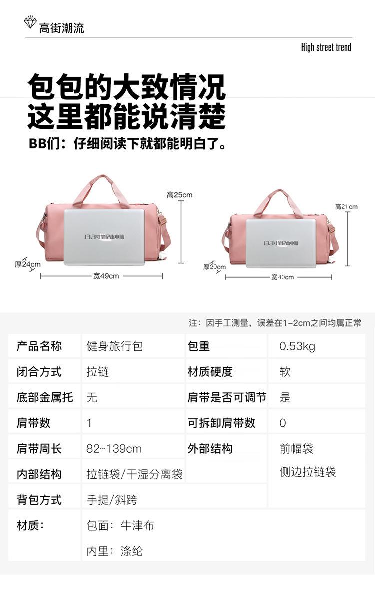 Bolsa independiente para calzado seco y húmedo, para entrenamiento deportivo, viajes de corta distancia, bolsa de yoga para fitness de gran capacidad, de moda para mujer.