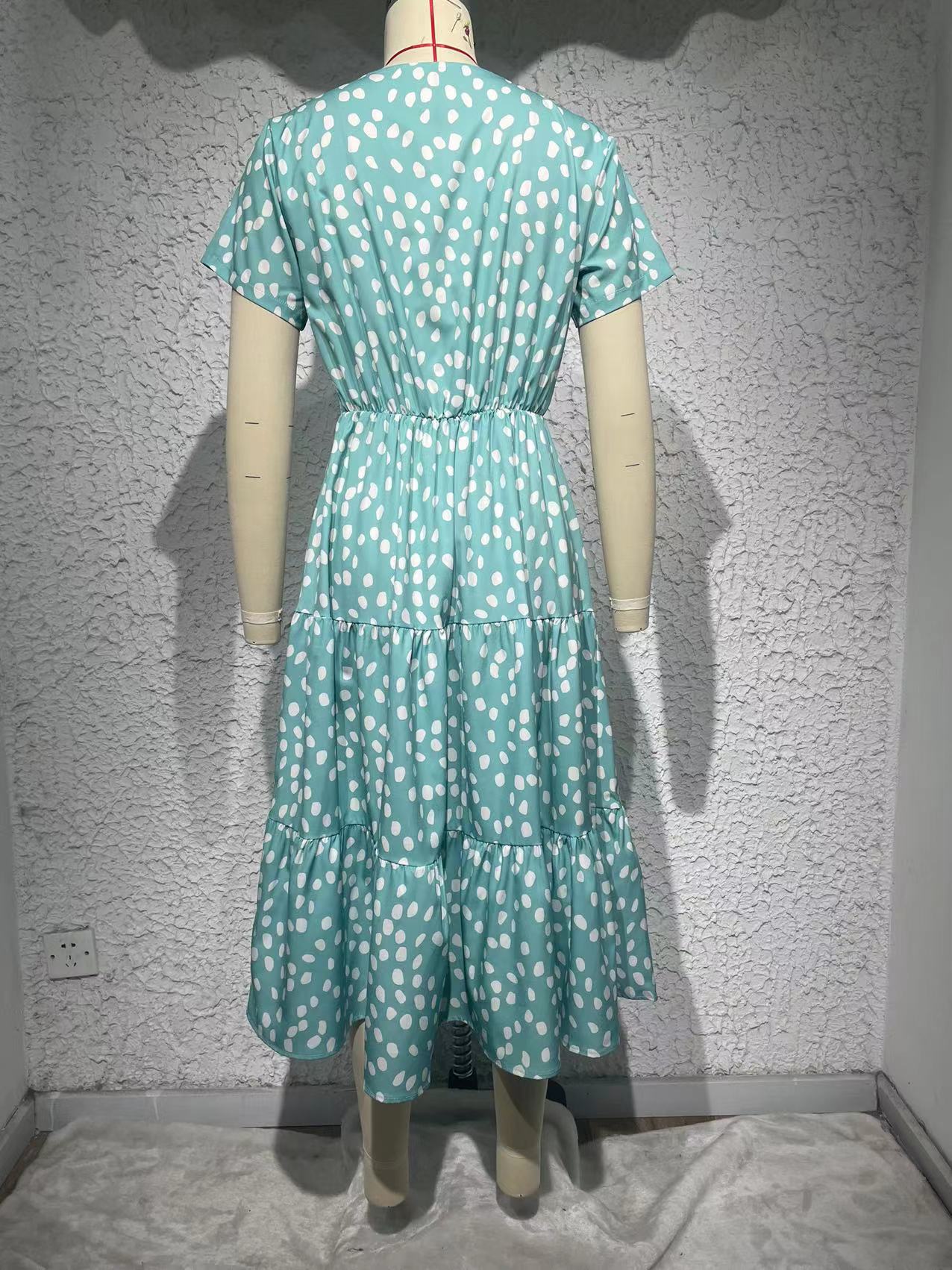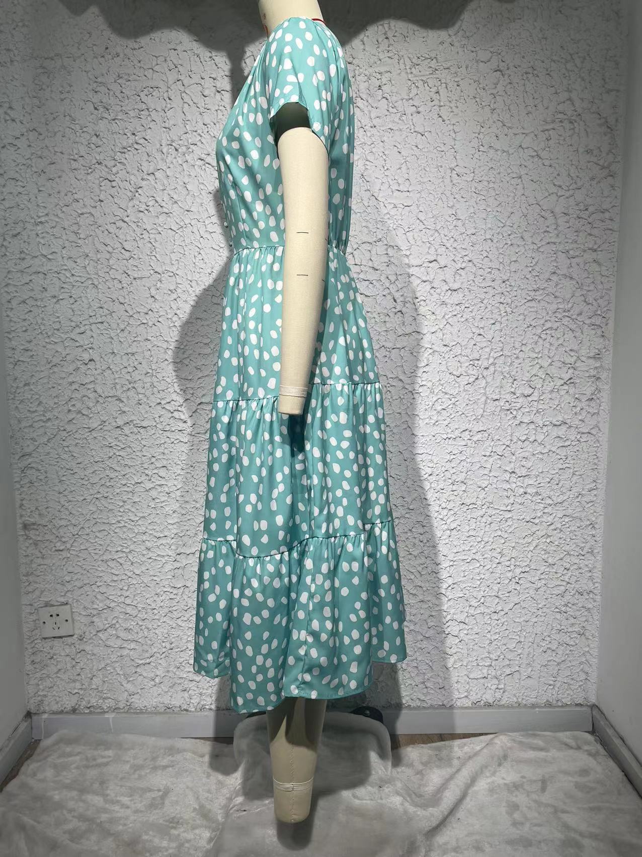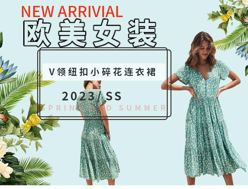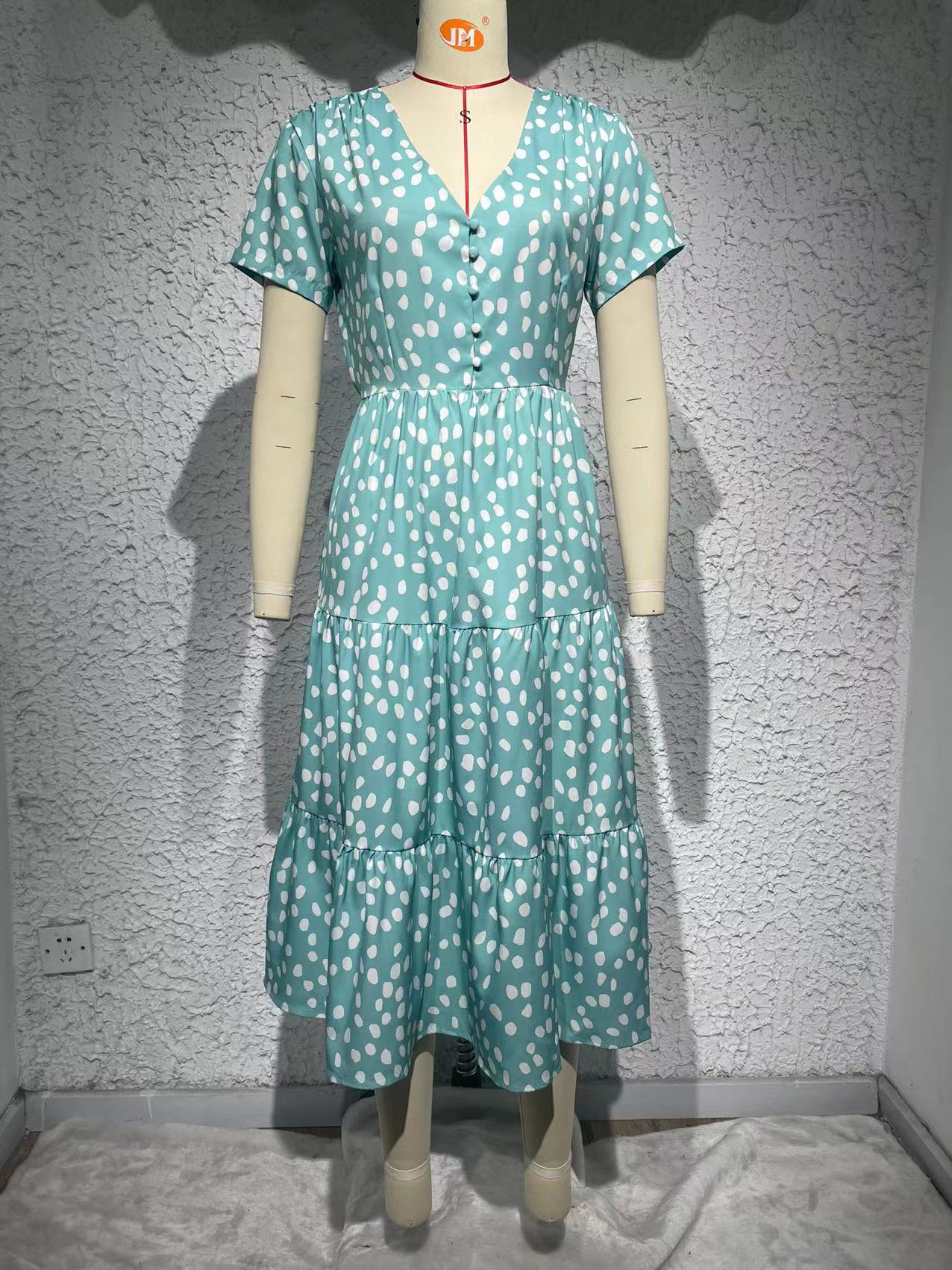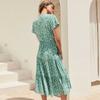 Vestido Casual de Vacaciones de Primavera y Verano Europeo y Americano Transfronterizo 2026 Nuevo de Amazon con Cuello en V, Botones y Estampado Floral de Manga Corta para Mujer