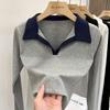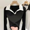 Camiseta de manga larga con cuello polo para mujer, diseño Sense Niche, primavera temprana, nueva costura, top corto con cuello en V, camisa interior para mujer