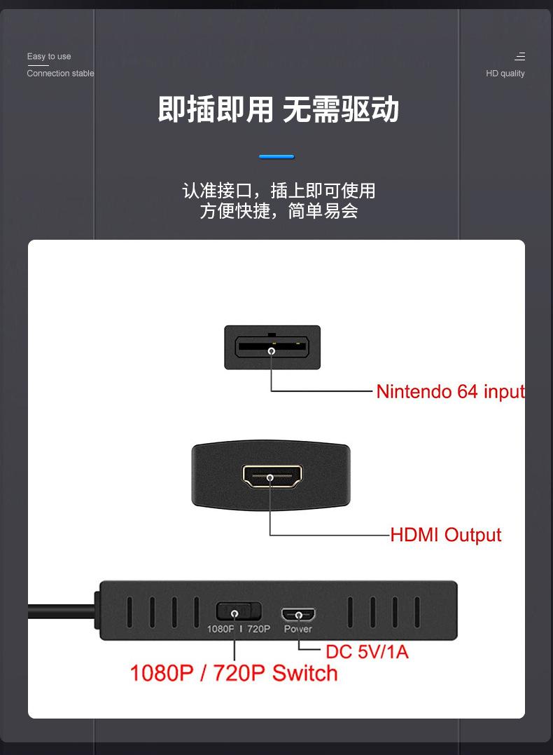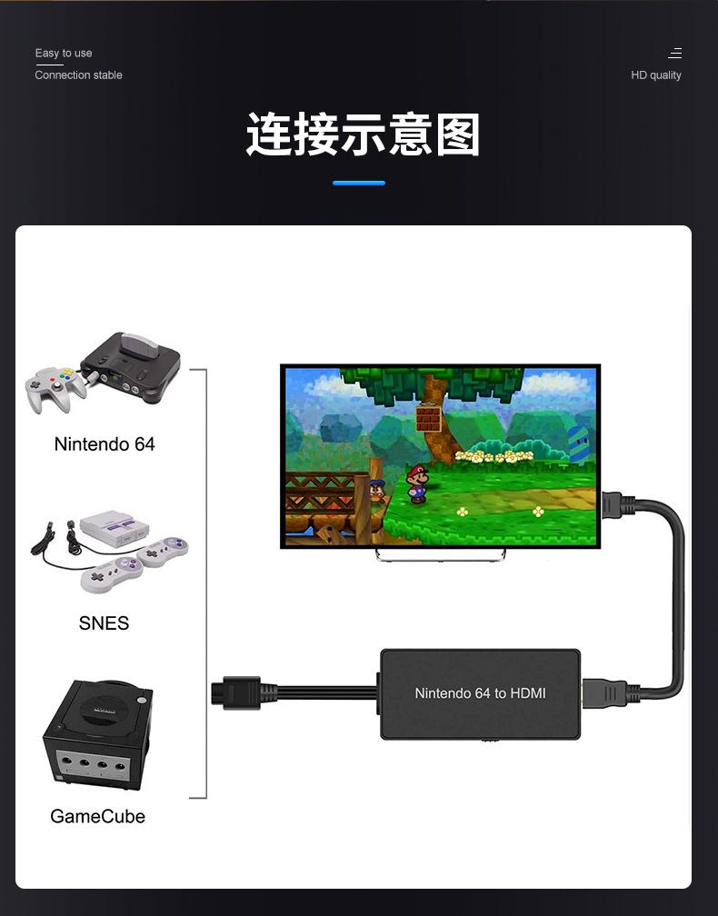Compra N64 a HDMI consola de juegos retro a HDMI Convertidor HD Adaptador NGC/SFC TV plug-and-play al por mayor en Joom.pro