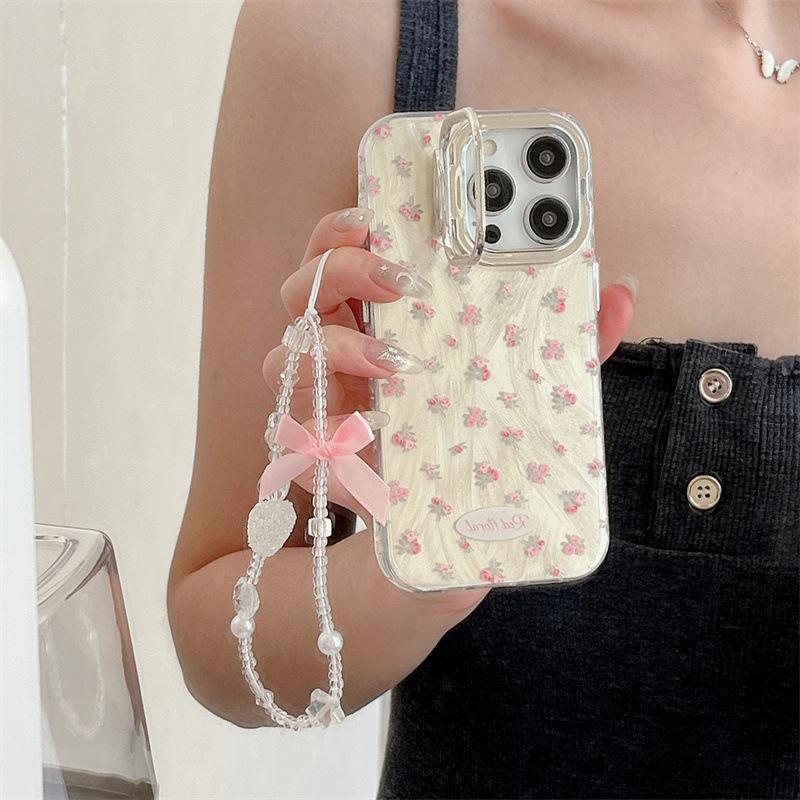 Hilo de plumas con flores, adecuado para iPhone 15 Pro Max, funda para teléfono, Apple 14 Pro, soporte para pulsera 13, 12 y 11.