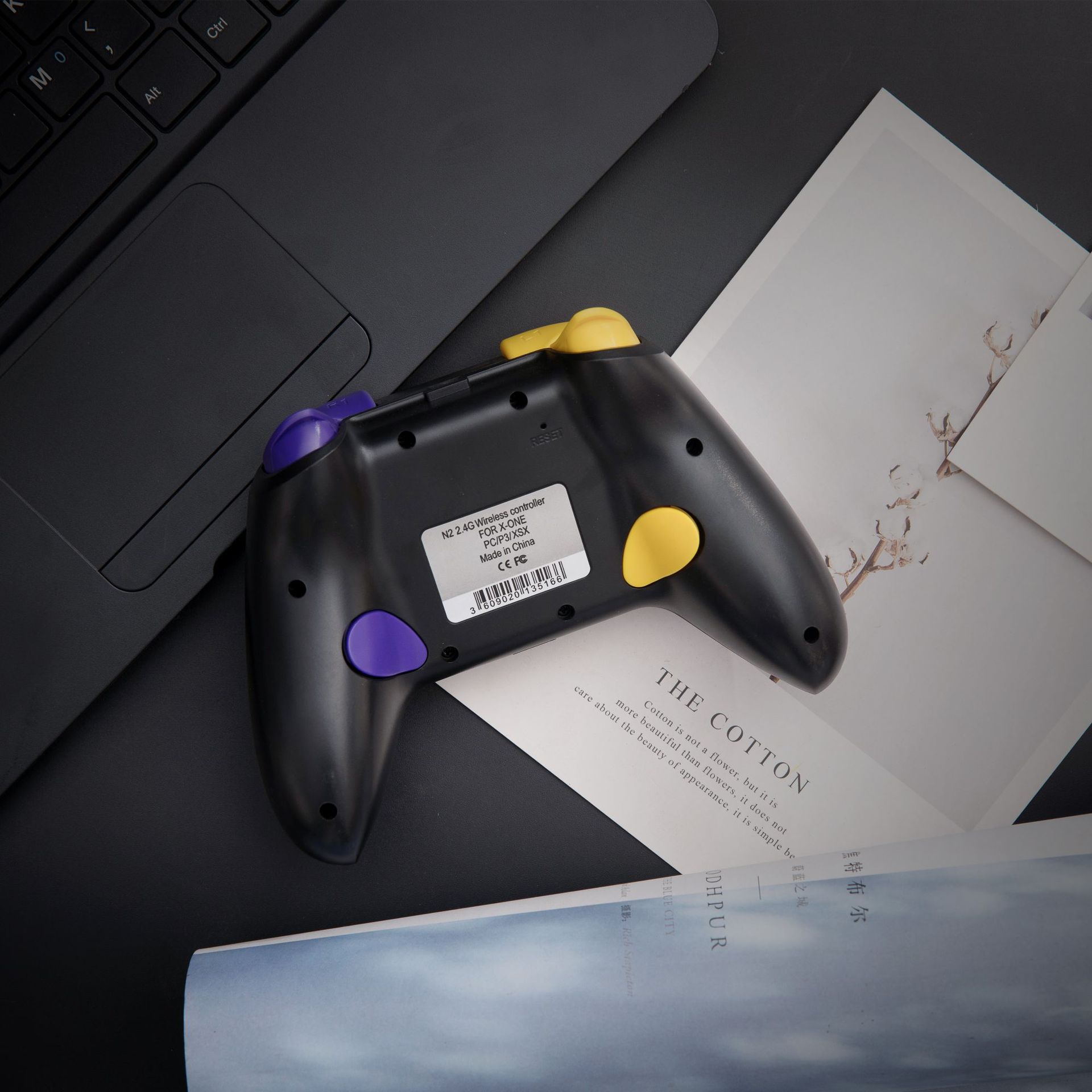 Gamepad inalámbrico N-2 2.4G, el gamepad se utiliza principalmente en todas las consolas de la serie XBOX ONE, las consolas de la serie incluyen las consolas más recientes XBOX SERIE S y XBOX SERIES X, y también admite el uso en computadoras Windows, siempre que sea un sistema superior a windows7, no es necesario instalar controladores, reconocerá e instalará automáticamente los controladores.