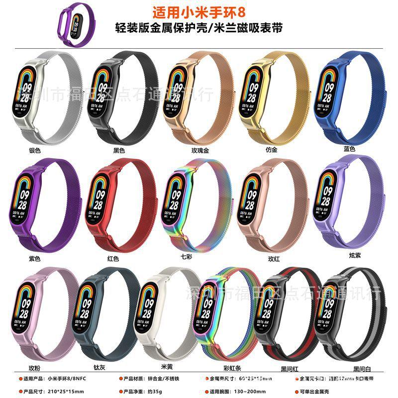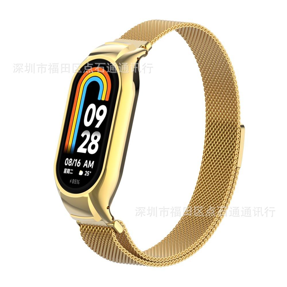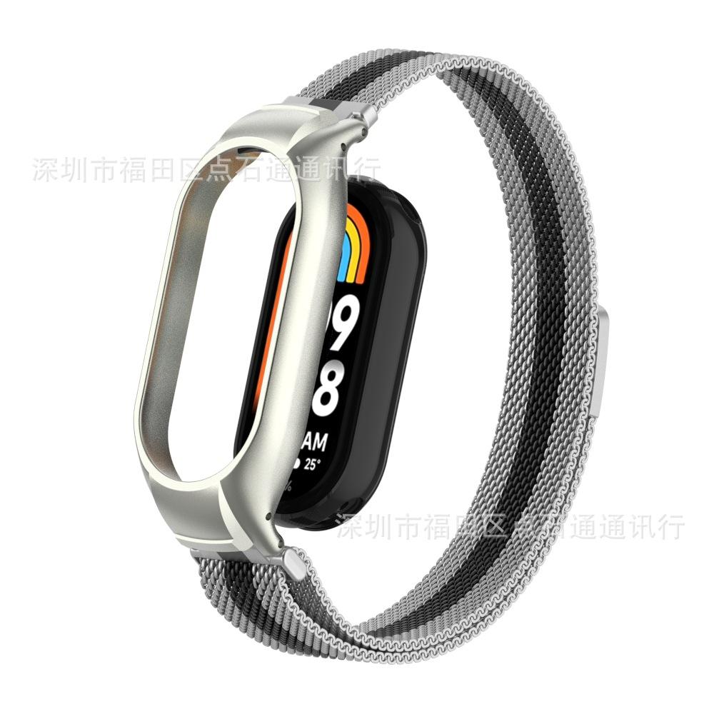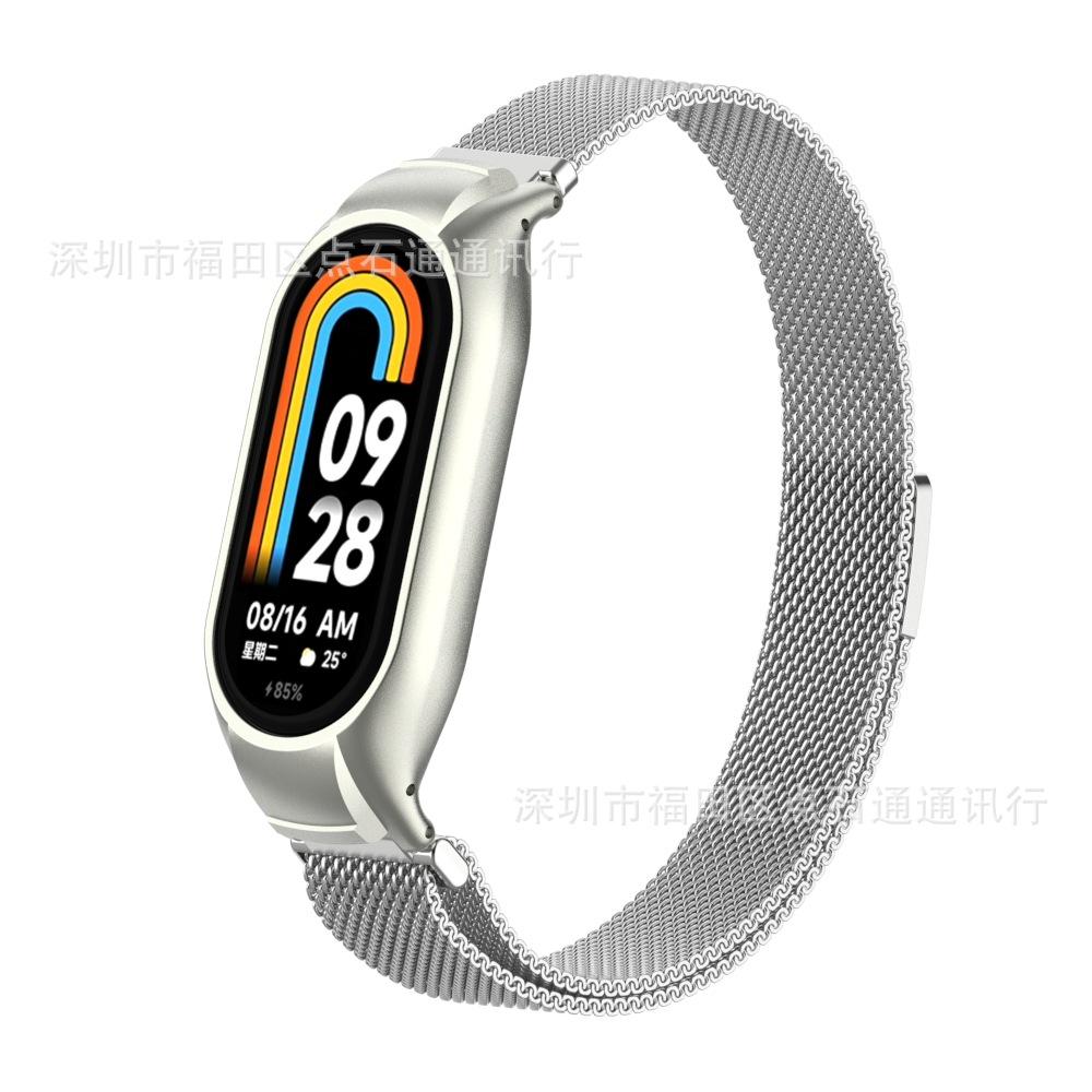 Compatible con la pulsera inteligente Mi Band 8, correa de metal milanesa, pulsera magnética milanesa.