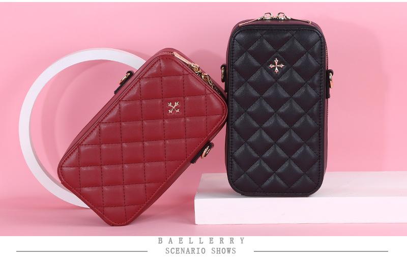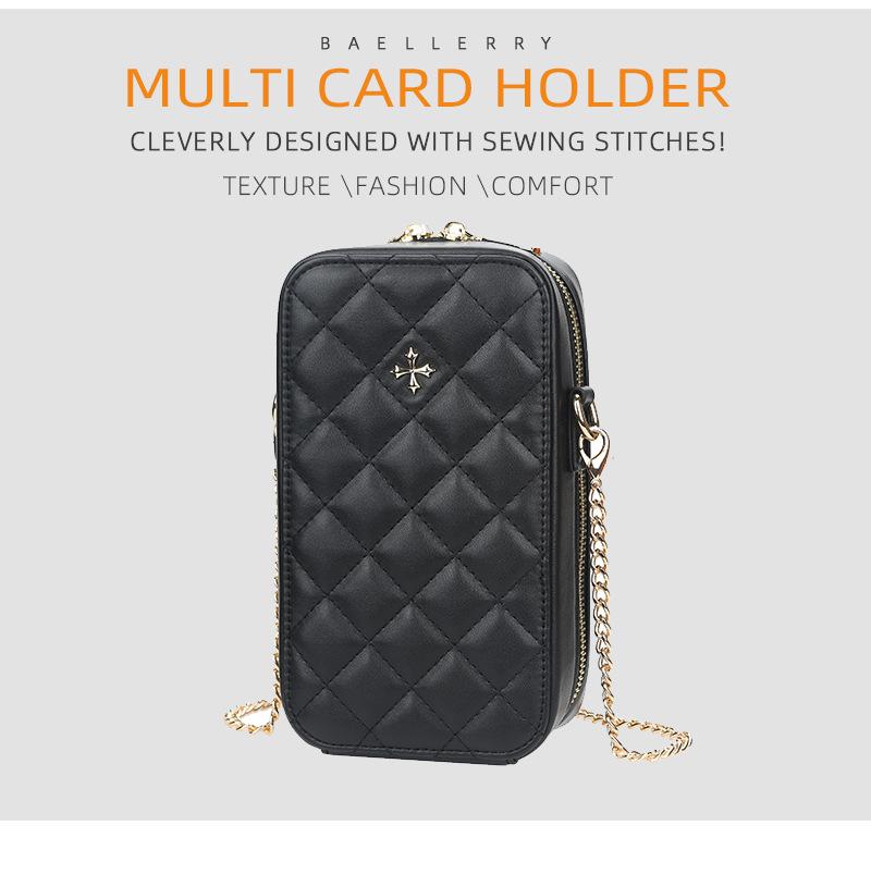 Bolso de Mujer Baellerry Multifuncional Vertical para Teléfono Móvil a Cuadros con Cierre Coreano Bandolera Billetera Larga