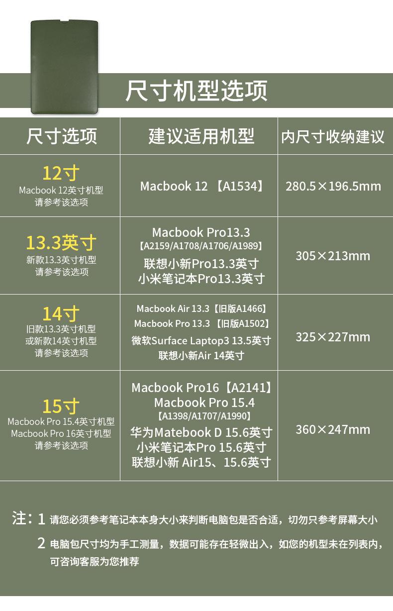 12 inch, 13 inch, 13.3/14 inch, 15 inch/16 inch