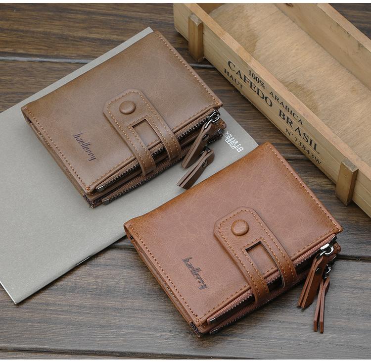 Billetera Corta para Hombre Baellerry Retro Doble Cremallera Billetera Multifuncional Moderna Ranuras para Múltiples Tarjetas Monedero para Hombre