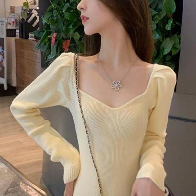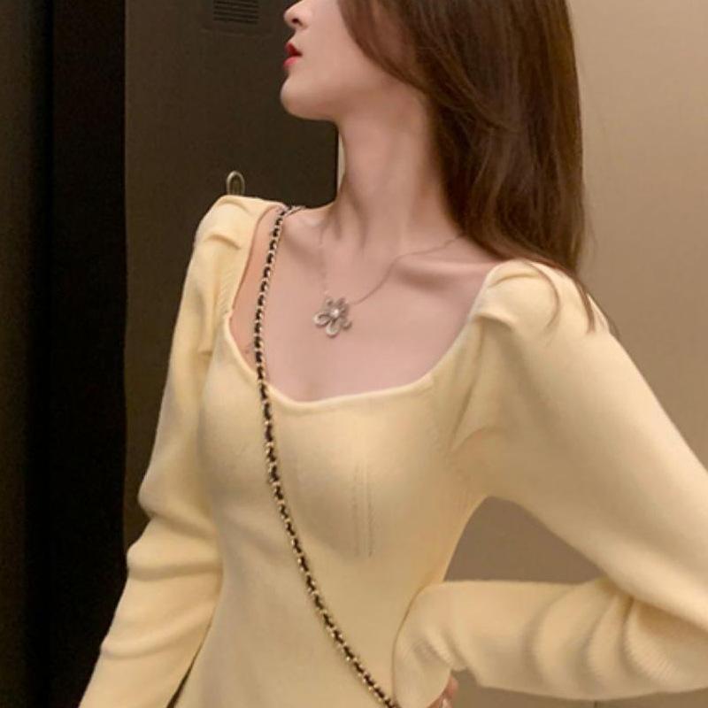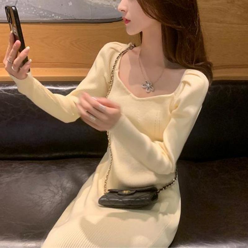 Vestido de Punto para Mujer, Nuevo Estilo Otoñal, Estilo Socialité Francés, Vestido Largo Suave y Ajustado