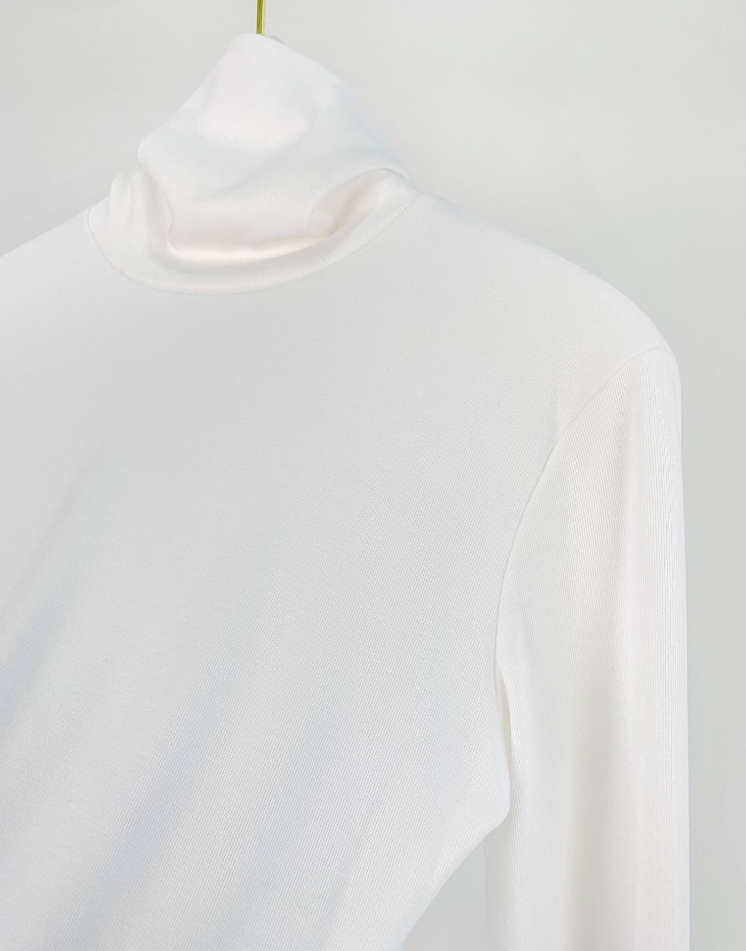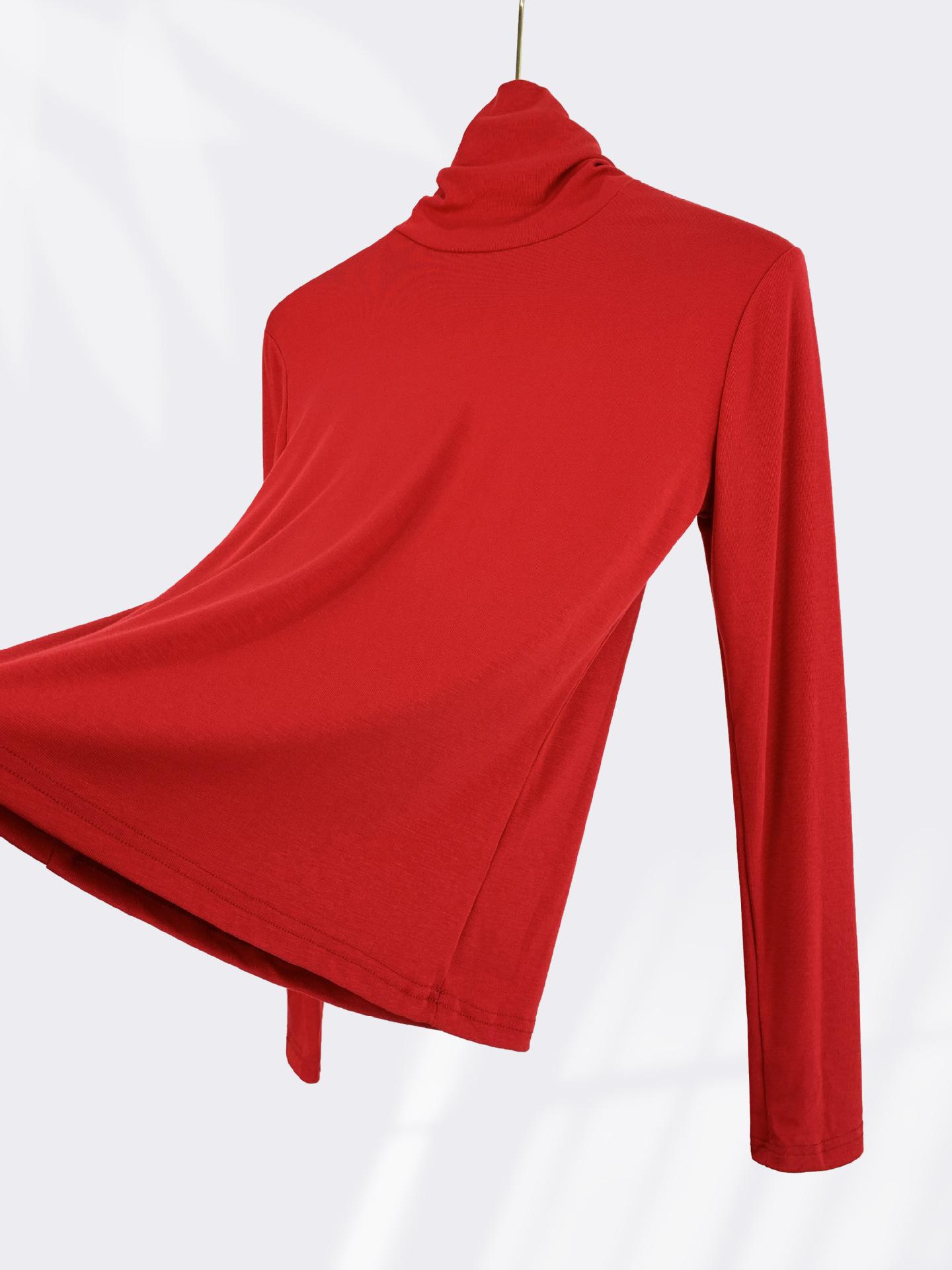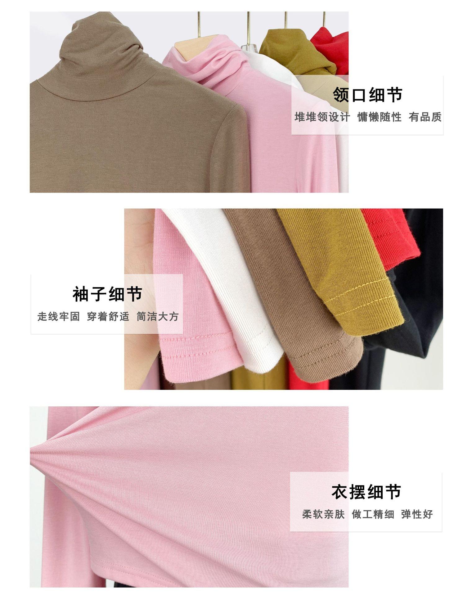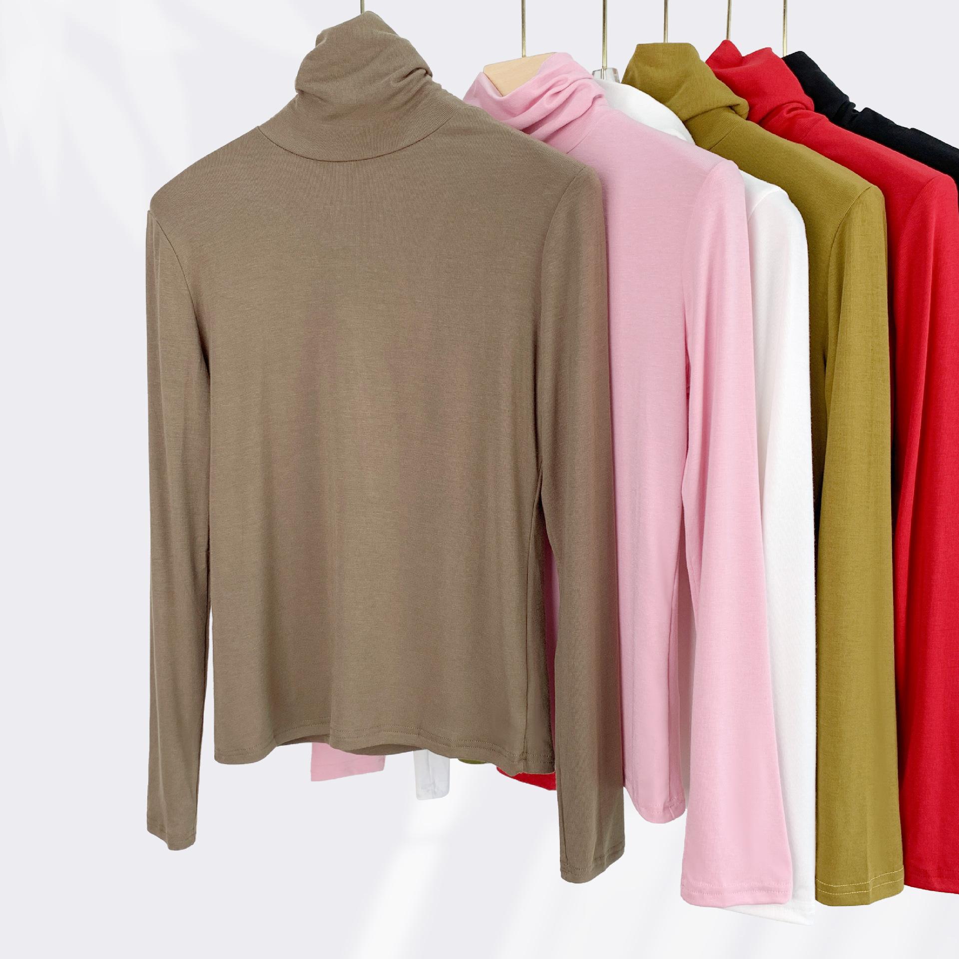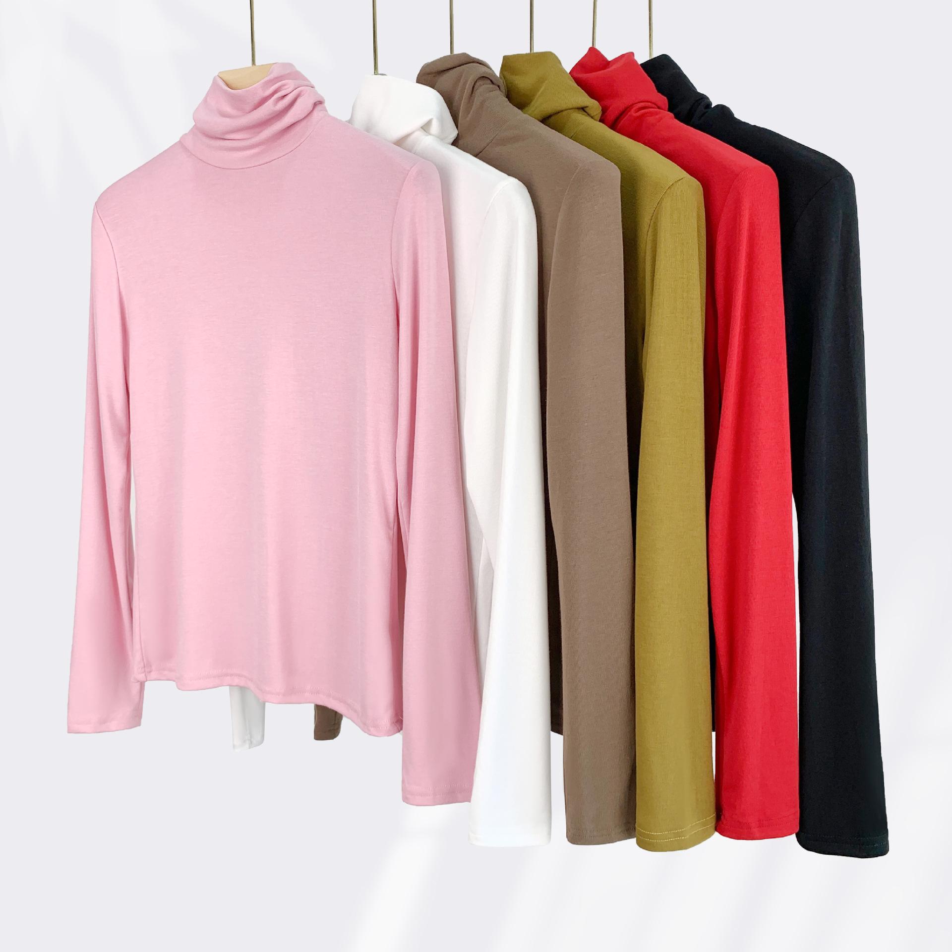 Compra Algodón Peinado Súper Suave Drapeado Cuello Pile Camiseta Base para Mujer para Primavera con Cuello Alto Delgado de Color Puro Camiseta de Manga Larga al por mayor en Joom.pro