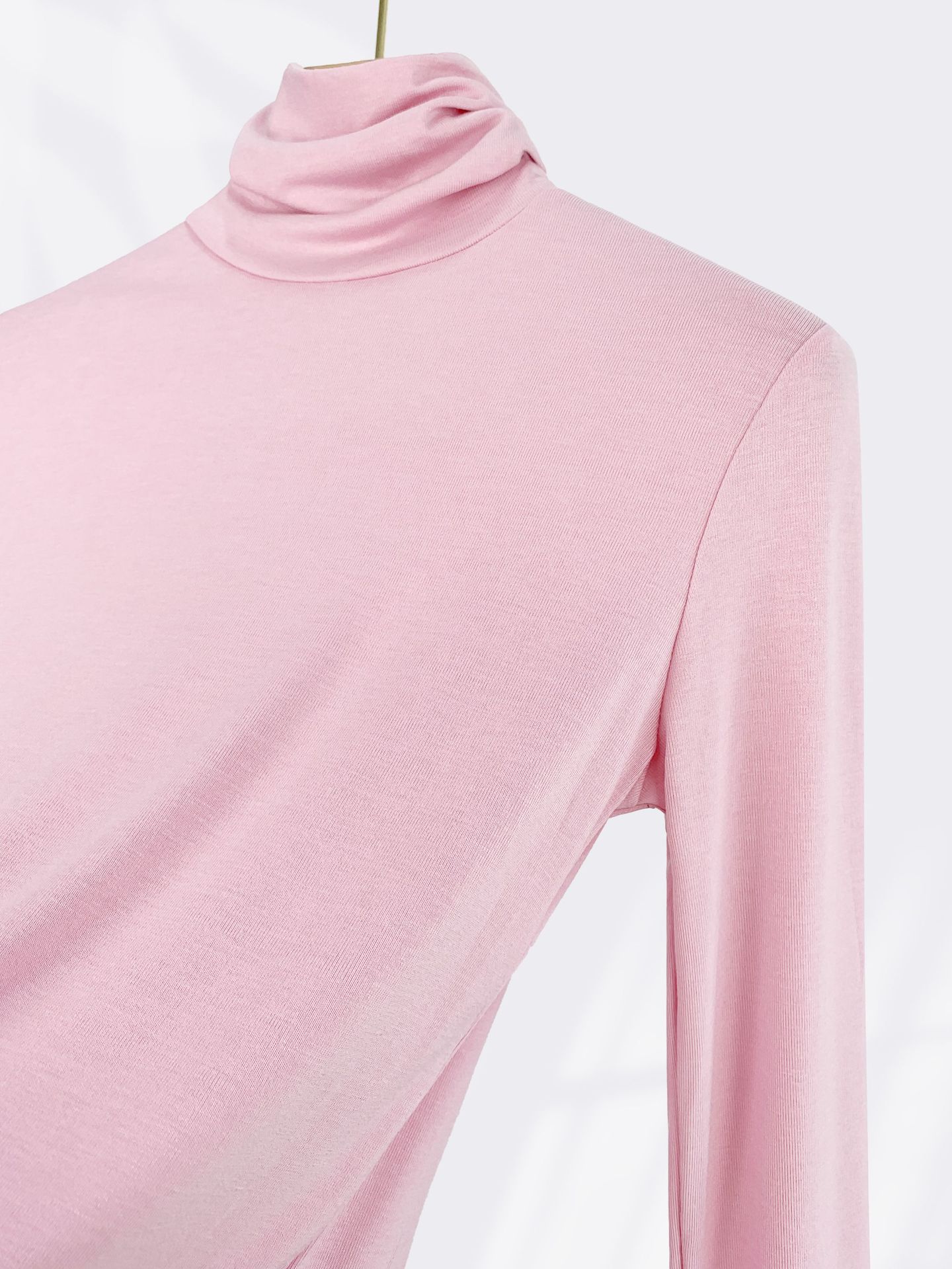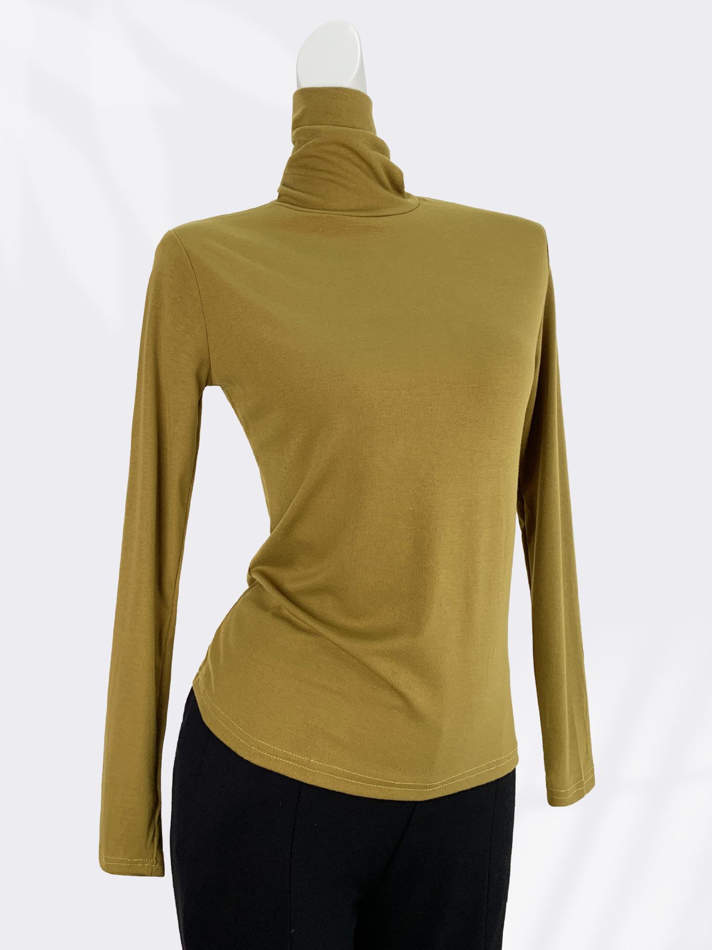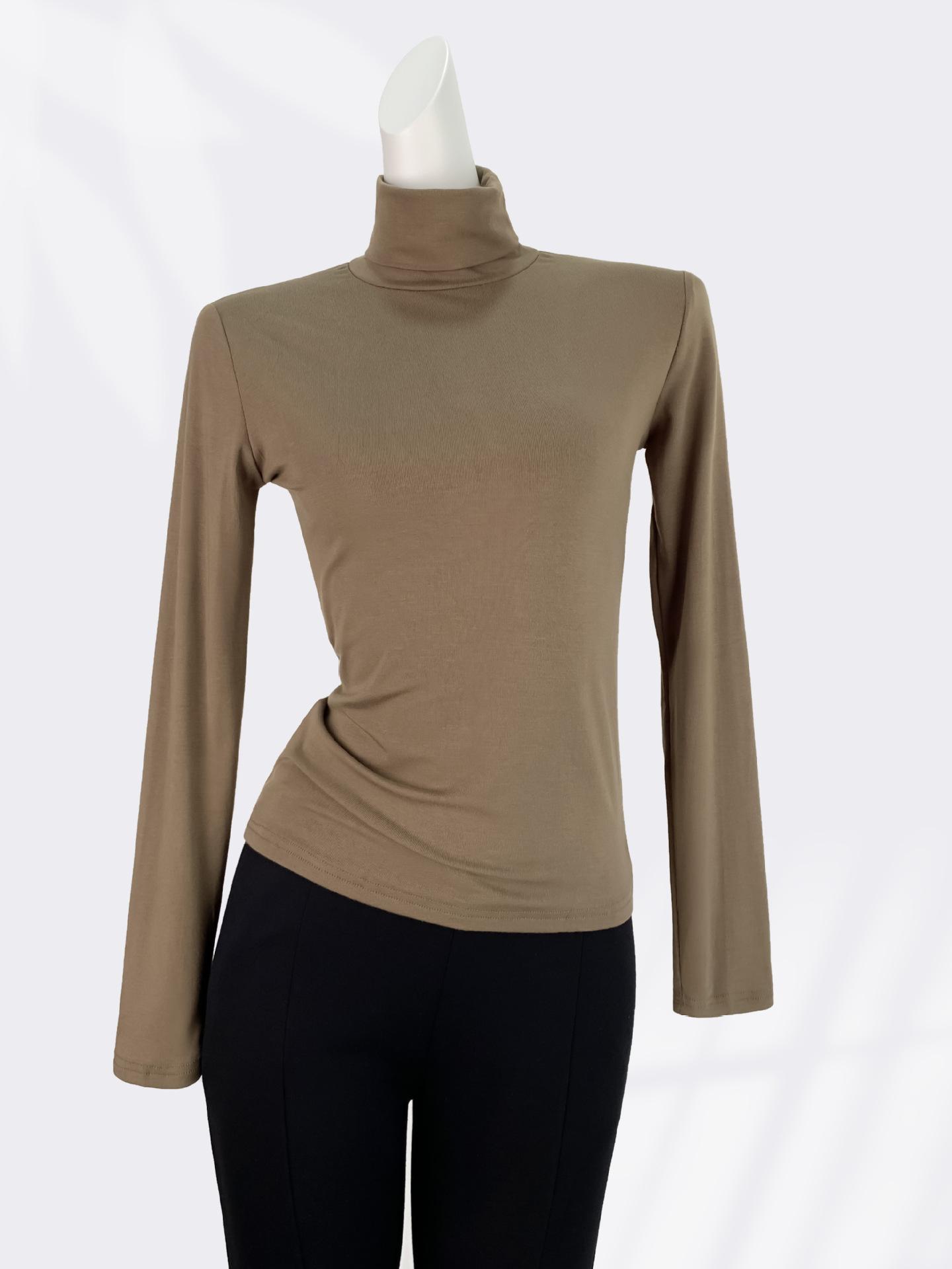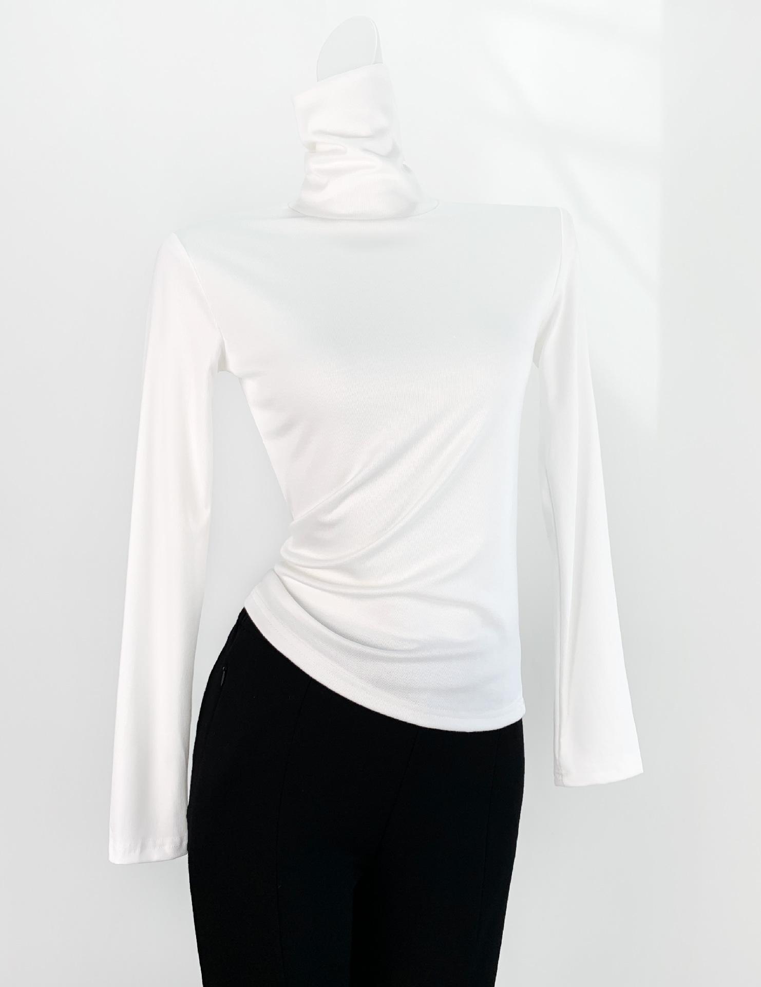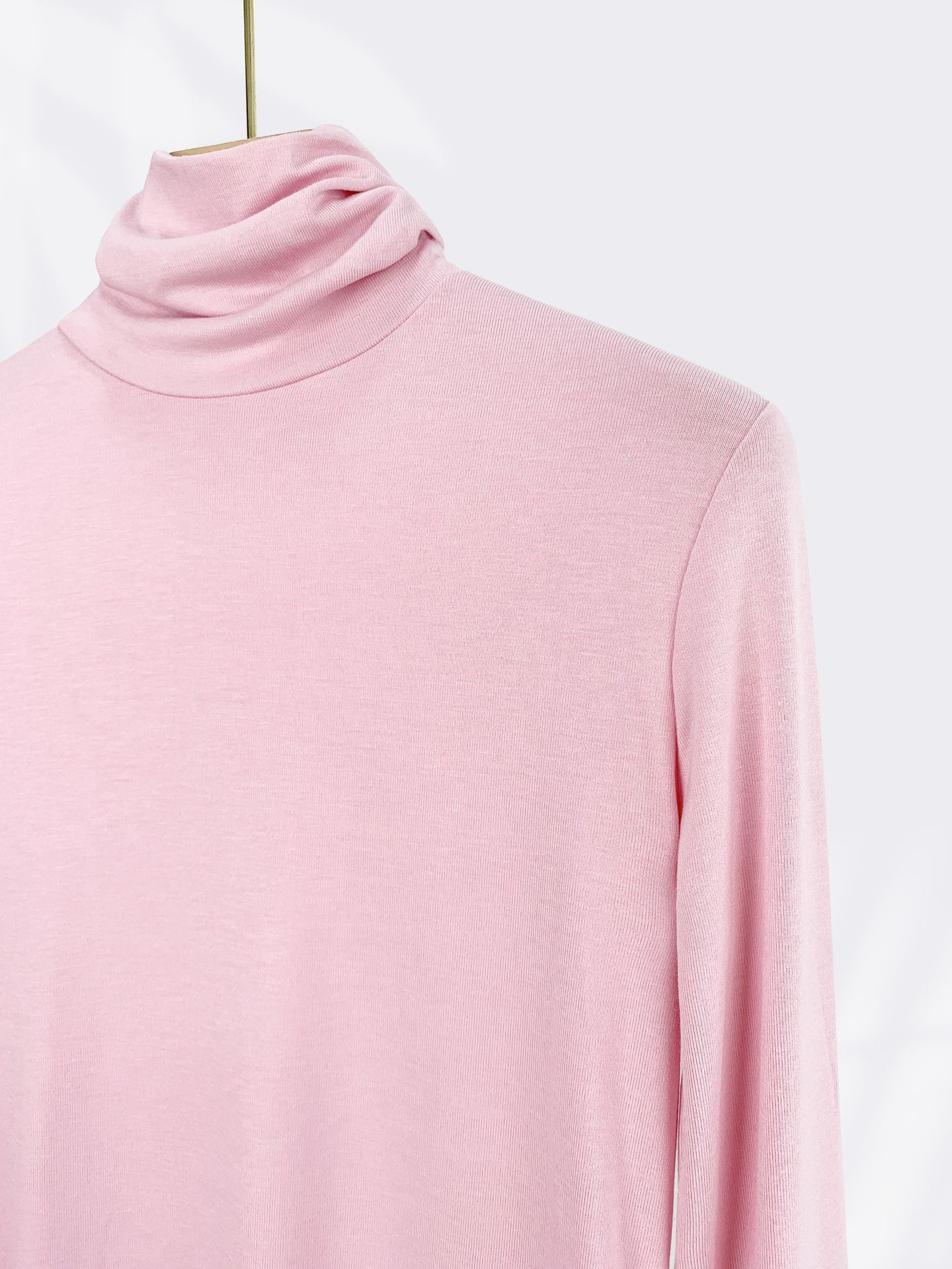 Compra Algodón Peinado Súper Suave Drapeado Cuello Pile Camiseta Base para Mujer para Primavera con Cuello Alto Delgado de Color Puro Camiseta de Manga Larga al por mayor en Joom.pro