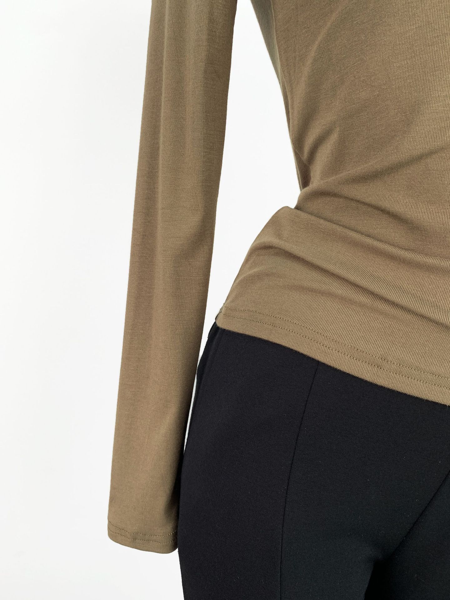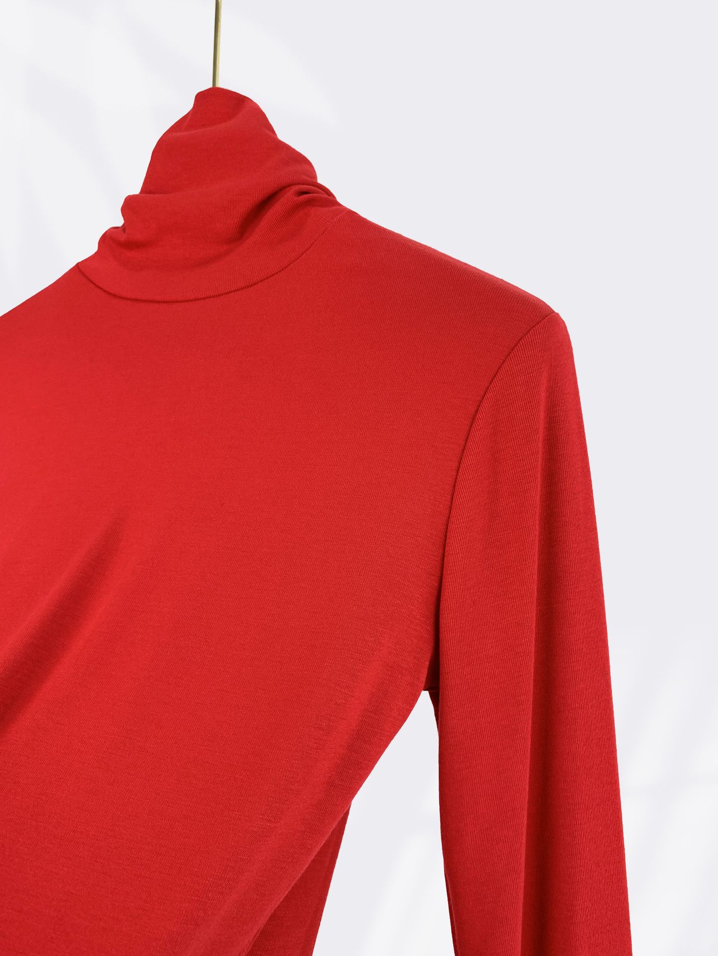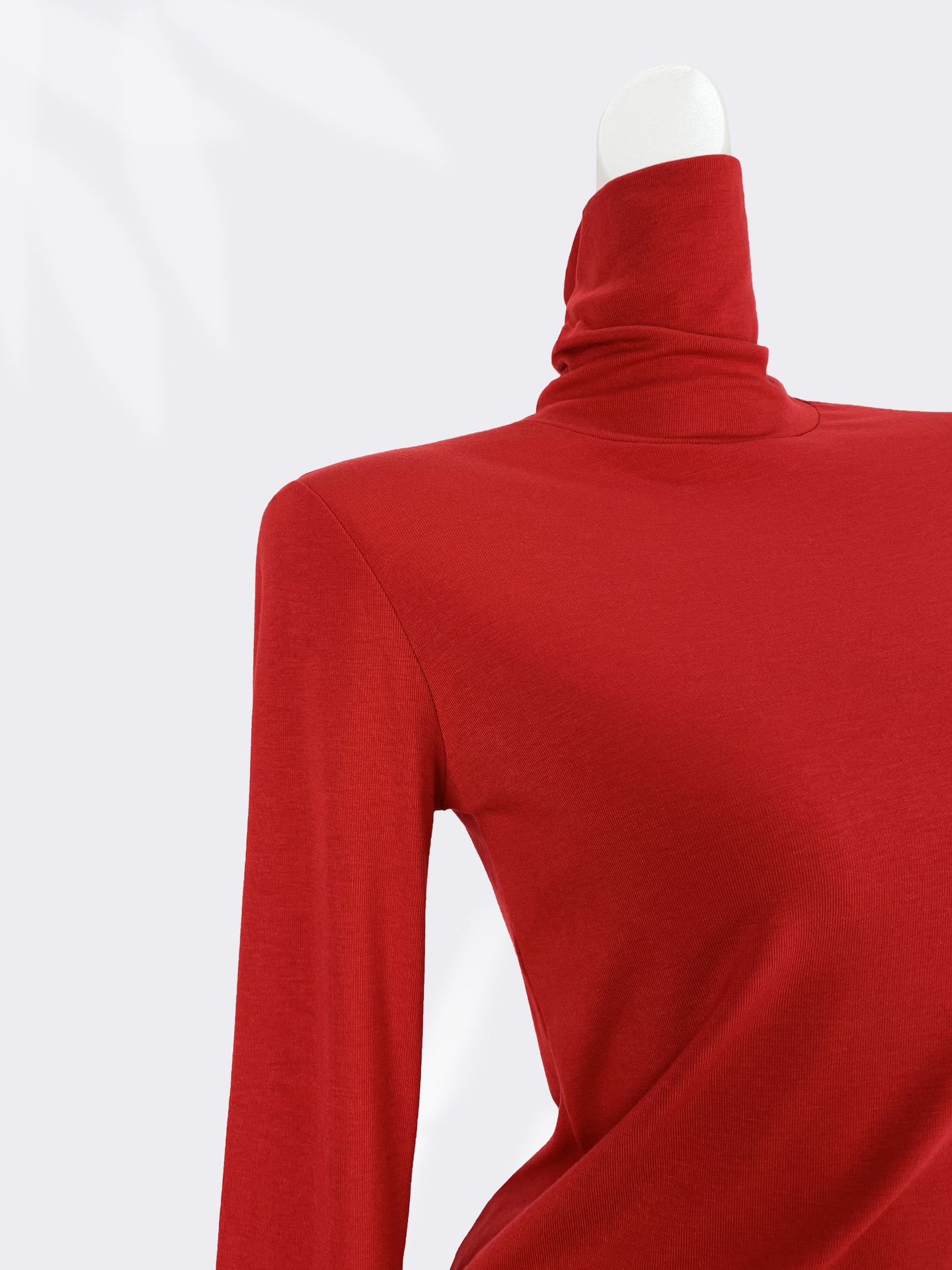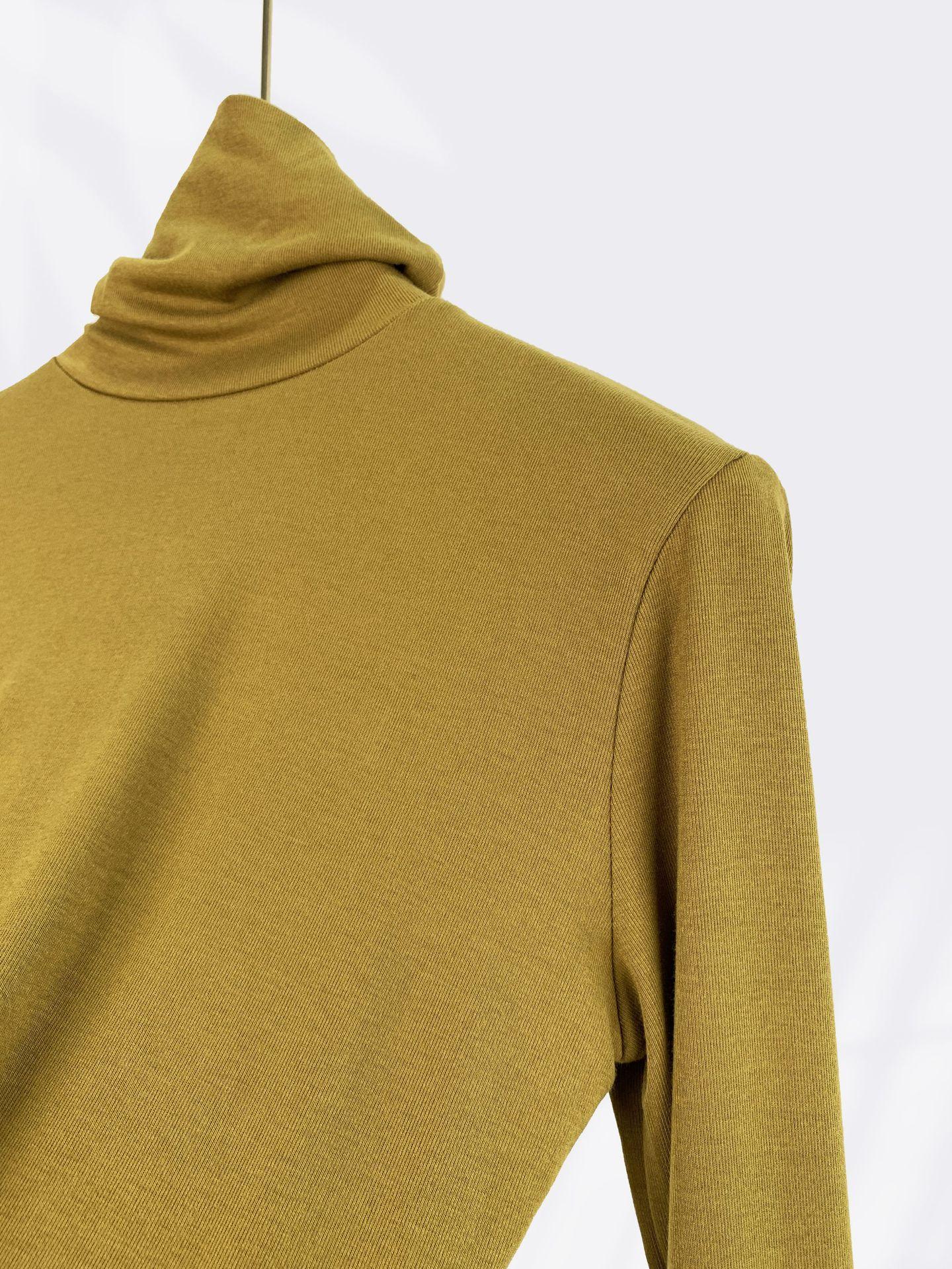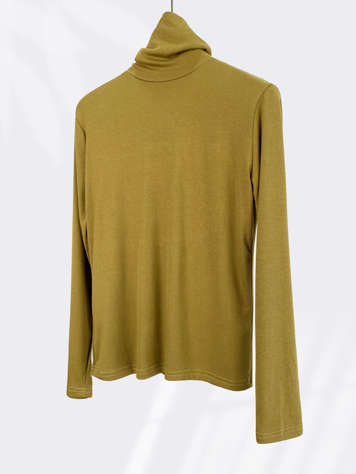 Compra Algodón Peinado Súper Suave Drapeado Cuello Pile Camiseta Base para Mujer para Primavera con Cuello Alto Delgado de Color Puro Camiseta de Manga Larga al por mayor en Joom.pro