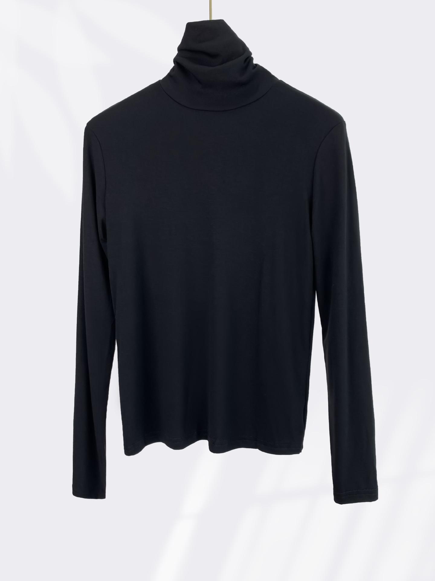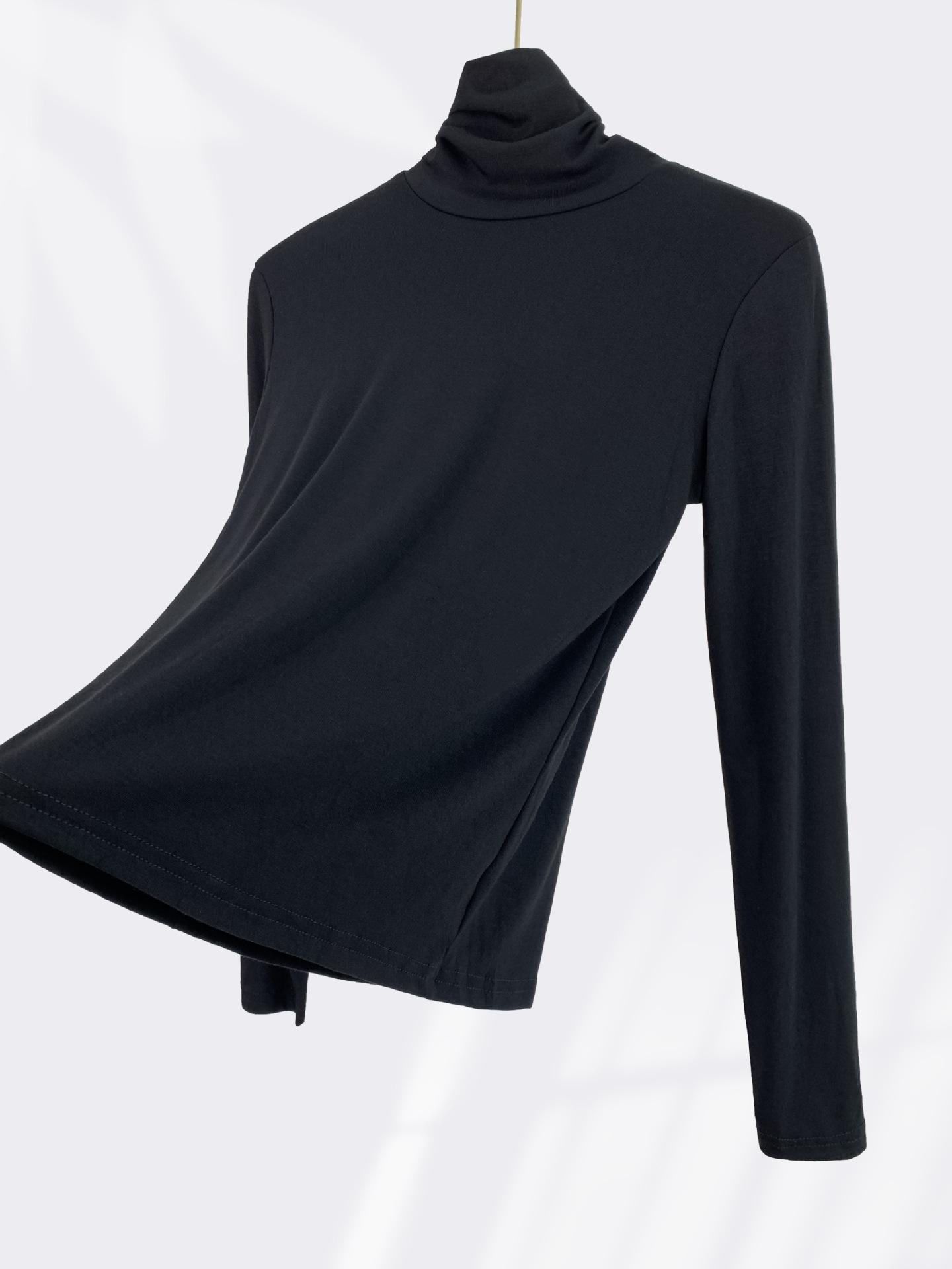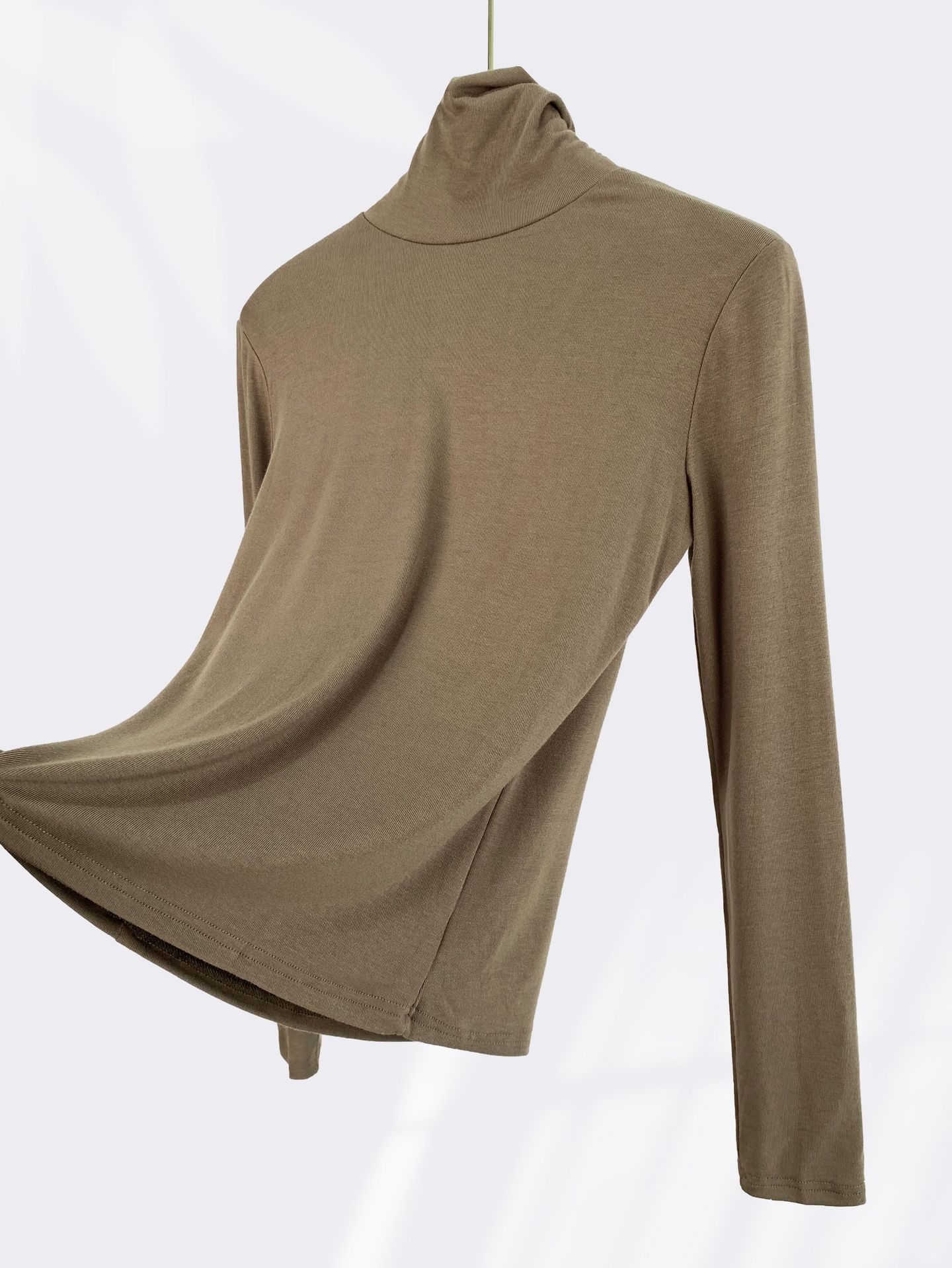 Algodón Peinado Súper Suave Drapeado Cuello Pile Camiseta Base para Mujer para Primavera con Cuello Alto Delgado de Color Puro Camiseta de Manga Larga