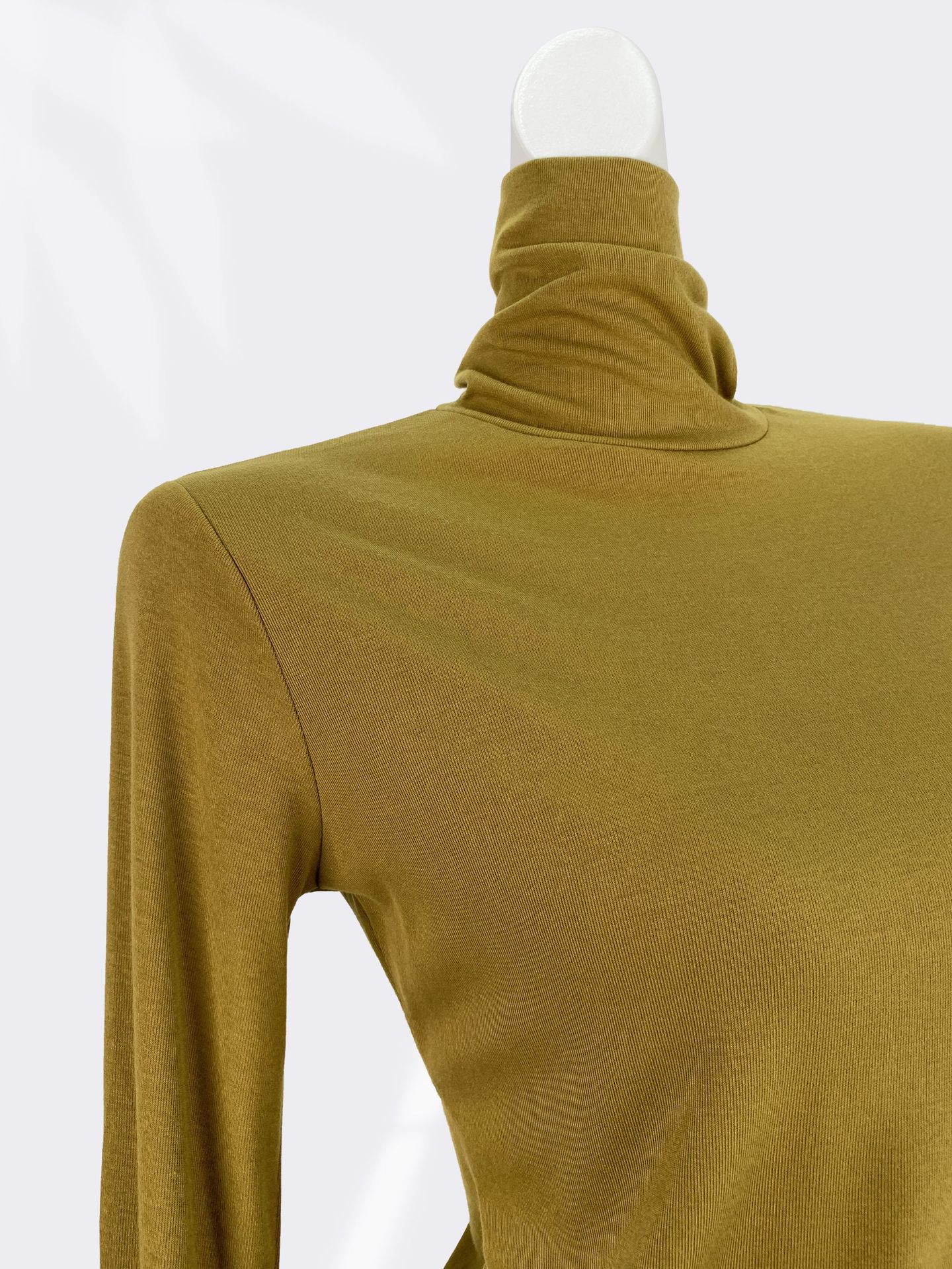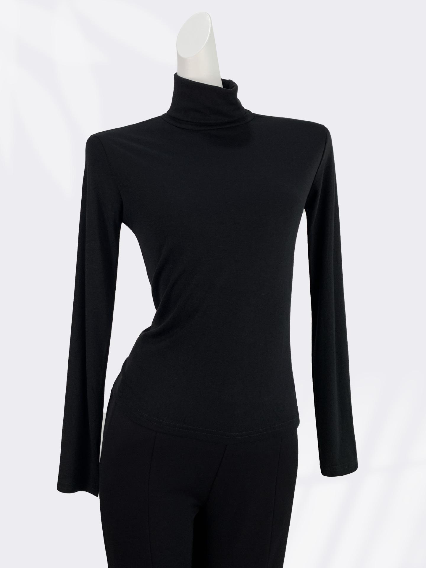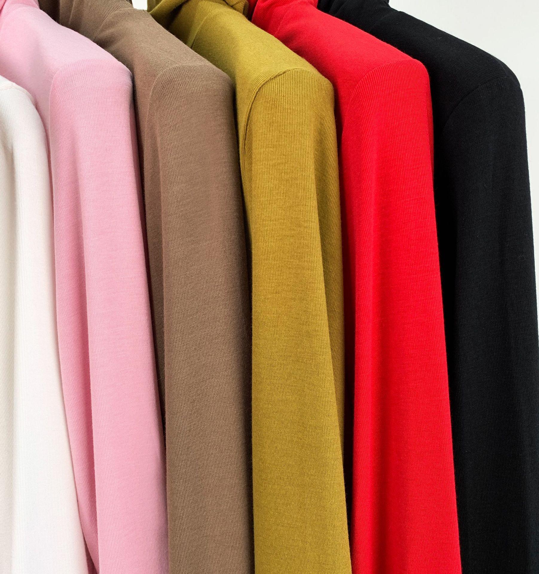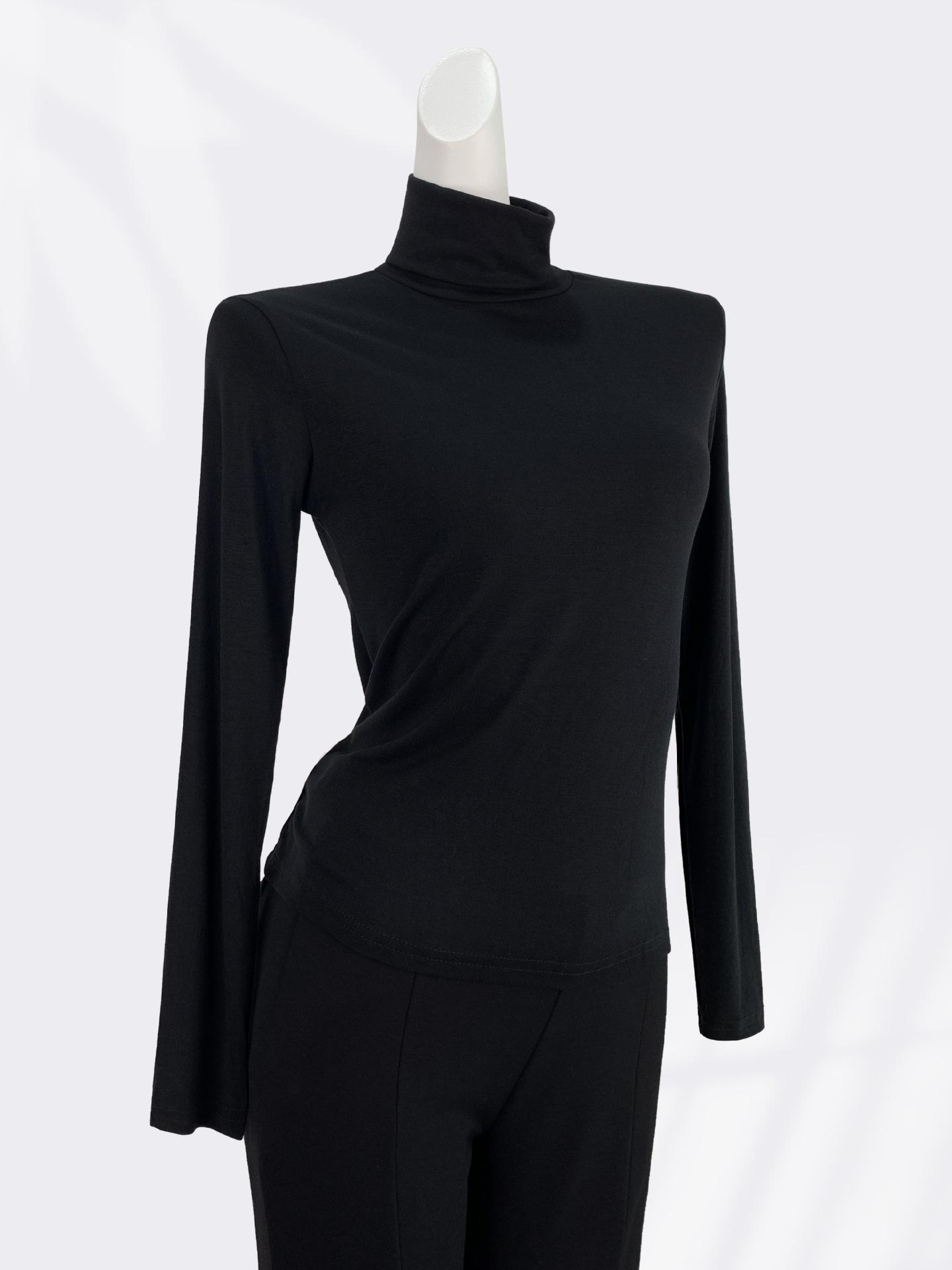 Algodón Peinado Súper Suave Drapeado Cuello Pile Camiseta Base para Mujer para Primavera con Cuello Alto Delgado de Color Puro Camiseta de Manga Larga