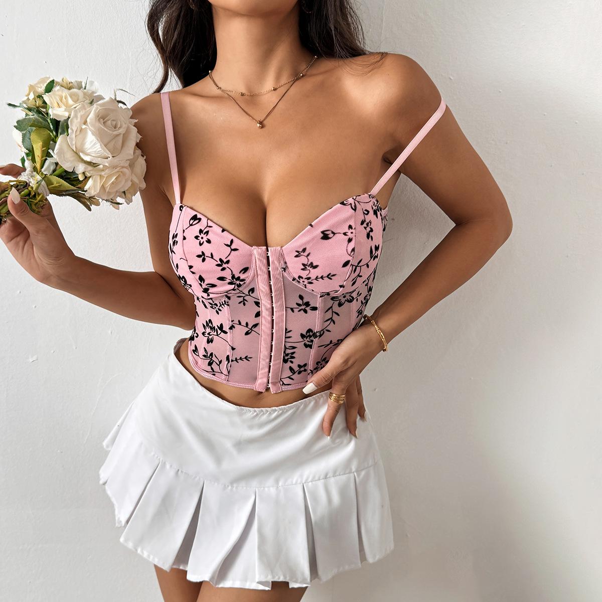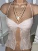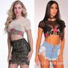Top corto de malla con tirantes y cintura de espiga para mujer, estilo transfronterizo europeo y americano, 11056