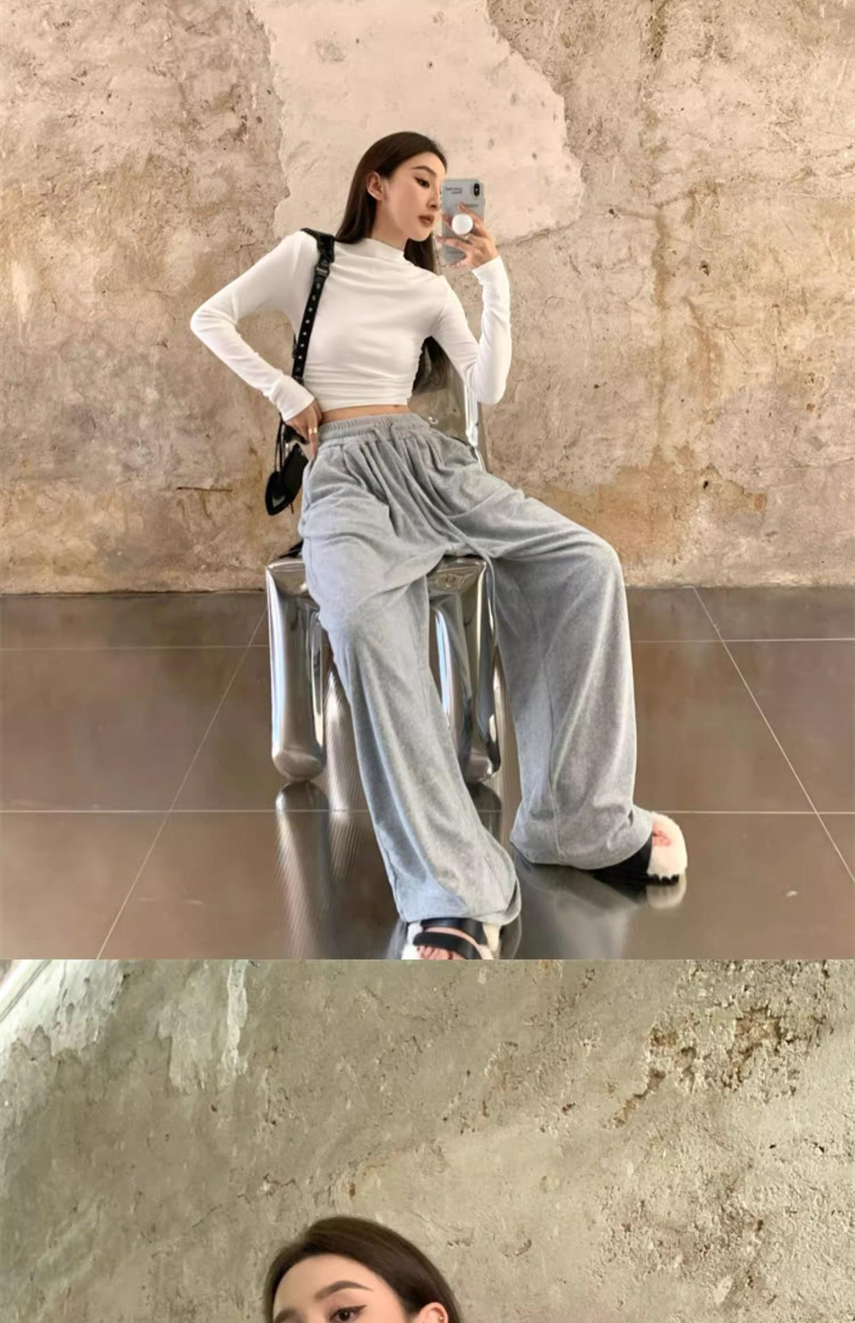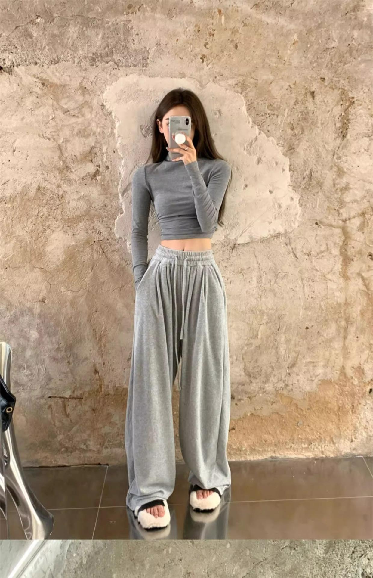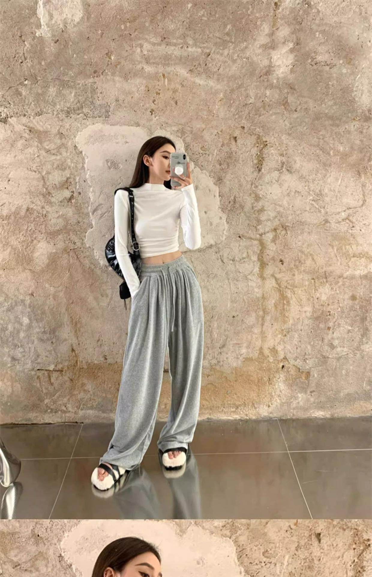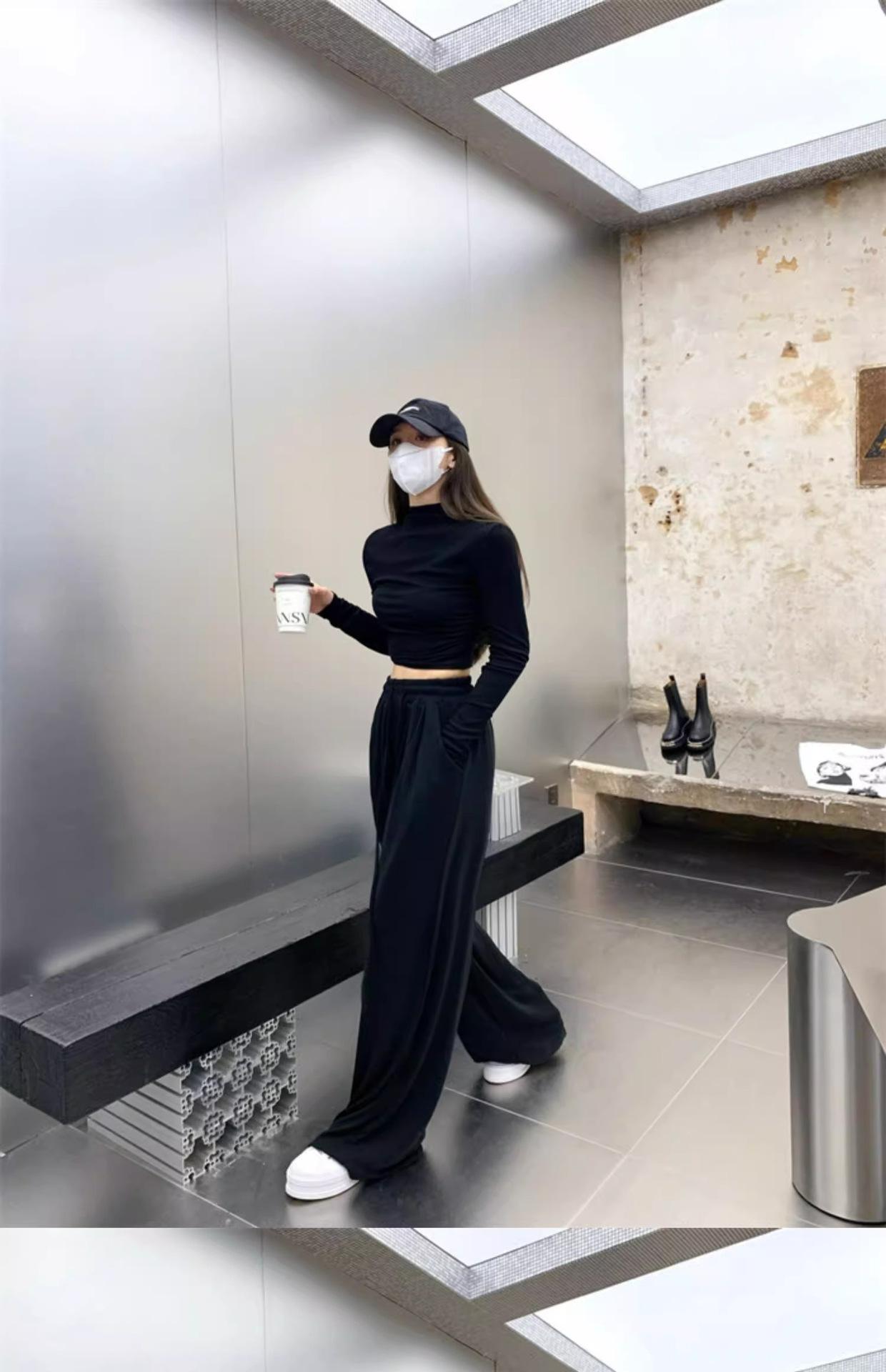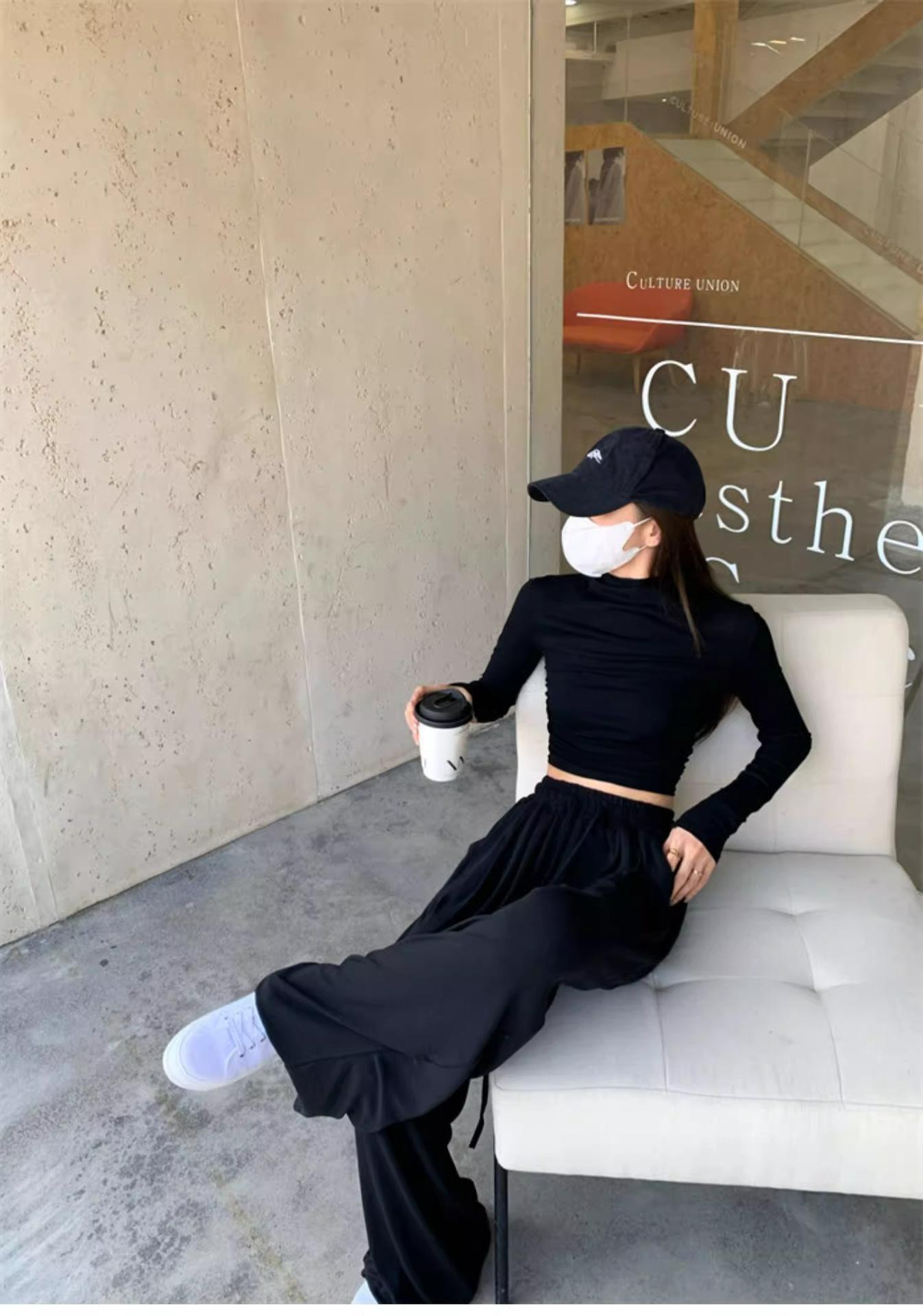 Camiseta de manga larga interior para mujer, color blanco puro, con cuello alto y parte superior corta ajustada de estilo occidental de moda de otoño e invierno
