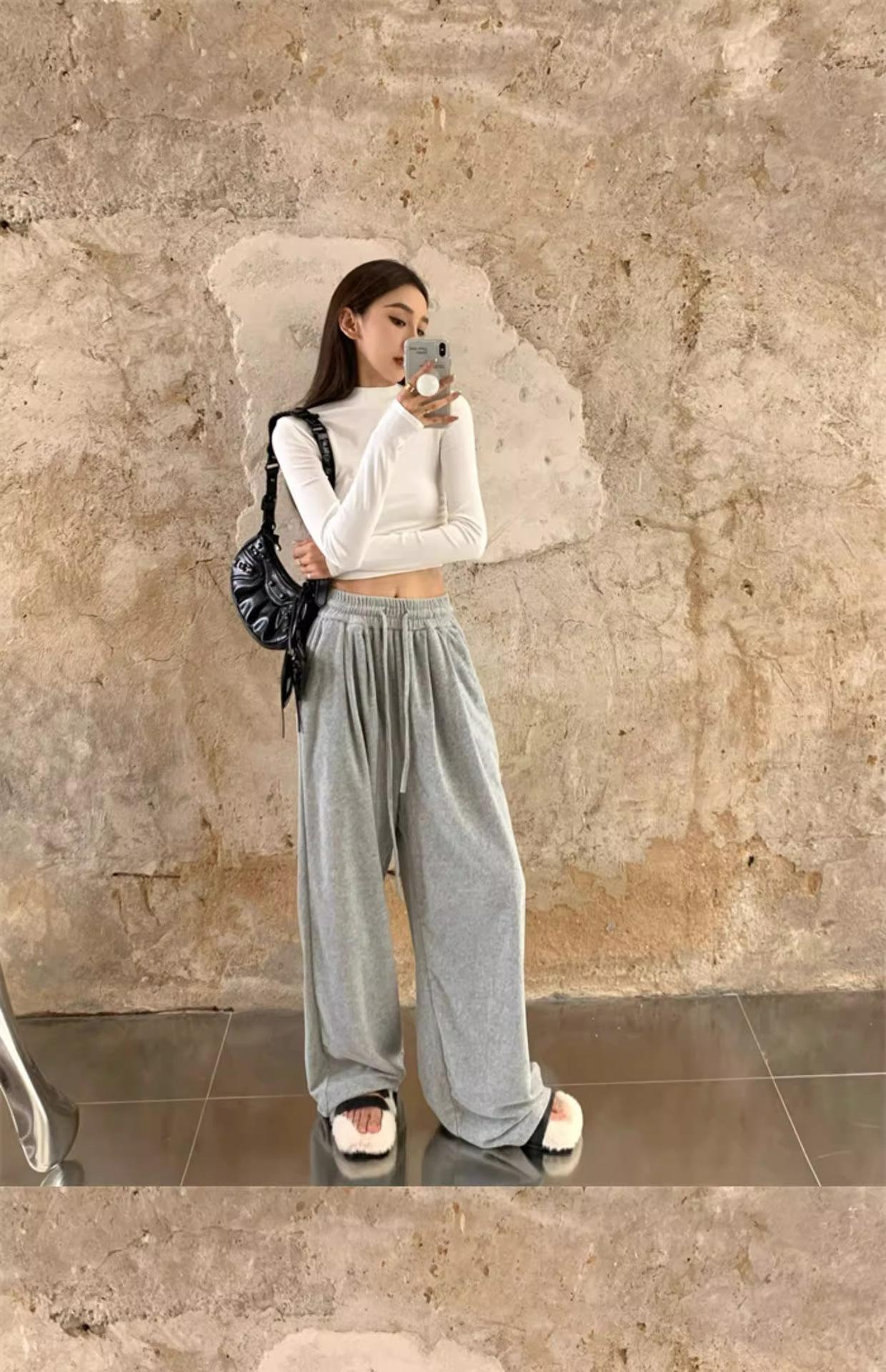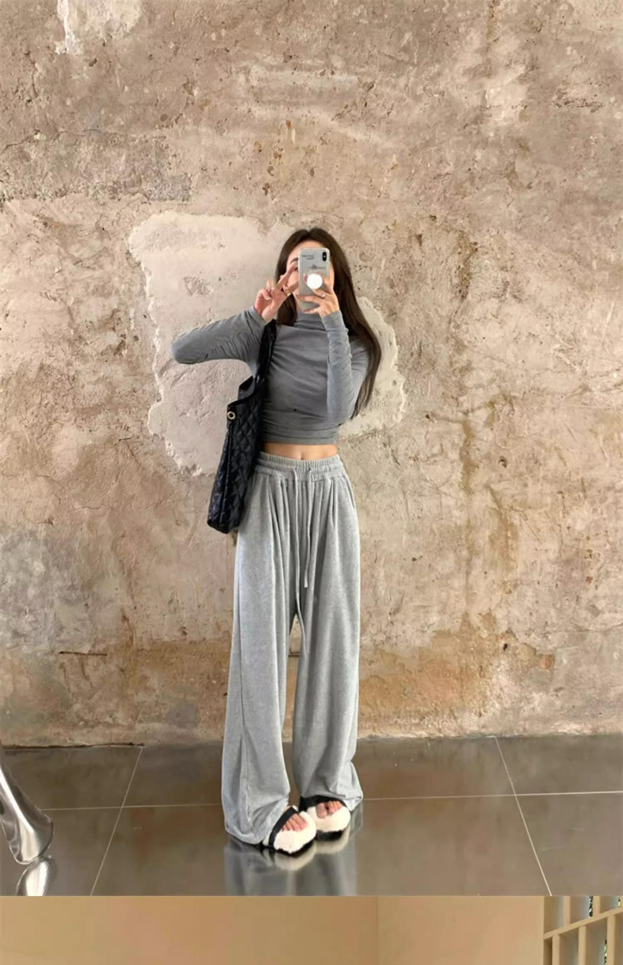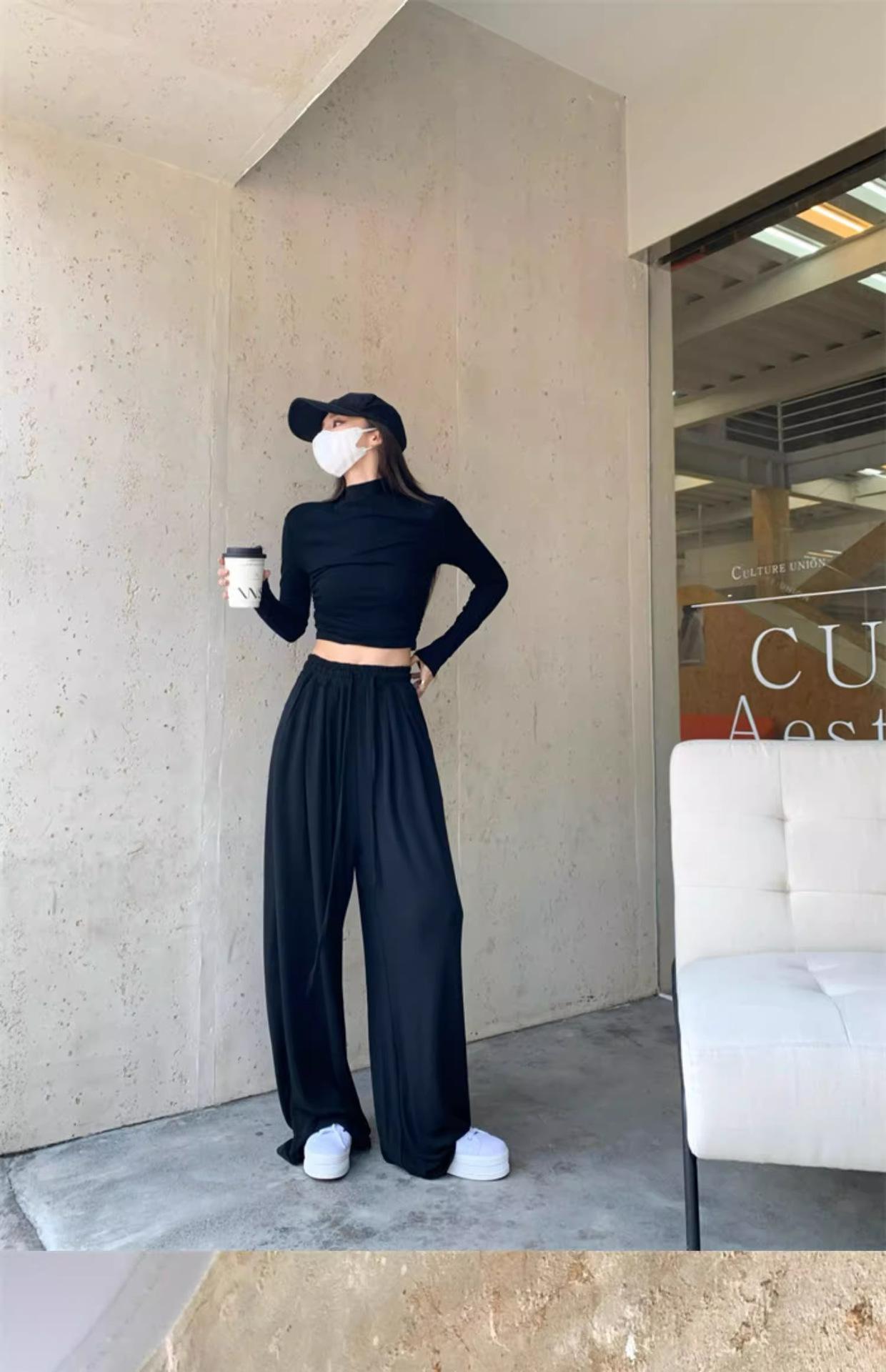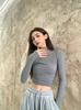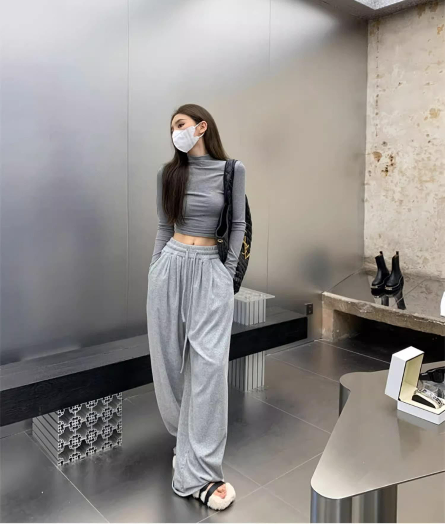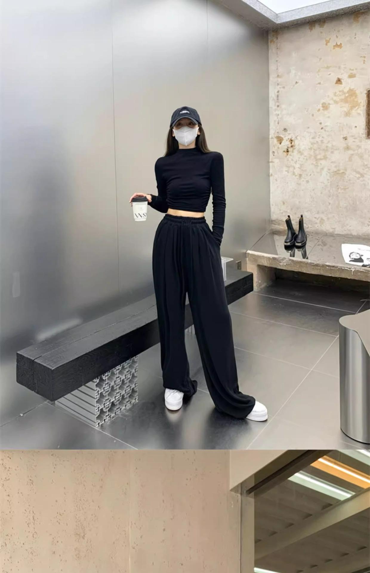 Camiseta de manga larga interior para mujer, color blanco puro, con cuello alto y parte superior corta ajustada de estilo occidental de moda de otoño e invierno