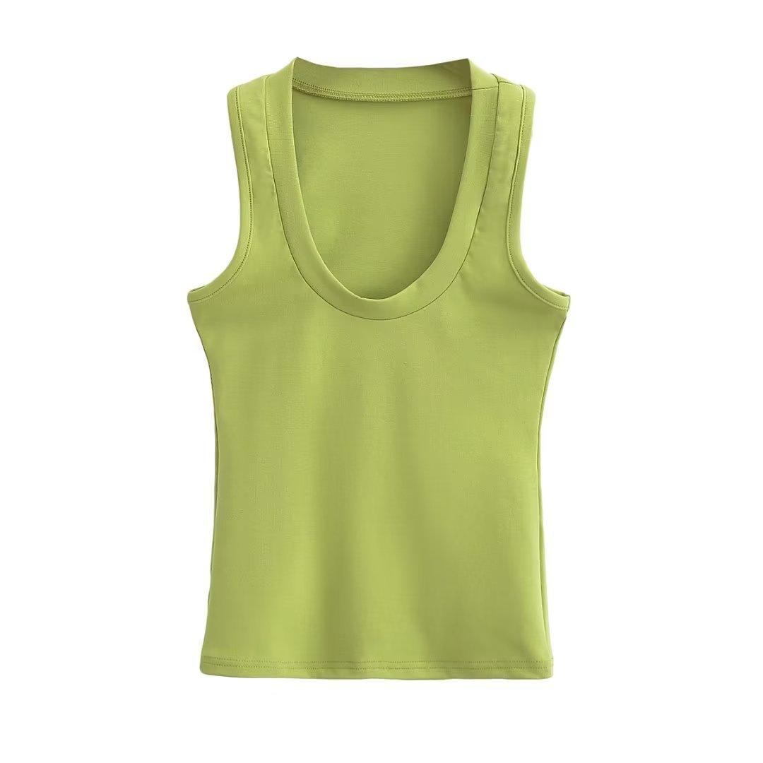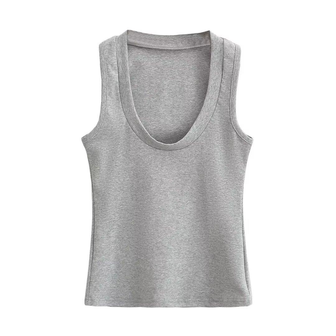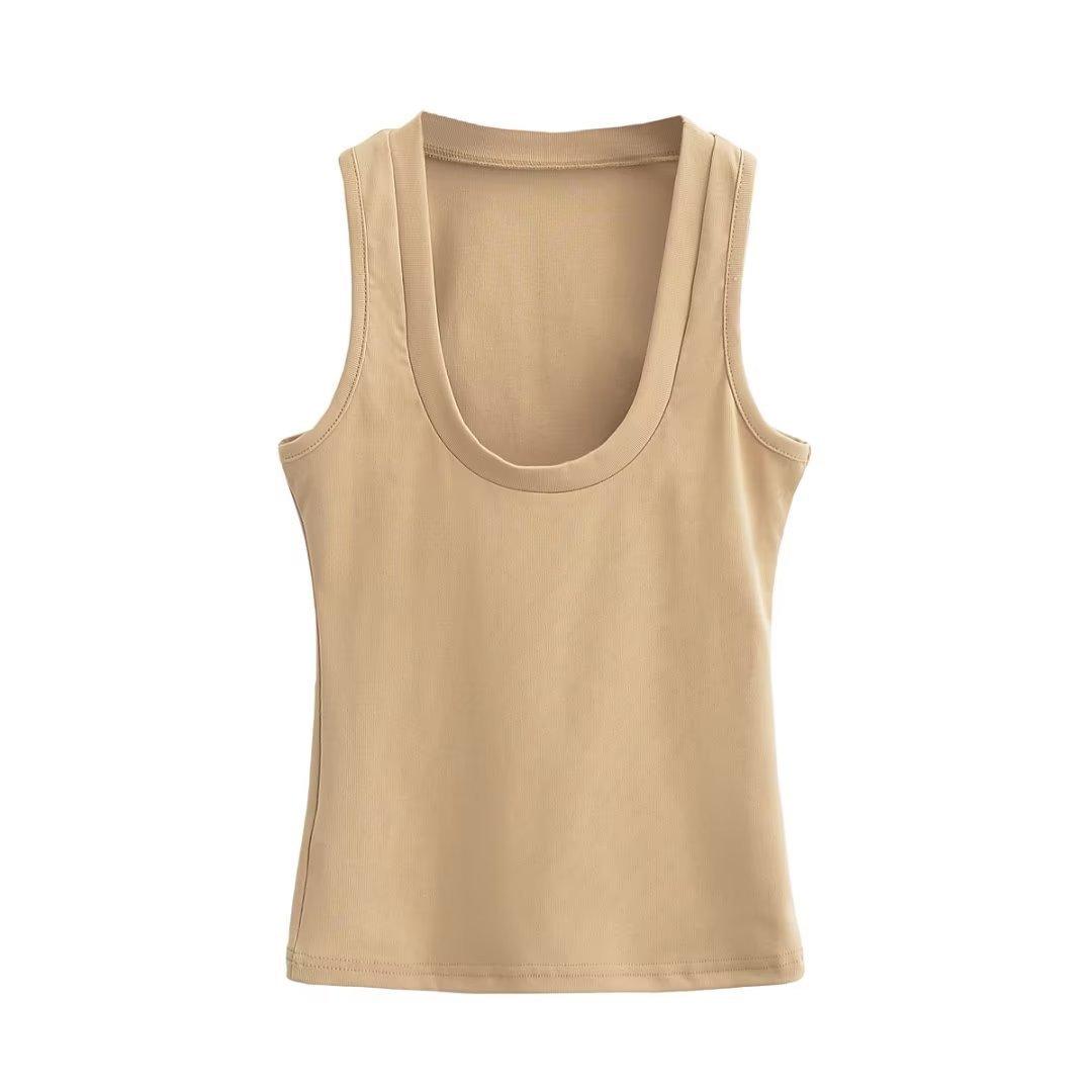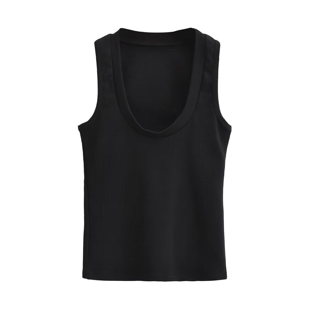 Camiseta sin mangas corta con cuello en U grande y sexy de Spice Girl europea y americana para mujer, novedad de verano 2023, color sólido, ajustada, hasta el ombligo
