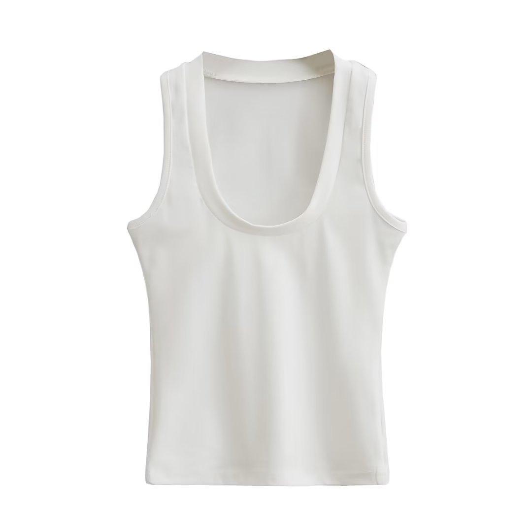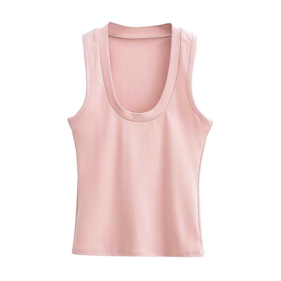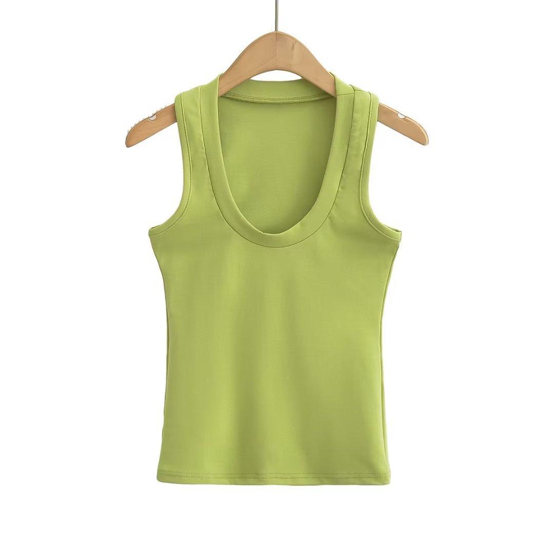 Camiseta sin mangas corta con cuello en U grande y sexy de Spice Girl europea y americana para mujer, novedad de verano 2023, color sólido, ajustada, hasta el ombligo