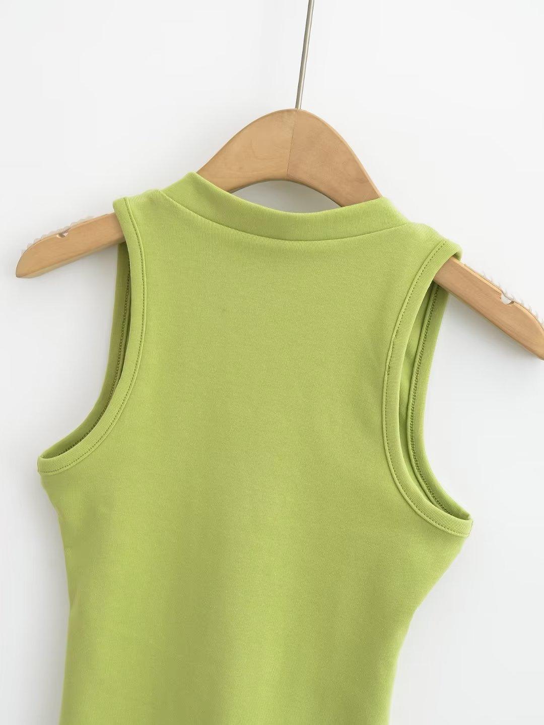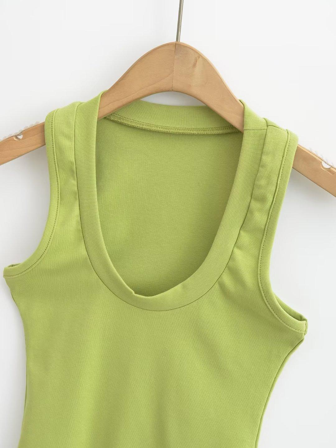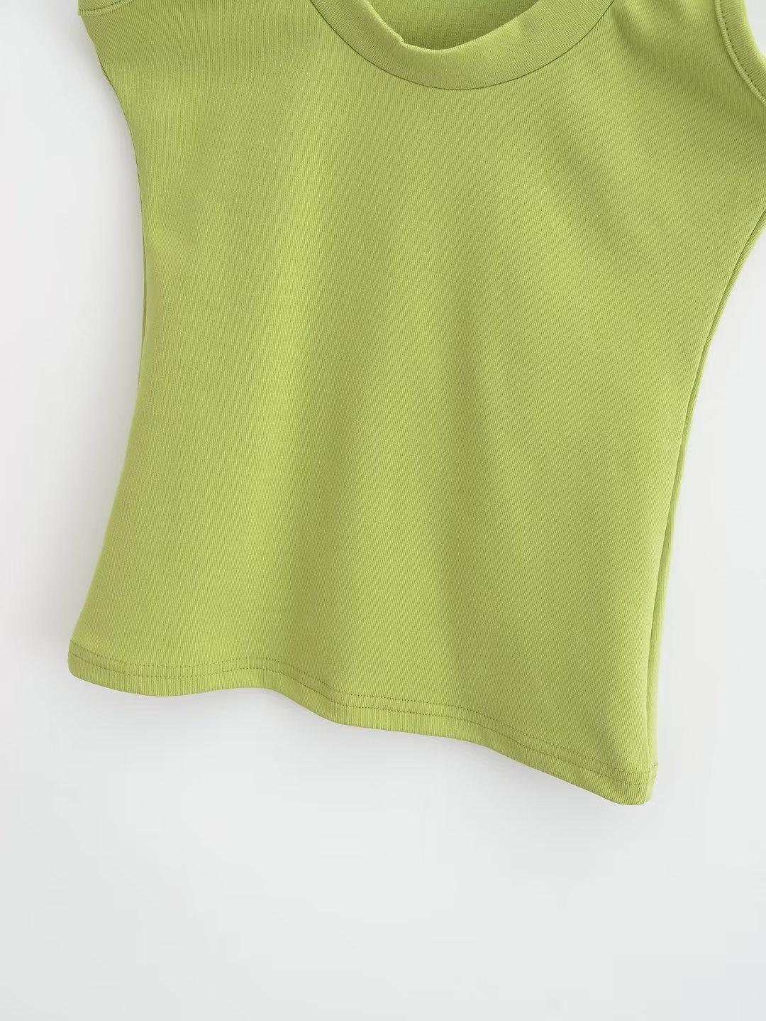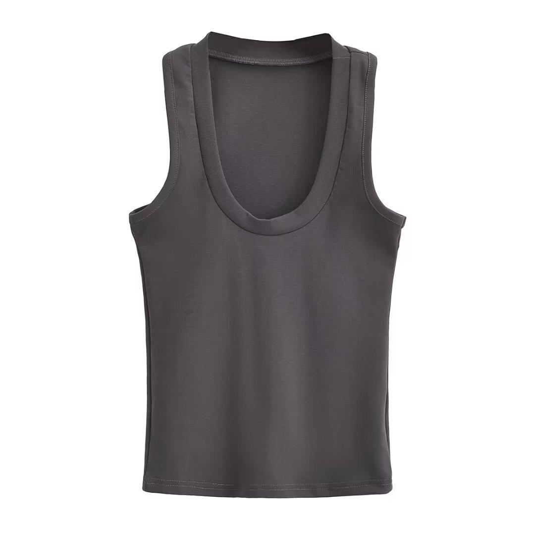 Camiseta sin mangas corta con cuello en U grande y sexy de Spice Girl europea y americana para mujer, novedad de verano 2023, color sólido, ajustada, hasta el ombligo