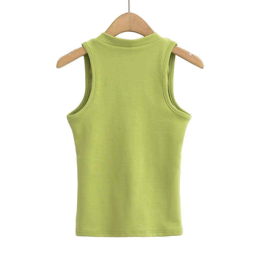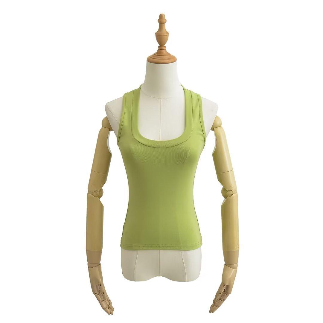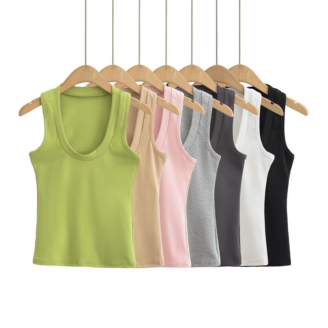 Compra Camiseta sin mangas corta con cuello en U grande y sexy de Spice Girl europea y americana para mujer, novedad de verano 2023, color sólido, ajustada, hasta el ombligo al por mayor en Joom.pro