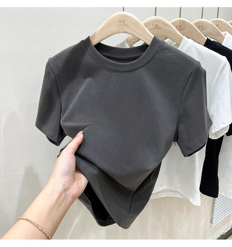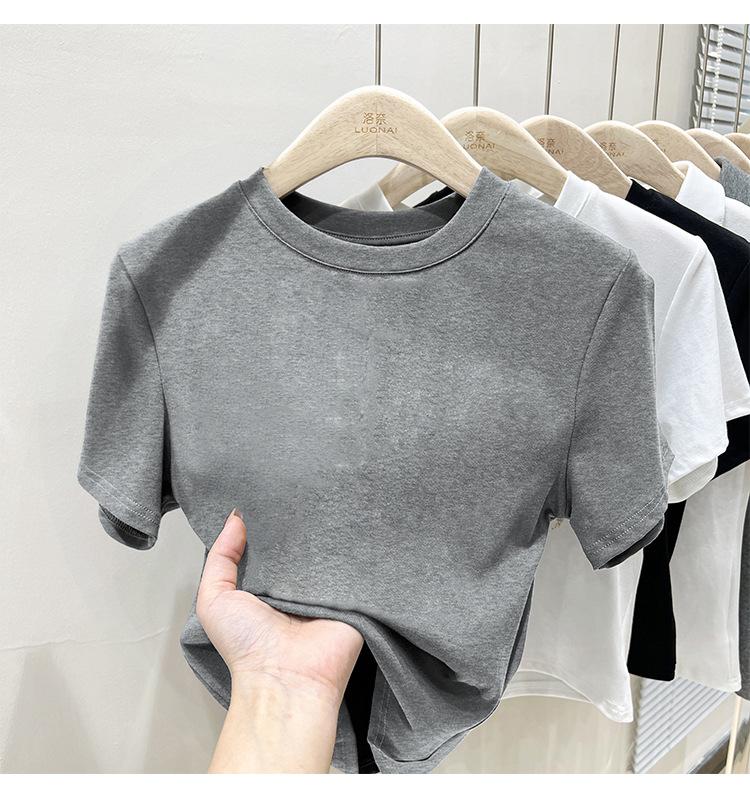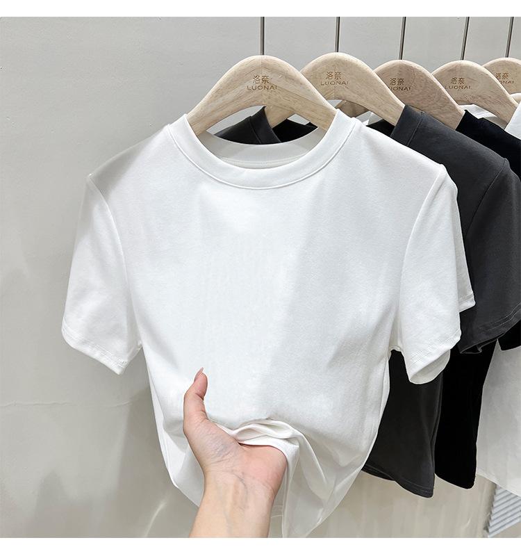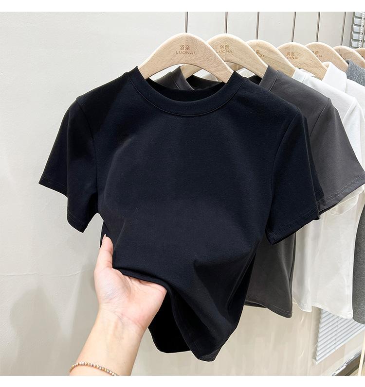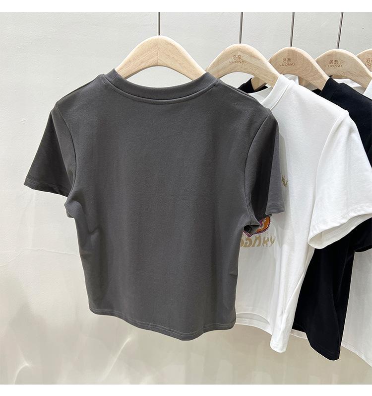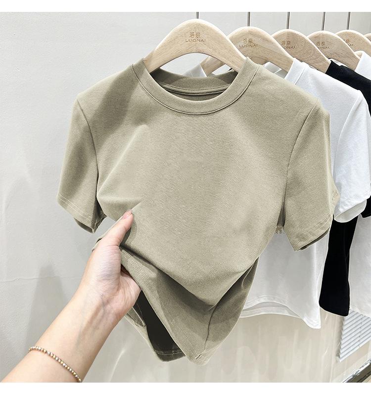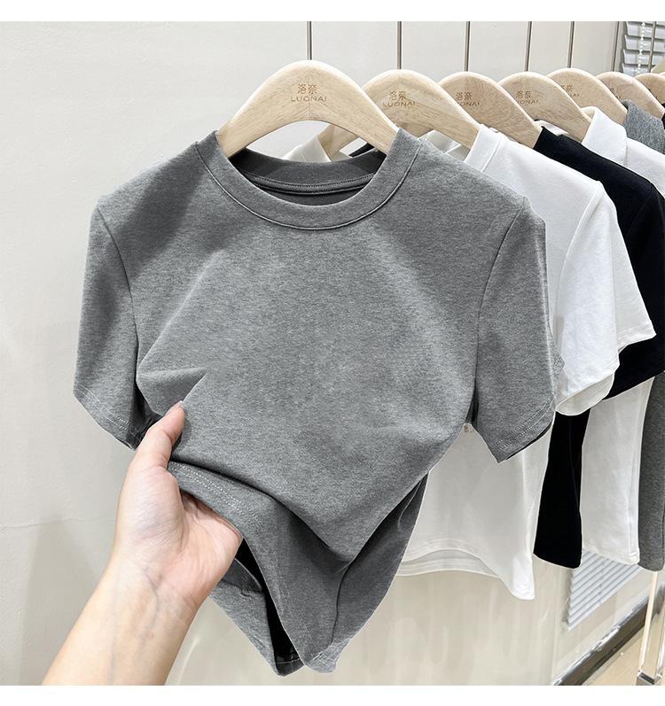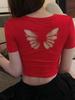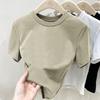Camiseta vintage de manga corta con hombros descubiertos para mujer, novedad de verano 2023, elegante top corto ajustado de media manga