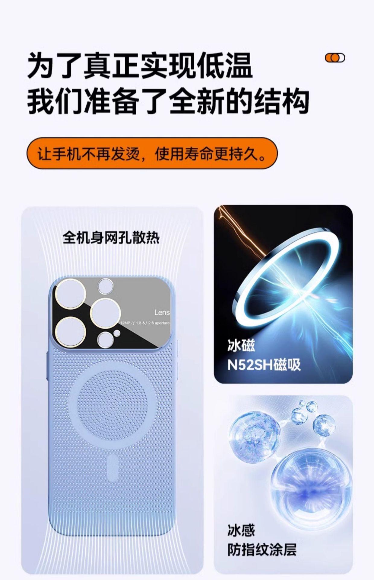 Para iPhone14 funda de teléfono refrigerante de ventana grande carga inalámbrica magnética Magsafe funda protectora Apple 13 2