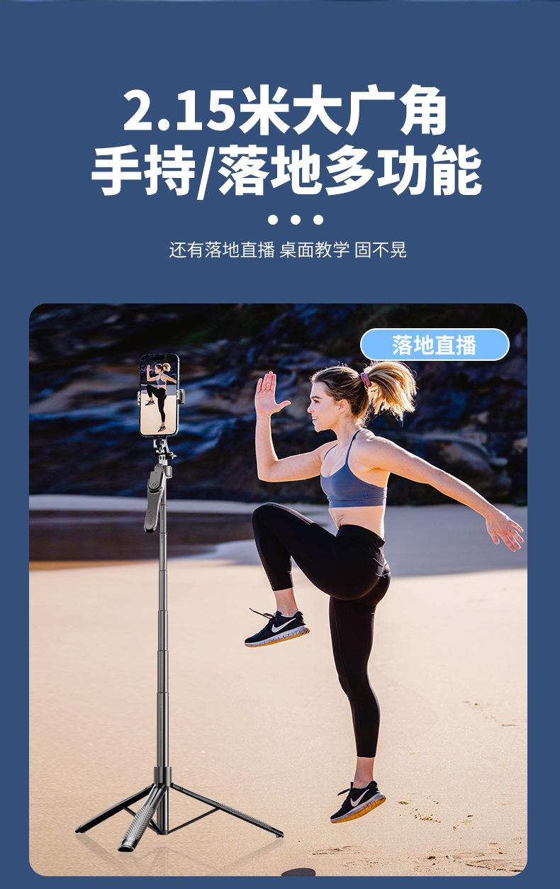 Nuevo palo de selfie con Bluetooth para teléfono móvil, estabilizador de mano universal de 2,1 m, soporte de suelo para transmisión en vivo, trípode para selfie