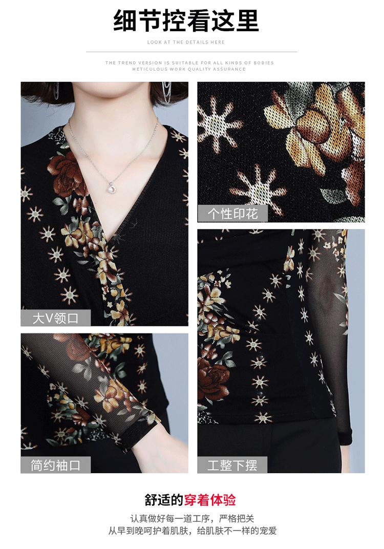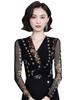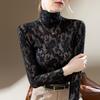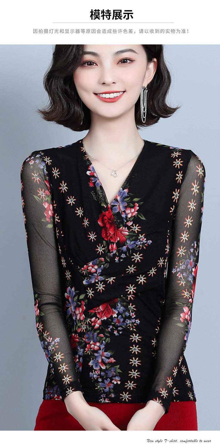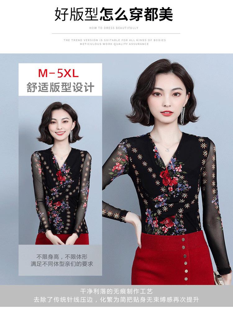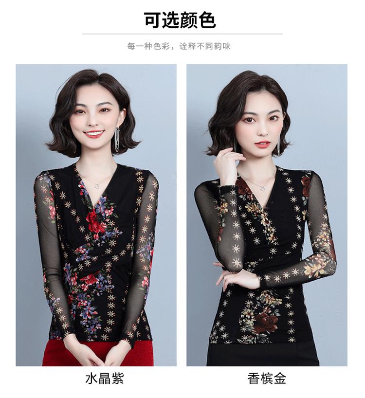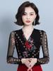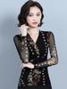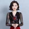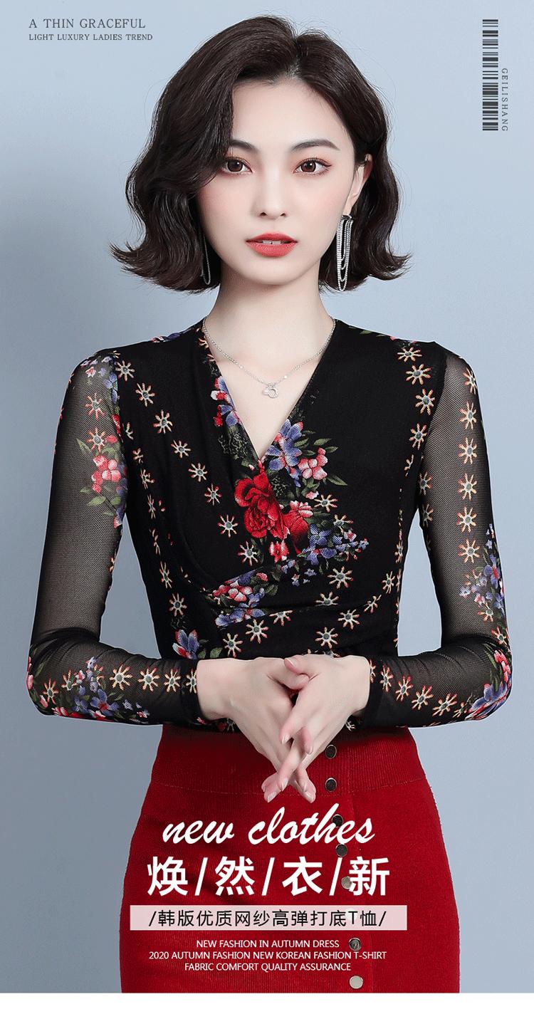 Camisa de encaje con cuello en V para mujer, nueva blusa de gasa de malla de manga larga de otoño 2021, camisa de estilo occidental que combina con todo