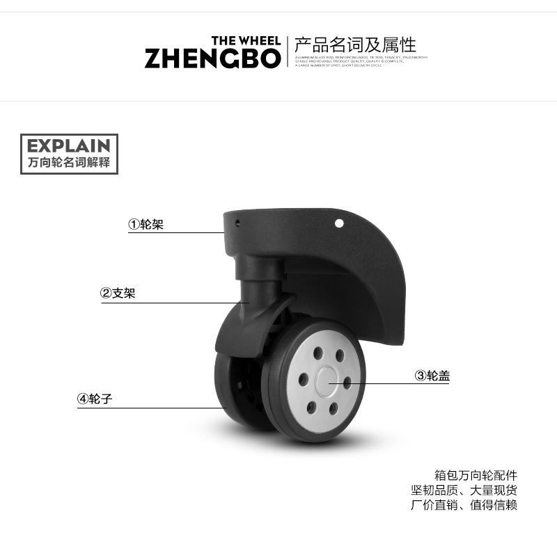 Guangzhou Zhengbo Luggage Products Co., Ltd. se especializa en la producción de una serie de accesorios para equipaje, como cerraduras de combinación, candados, cerraduras fijas, cerraduras aduaneras TSA, carritos, ruedas para maletas, ruedas para maletas y asas. Nuestros productos son populares en el mercado y gozan de gran prestigio. La empresa ha establecido relaciones de cooperación duraderas y estables con importantes fabricantes y agentes de equipaje. Ofrece una gama completa de productos a precios razonables. Con una sólida trayectoria comercial, valoramos la credibilidad, cumplimos los contratos y garantizamos la calidad de nuestros productos. Nos hemos ganado la confianza de nuestros clientes gracias a nuestra amplia gama de productos y al principio de bajos beneficios y rápida rotación.