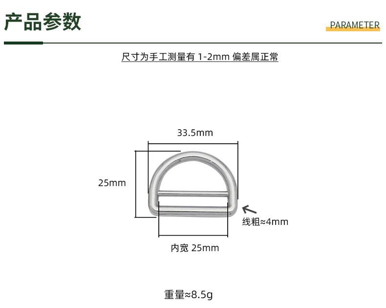 Hebilla japonesa en forma de D para equipaje de 1 pulgada, accesorio de metal, correa de hombro, cadena de conexión, ajuste de hebilla, ancho interior de la hebilla: 25 mm