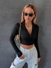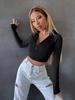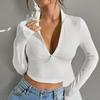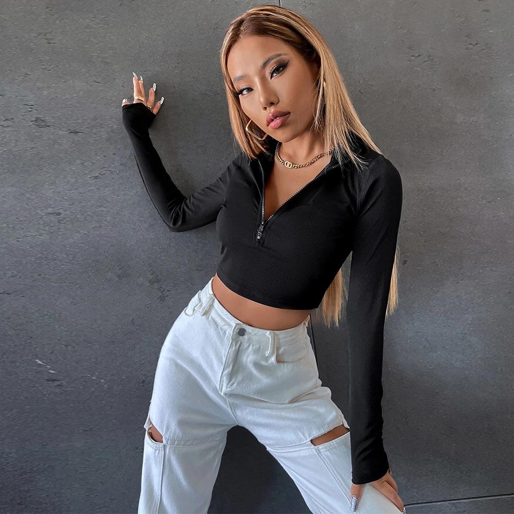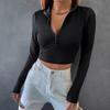 Camiseta de manga larga de punto corta, ajustada y con cuello vertical, estilo Y2K, para mujer europea y americana transfronteriza, otoño e invierno de 2024