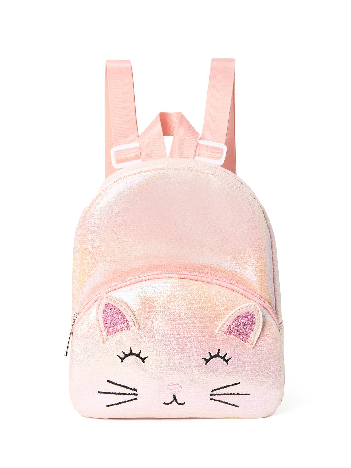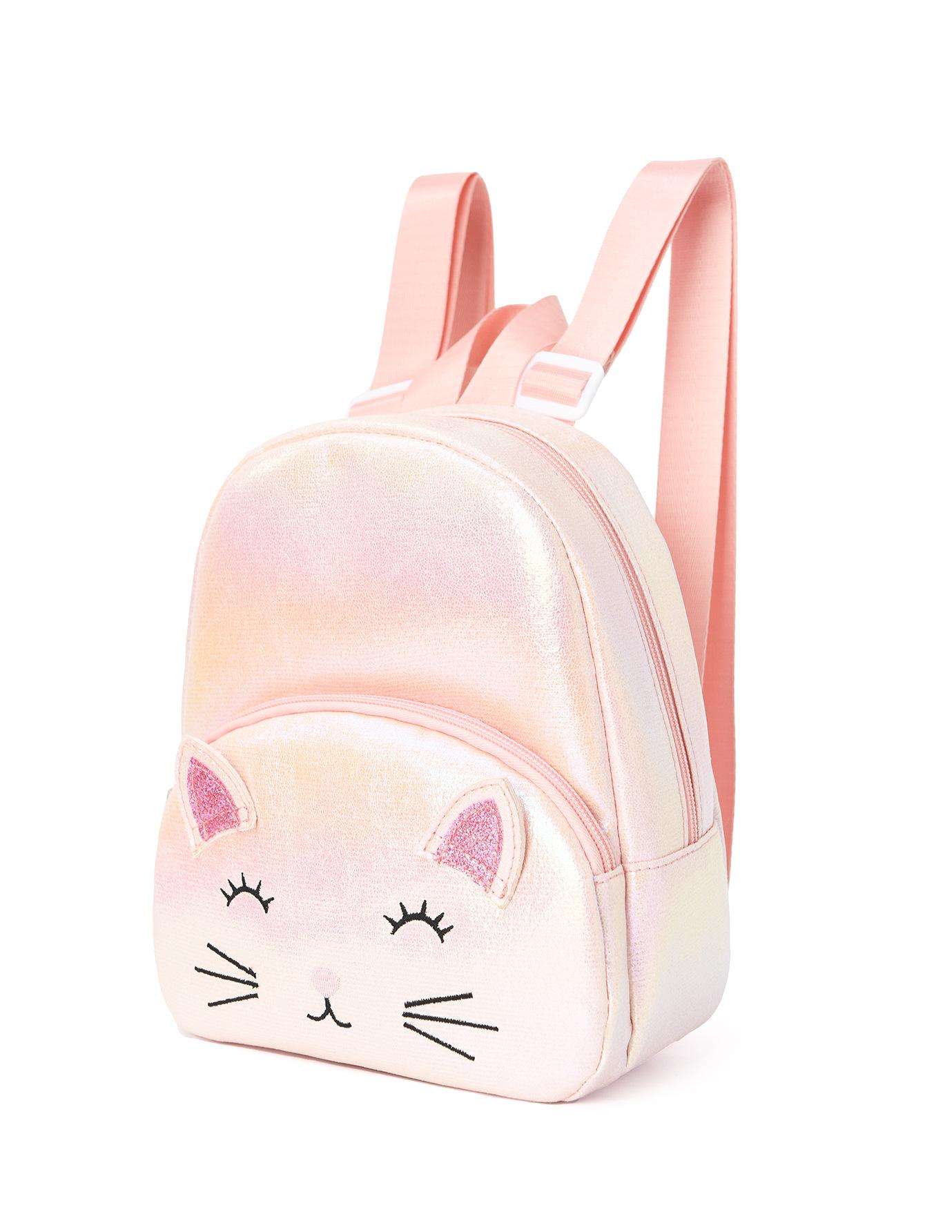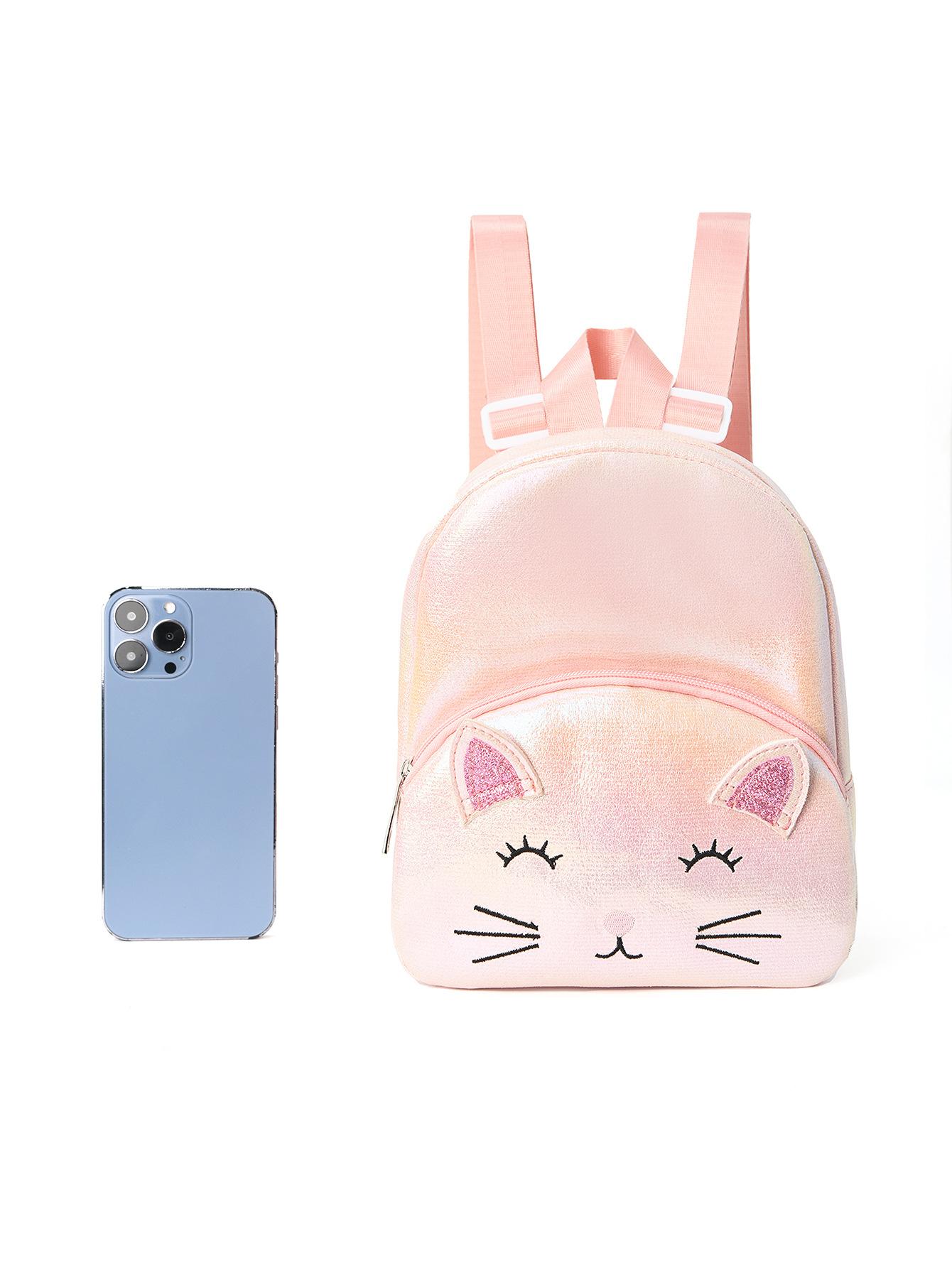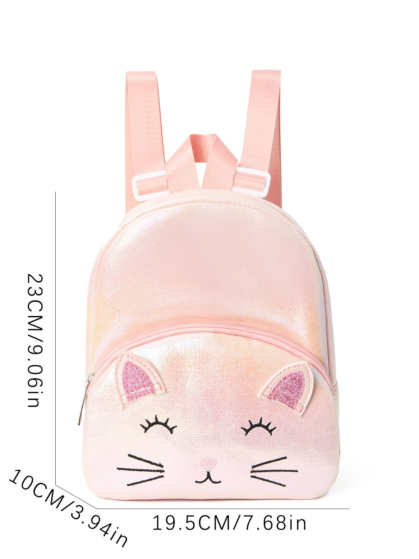 Mochila Clásica para Niña con Lindo Gato Bordado y Doble Bolsillo para Niña Pequeña, Jardín de Niños, Pequeña
